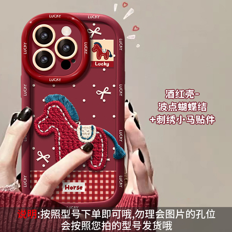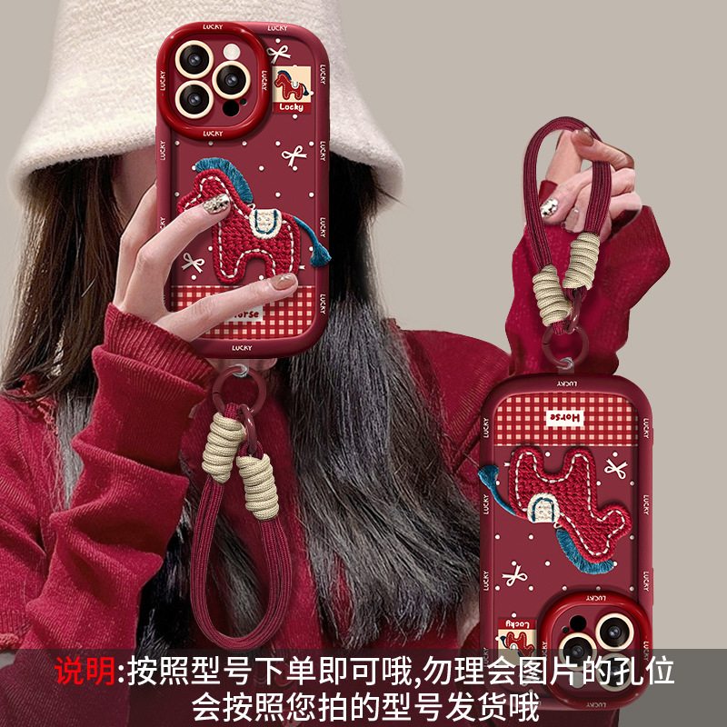 适用苹果17promax手机壳iphone15新年14软硅胶16毛绒小马挂绳13女