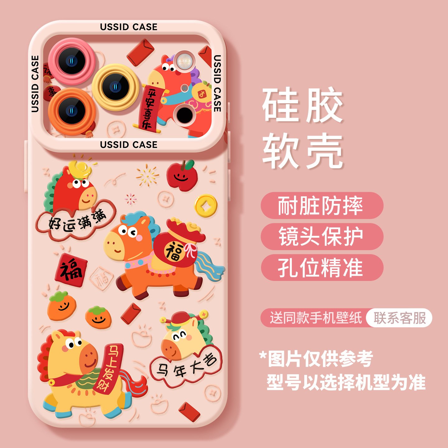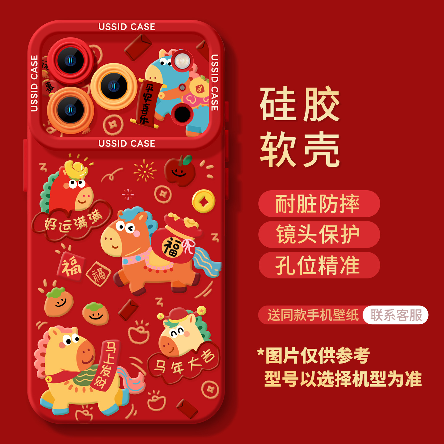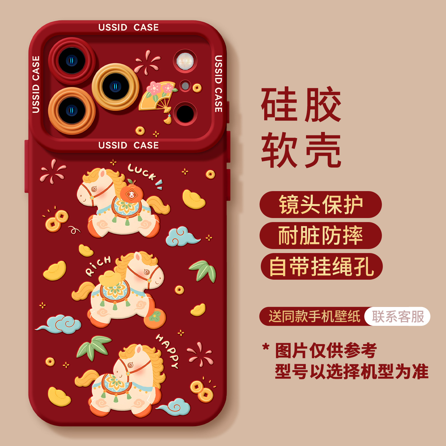 新年适用苹果17可爱16promax马15带挂链14套13硅胶软防摔手机壳