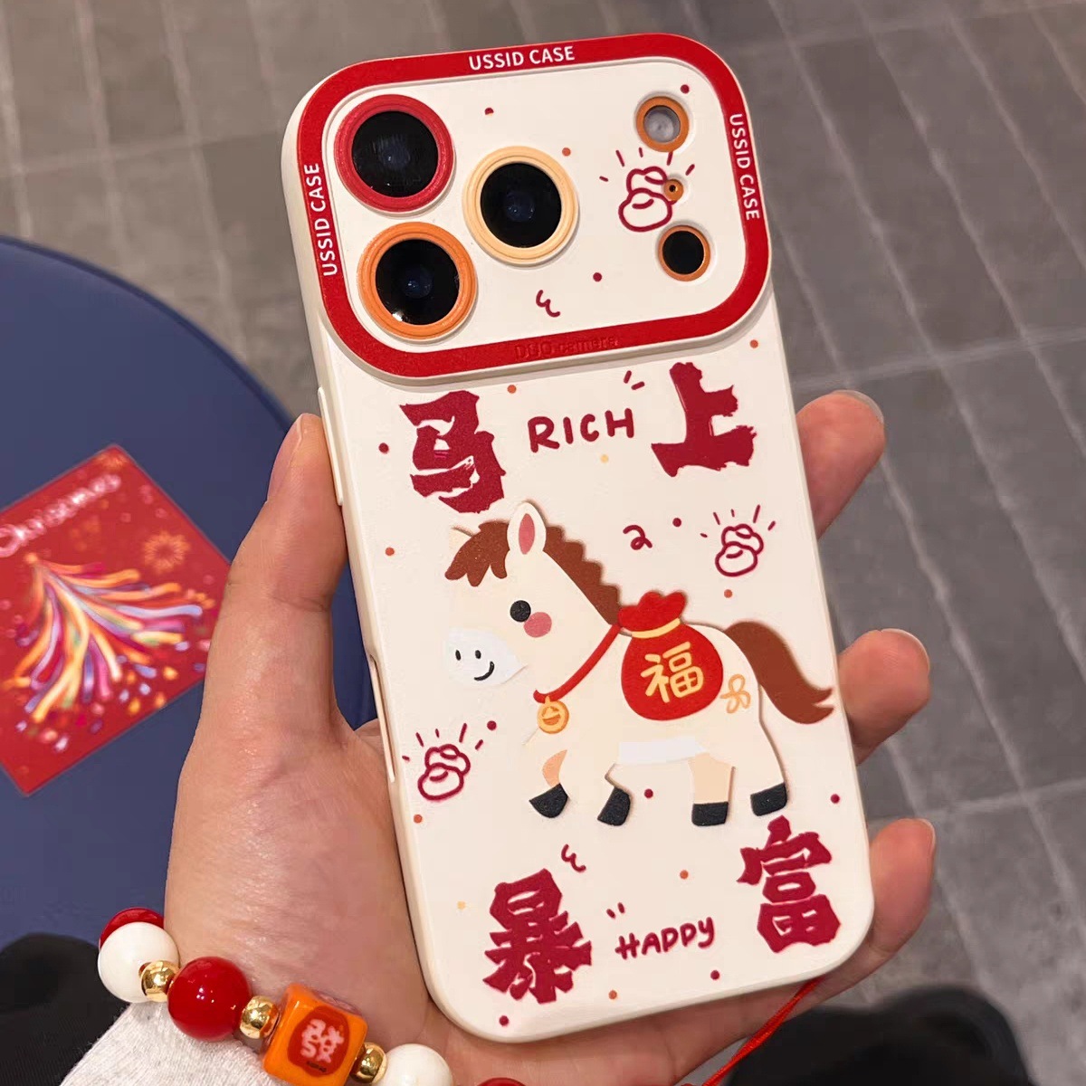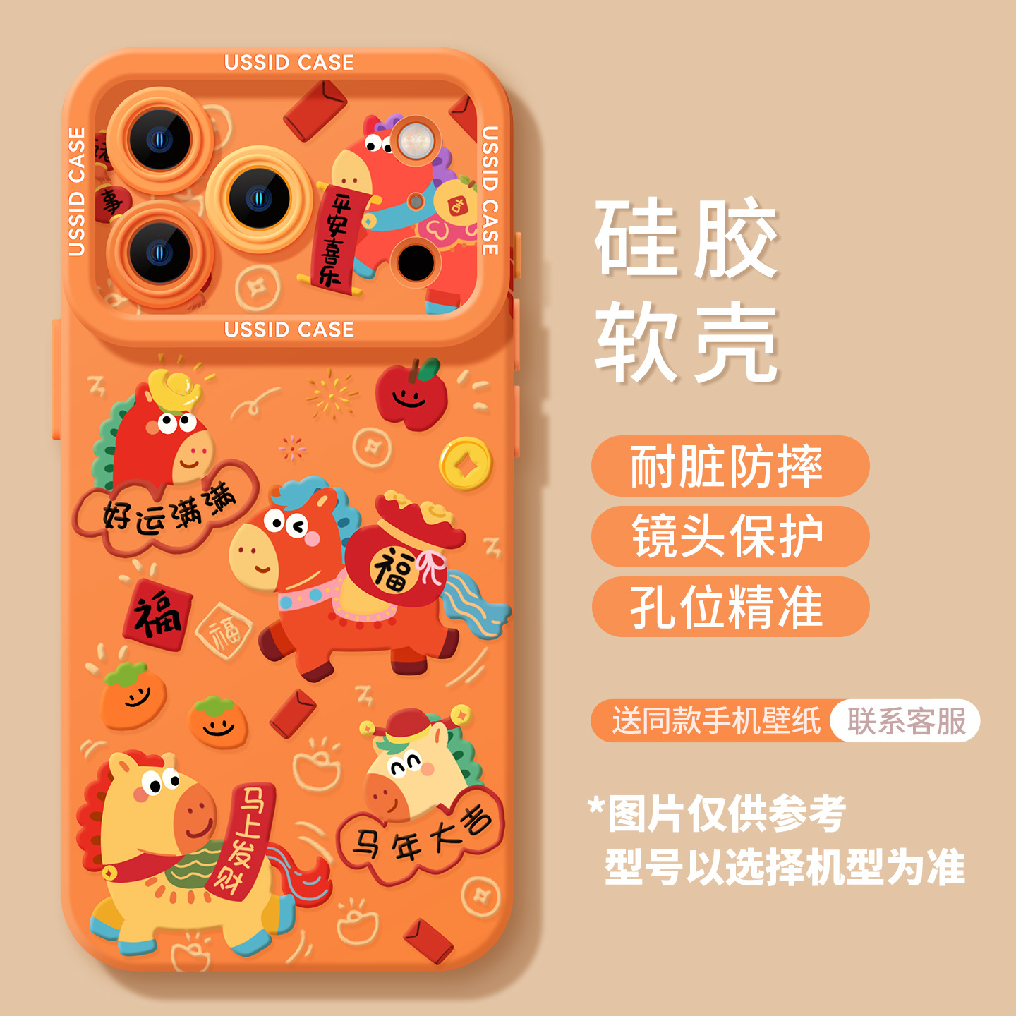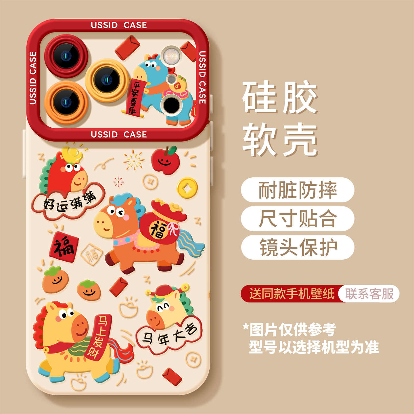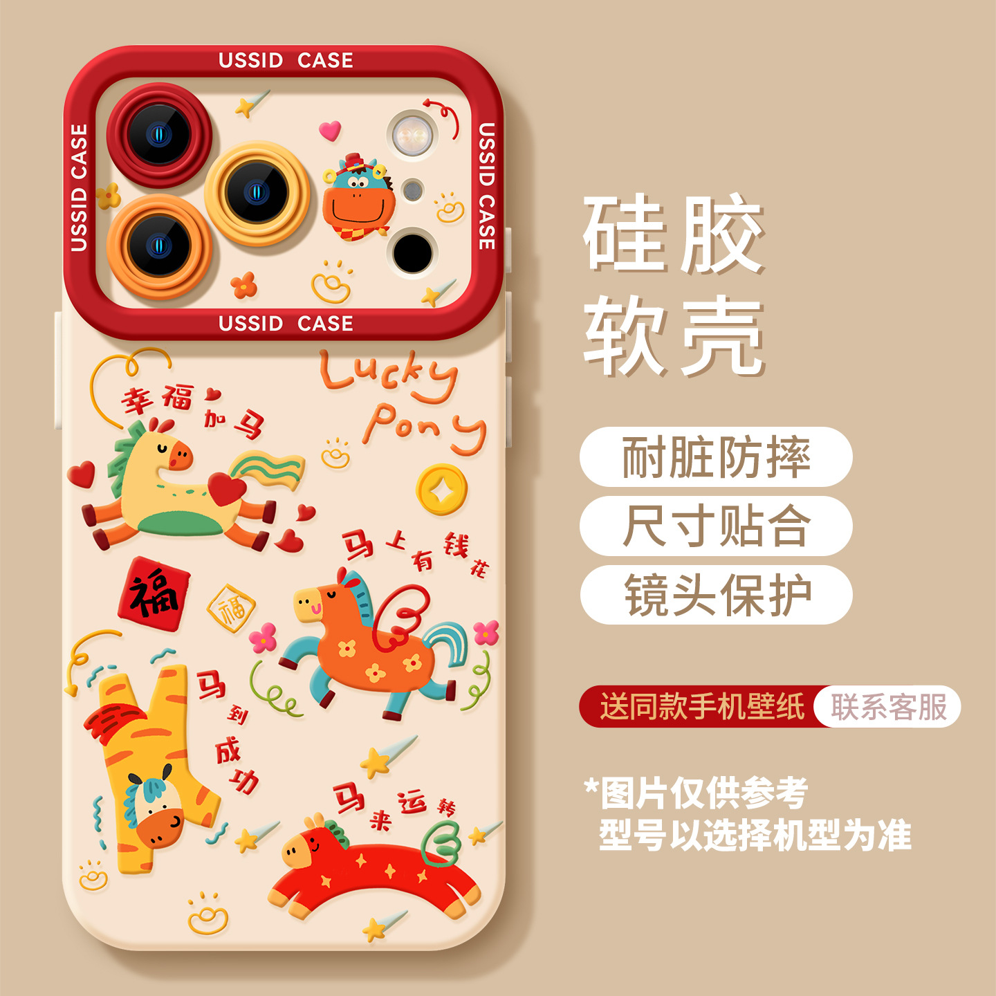 新年适用苹果17可爱16promax马15带挂链14套13硅胶软防摔手机壳