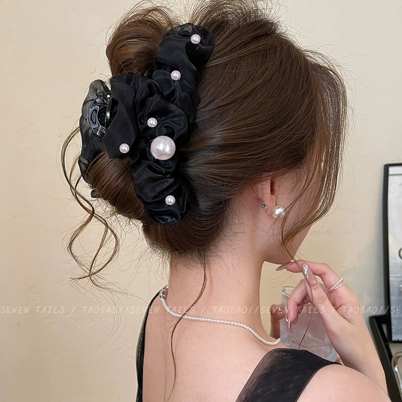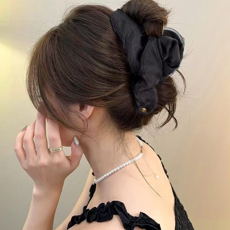高级感缎面大号抓夹女2025新款轻奢褶皱后脑勺夹子鲨鱼夹头饰发卡