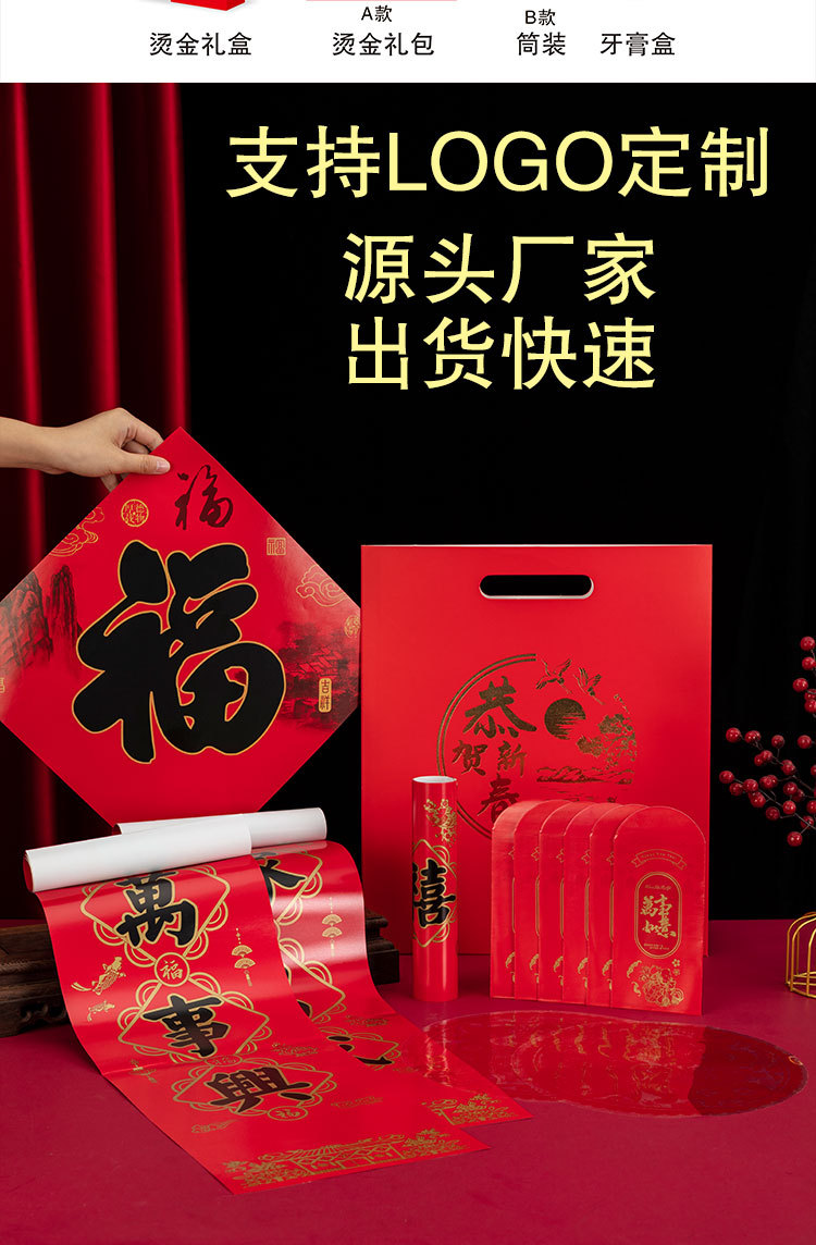 2026新年对联大礼包春节春联烫金礼盒年货套装对联定制广告印logo