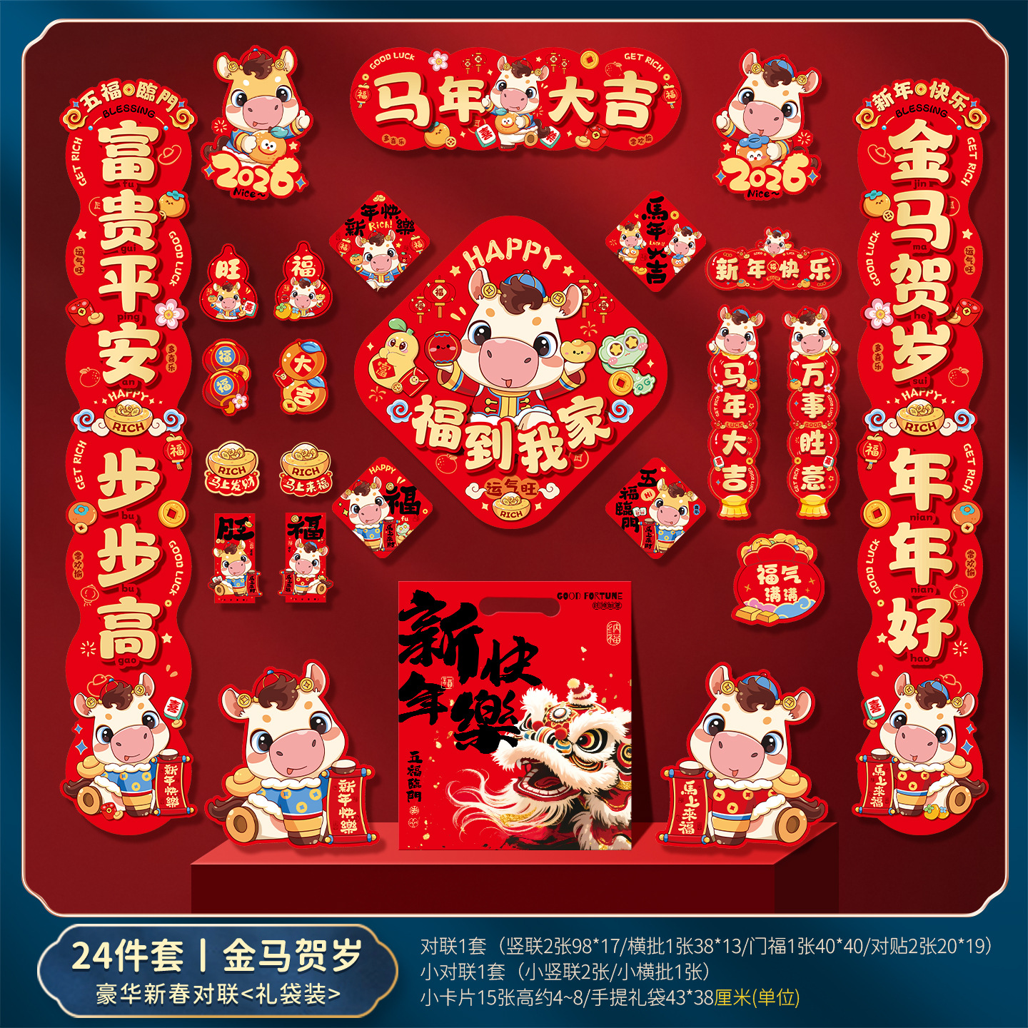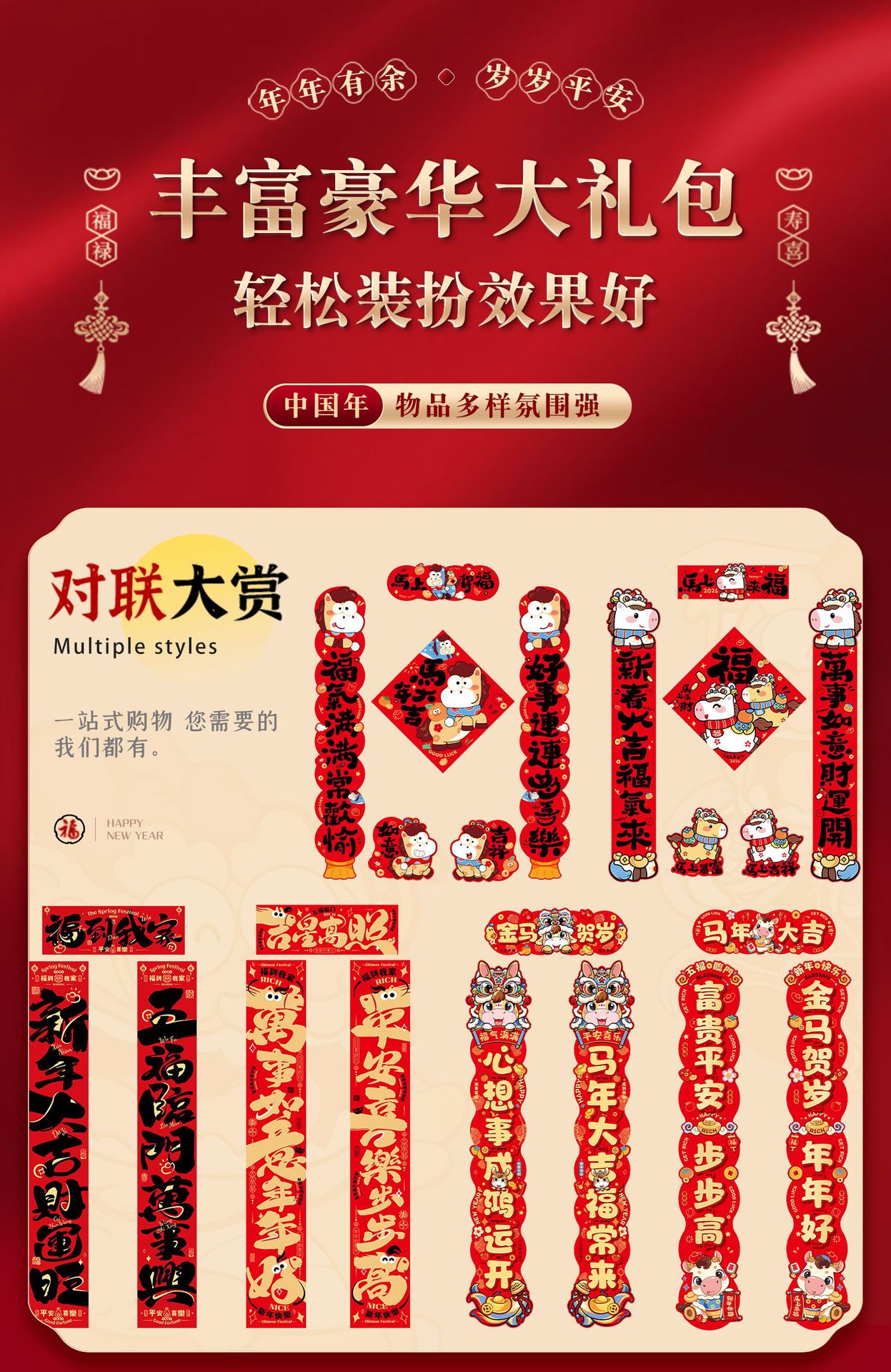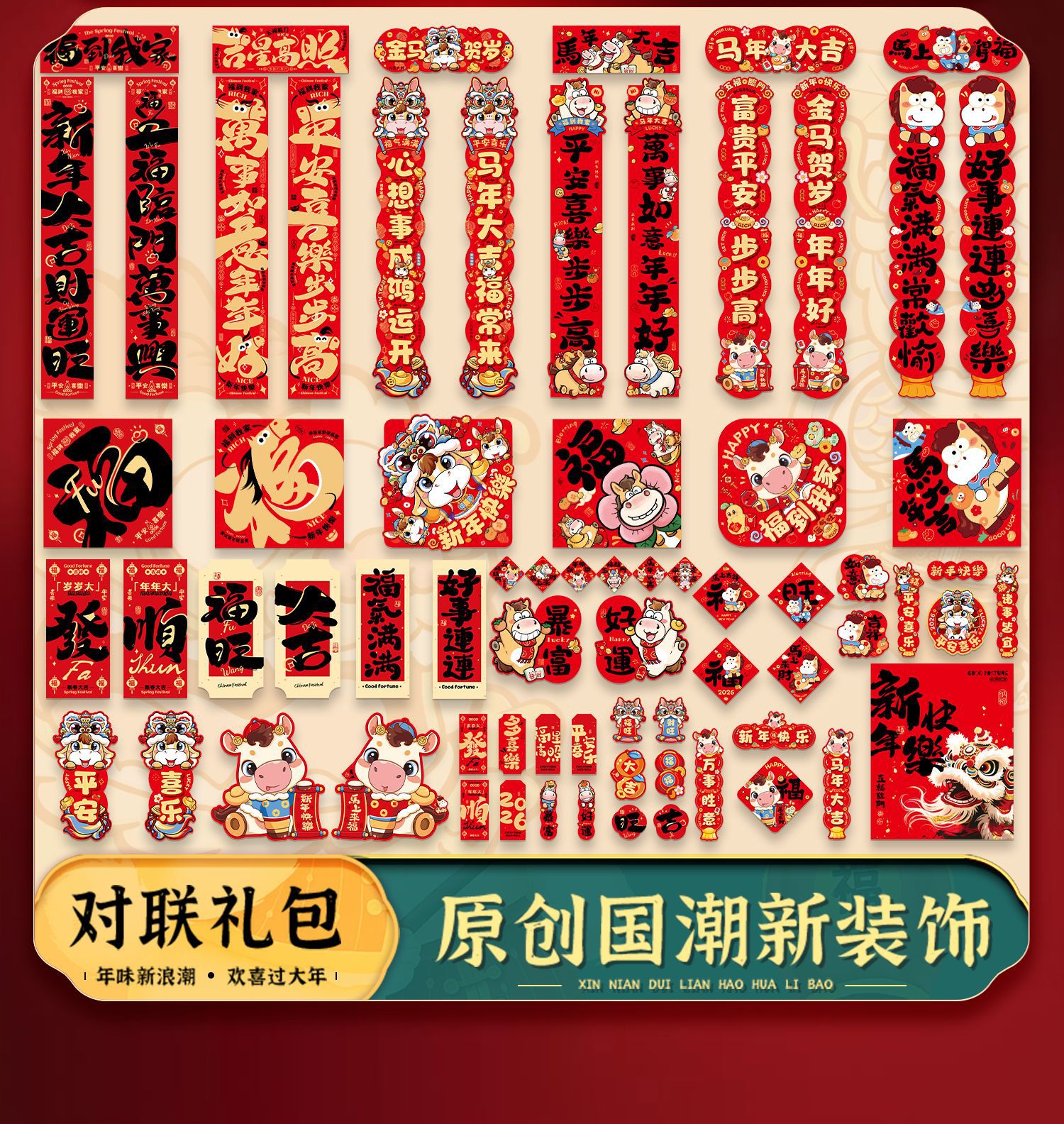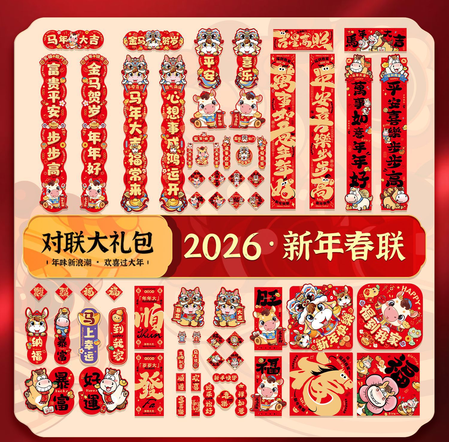 2026马年春节对联春联大礼包高颜值入户门贴装饰过年门联福字套装