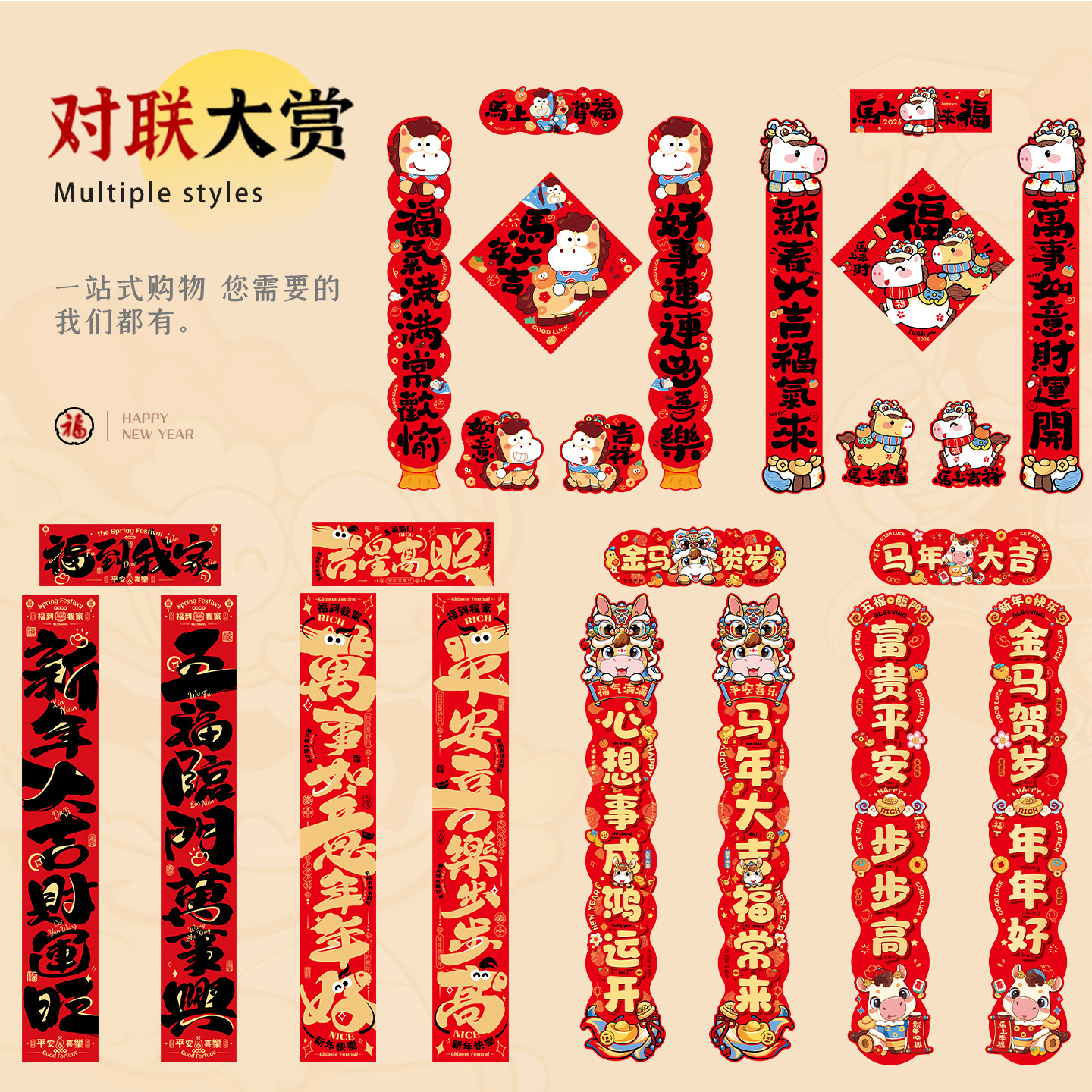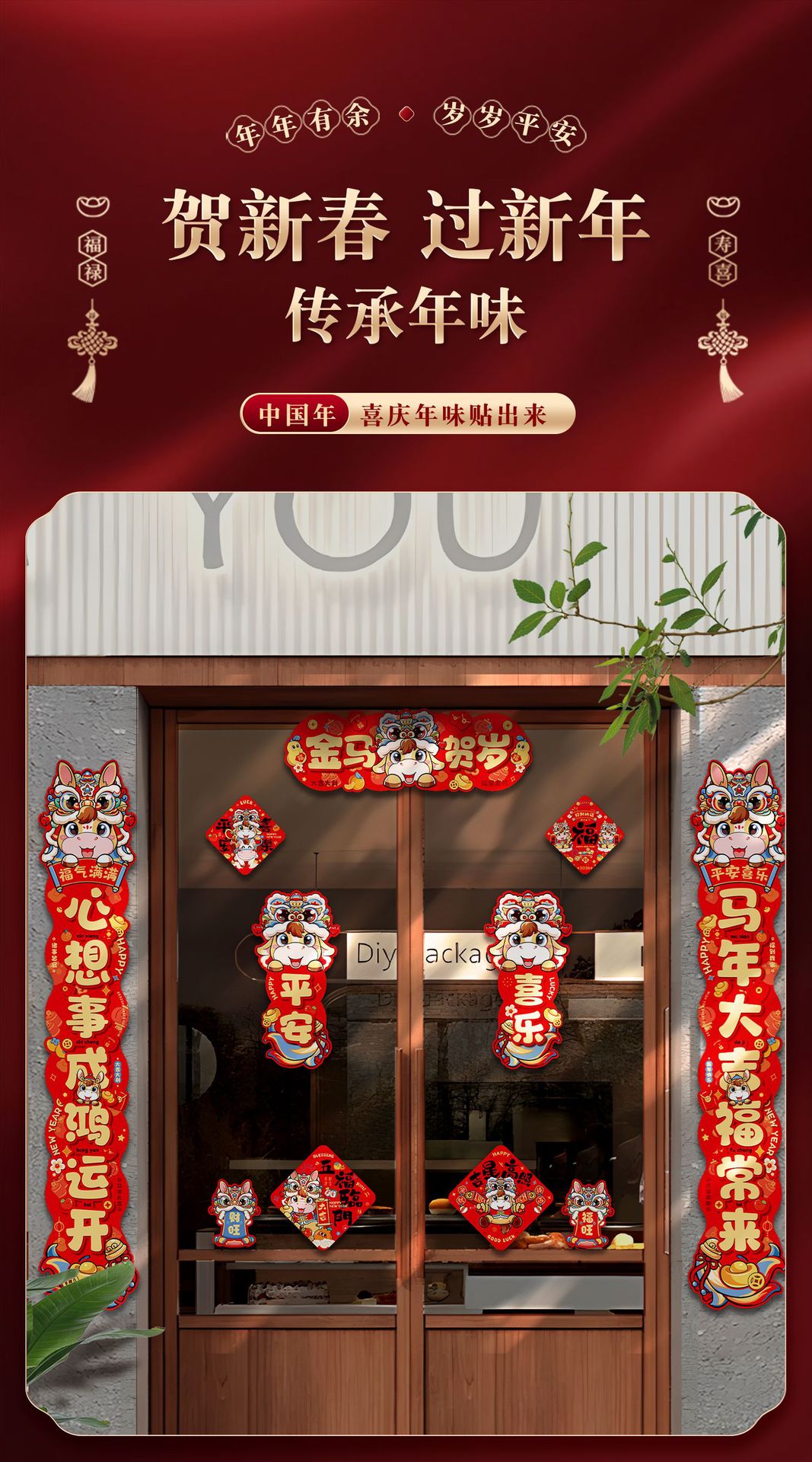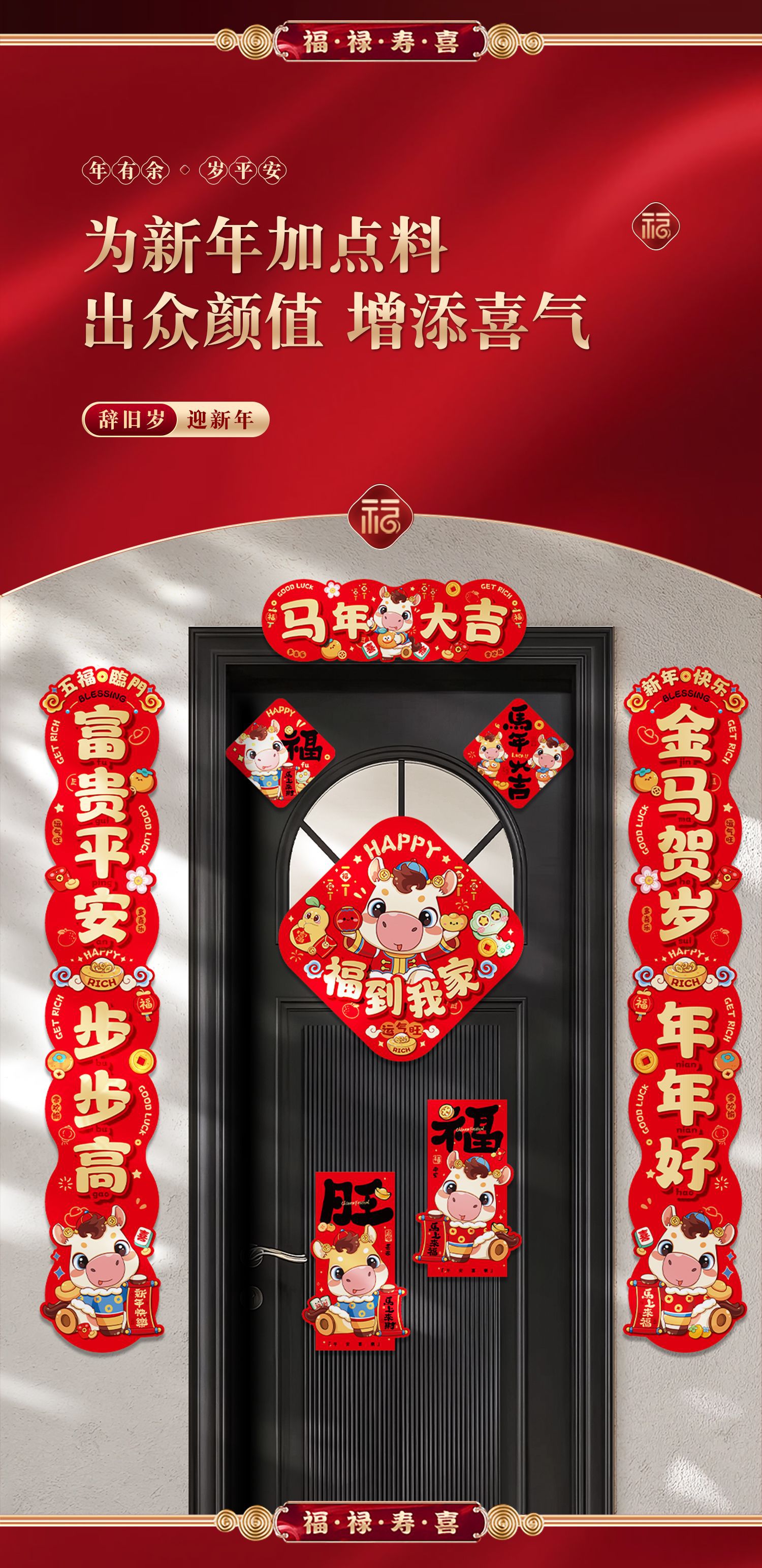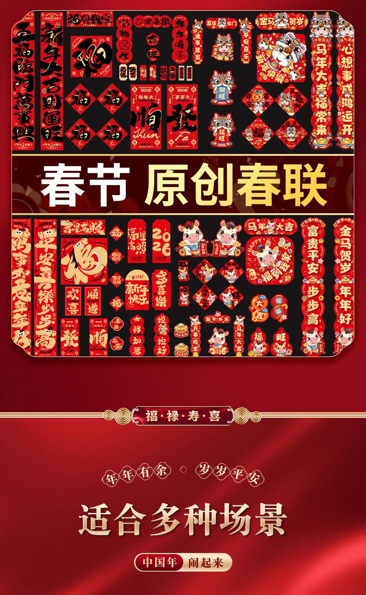 2026马年春节对联春联大礼包高颜值入户门贴装饰过年门联福字套装