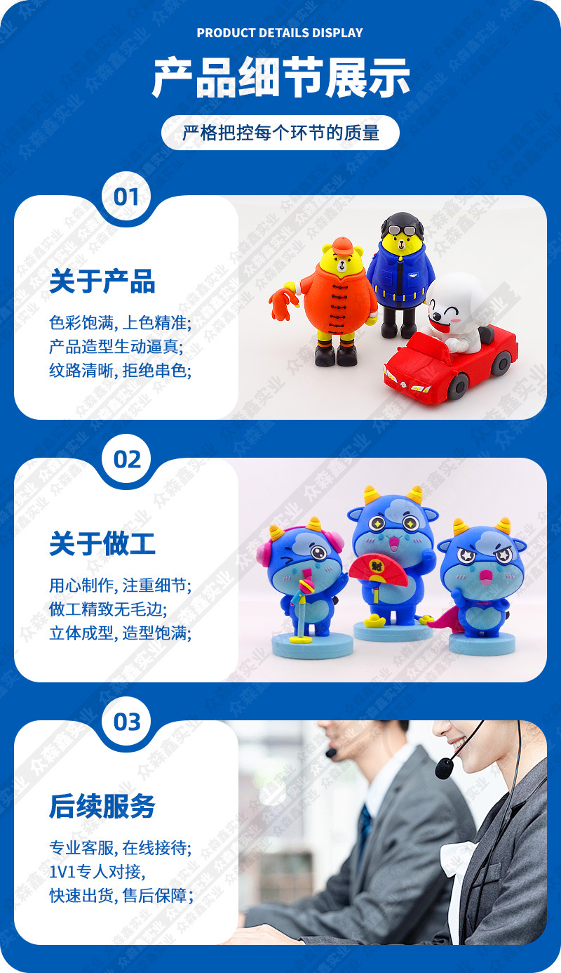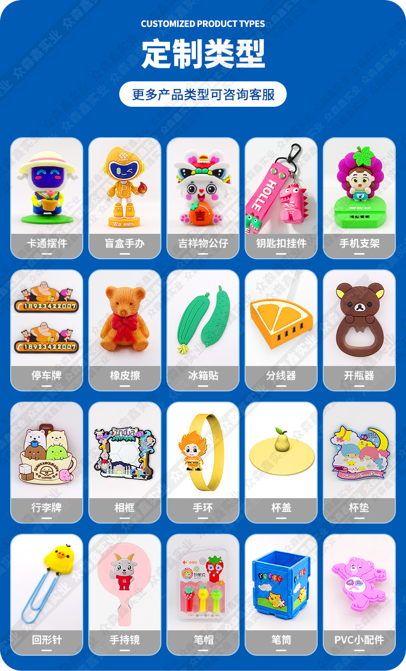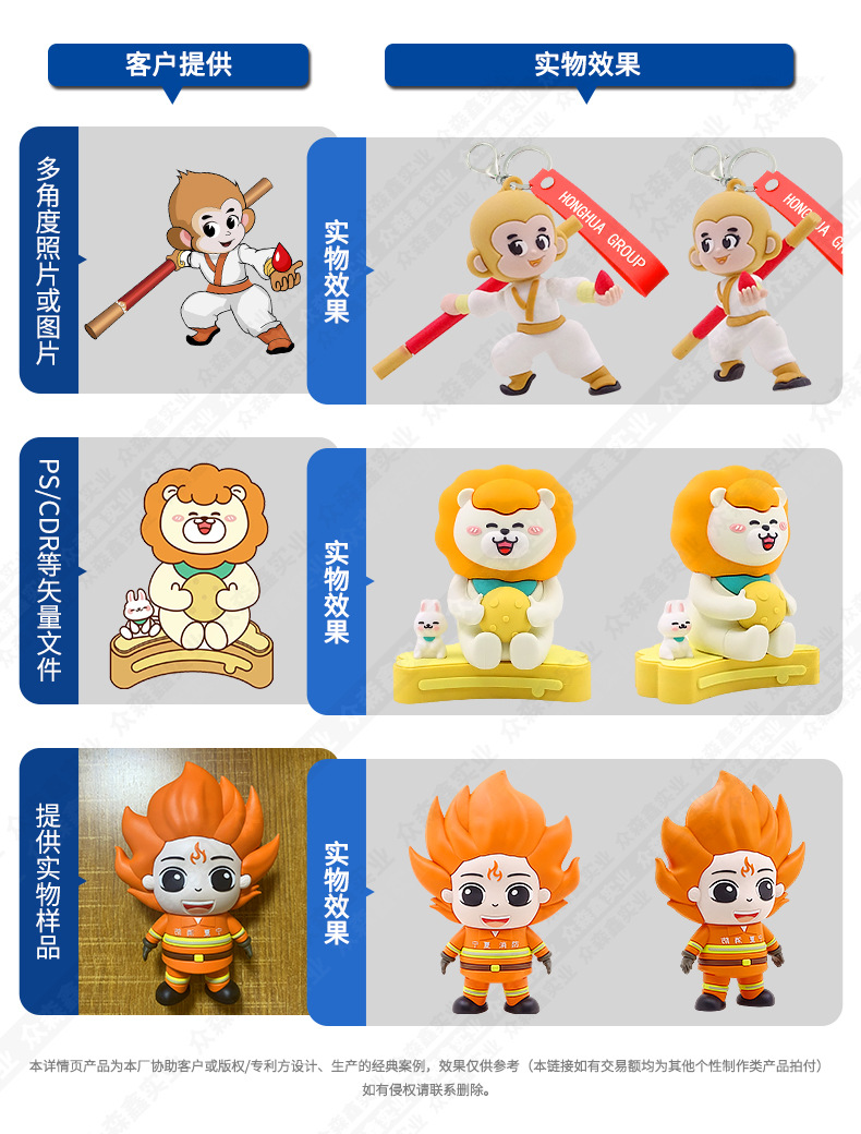 PVC钥匙扣定制卡通可爱设计异形立体创意礼品软胶公仔挂饰钥匙扣