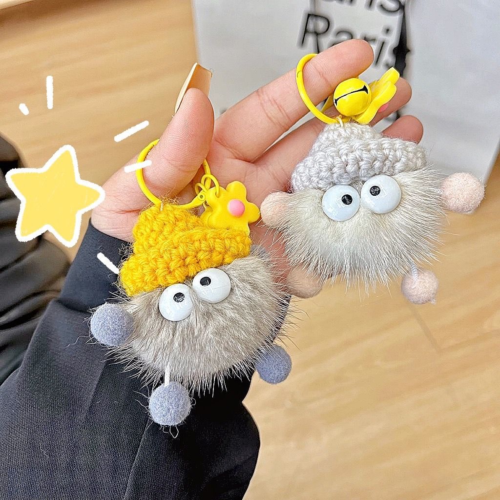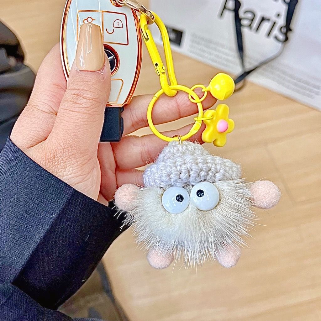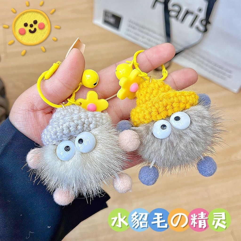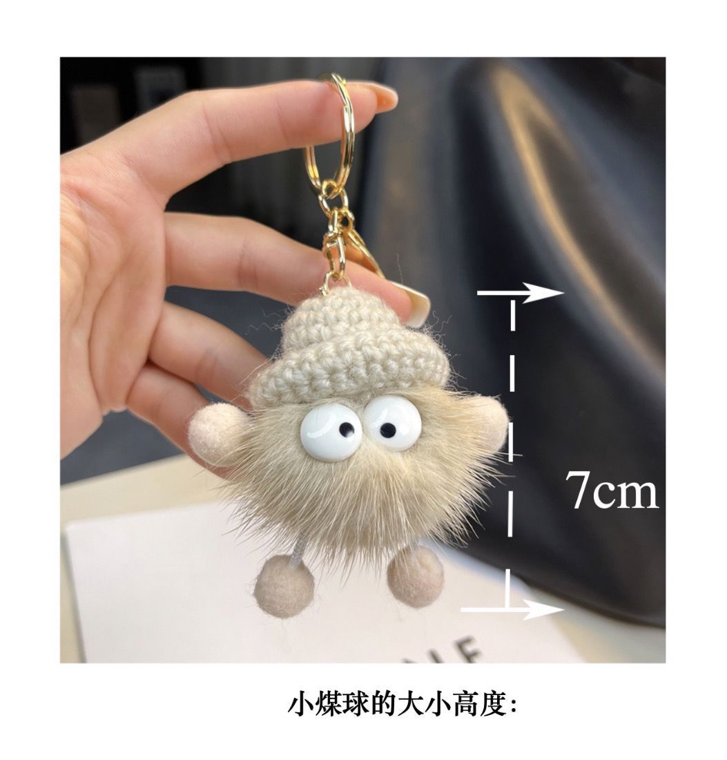 可爱仿水貂毛小煤球汽车钥匙扣挂件韩国ins网红毛绒书包包挂饰礼