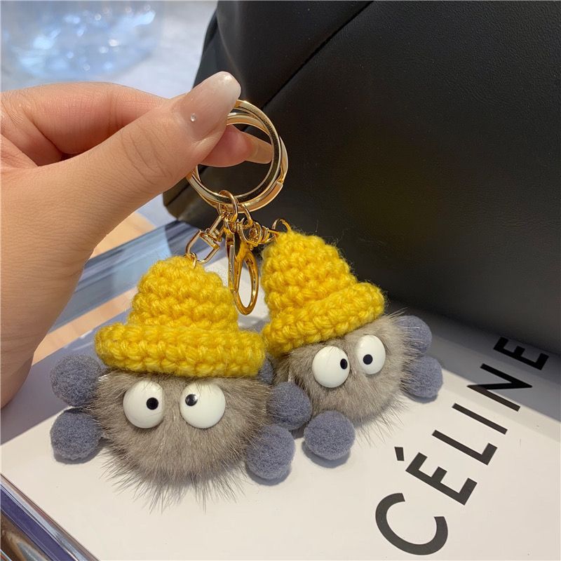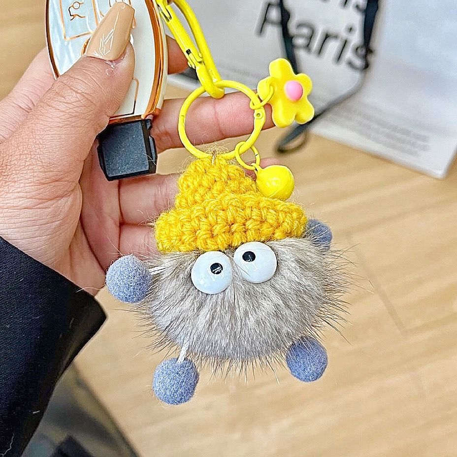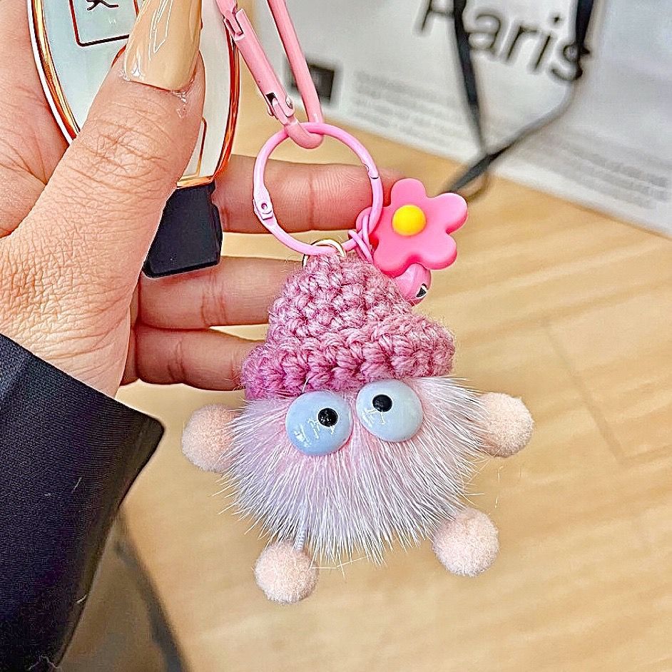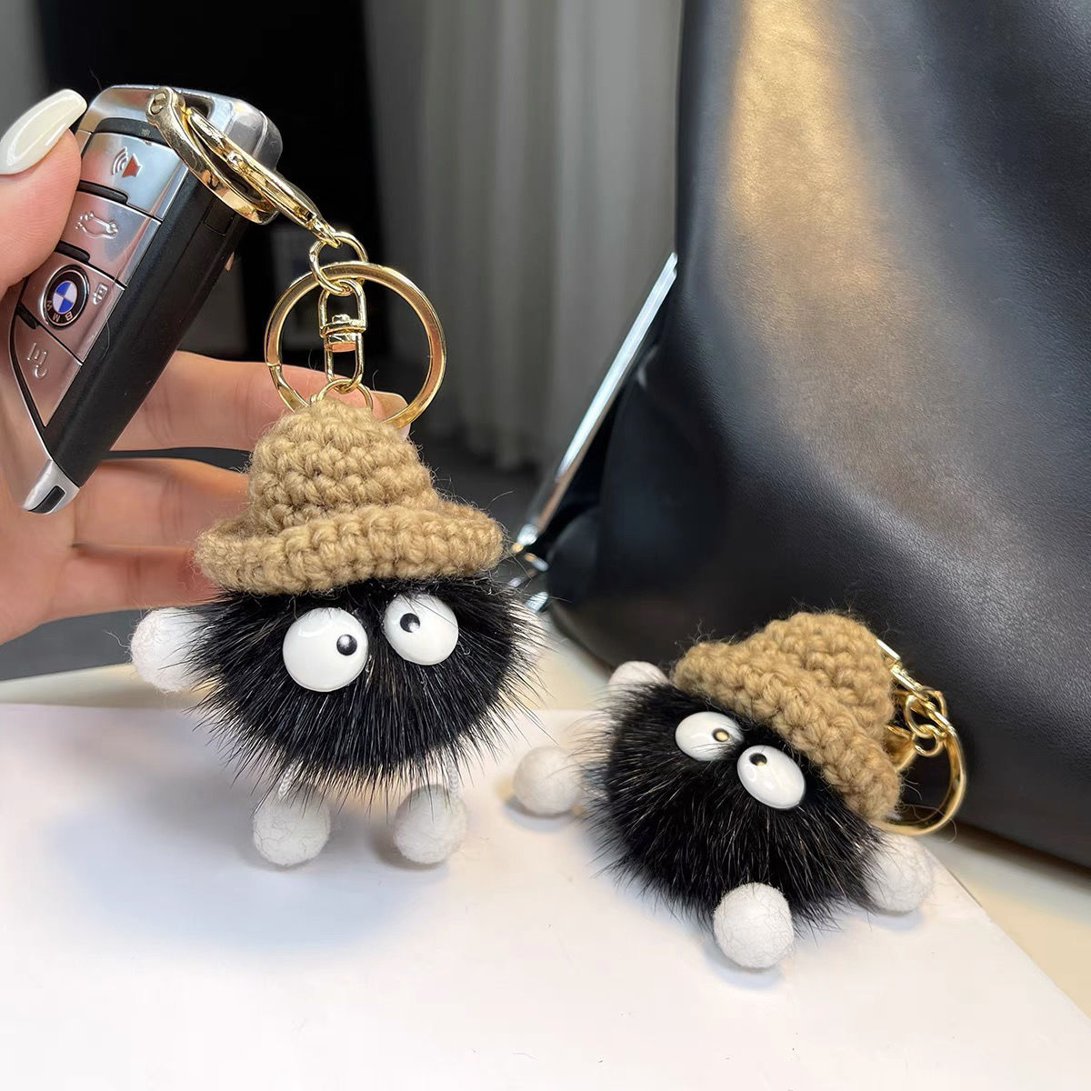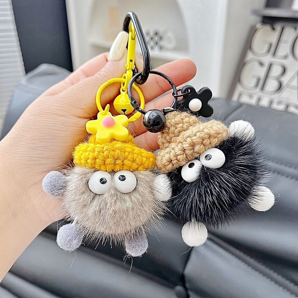 可爱仿水貂毛小煤球汽车钥匙扣挂件韩国ins网红毛绒书包包挂饰礼