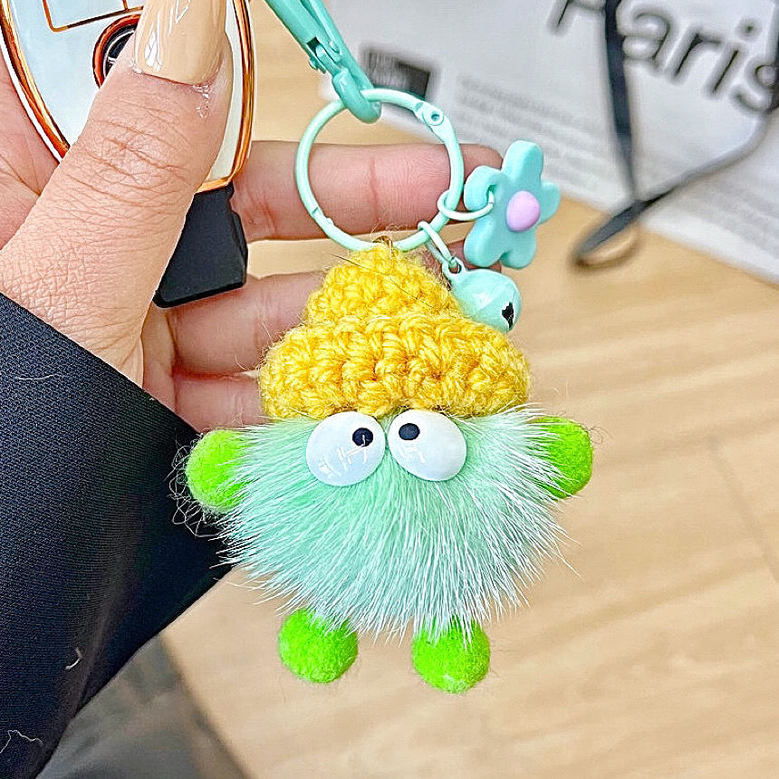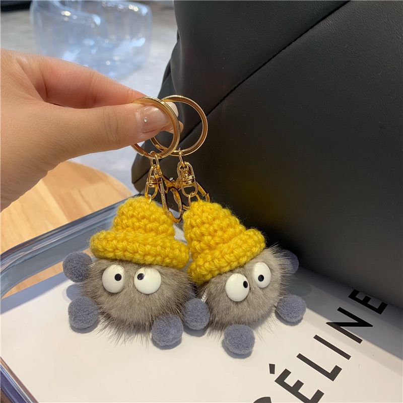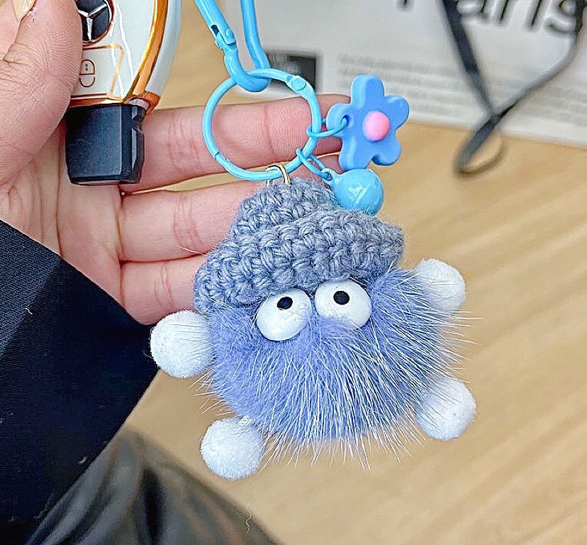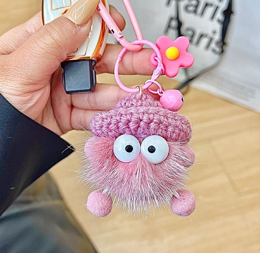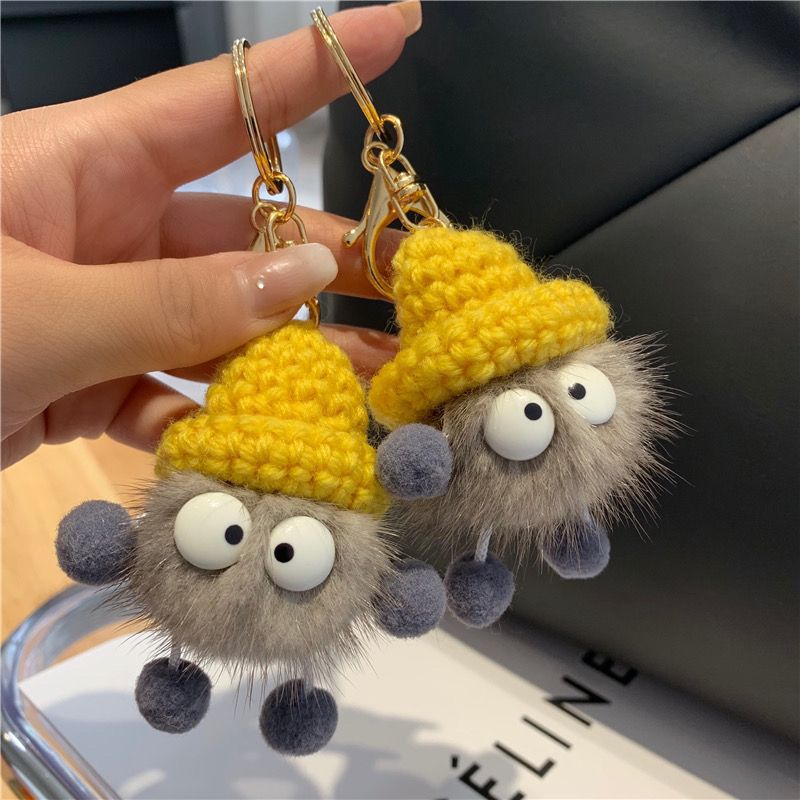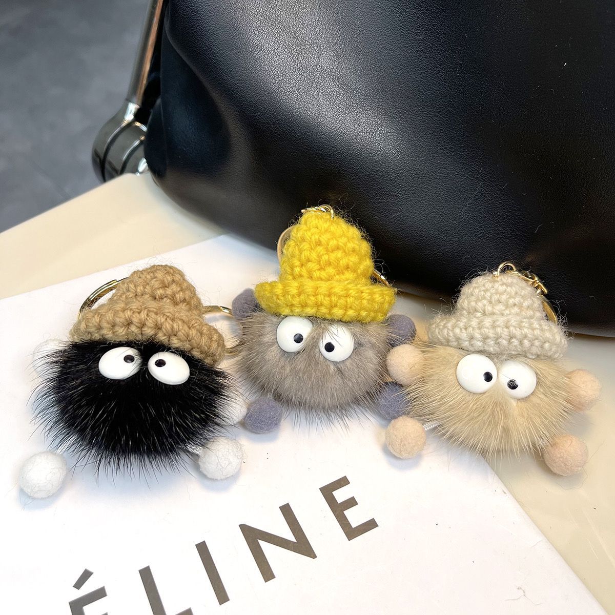 可爱仿水貂毛小煤球汽车钥匙扣挂件韩国ins网红毛绒书包包挂饰礼