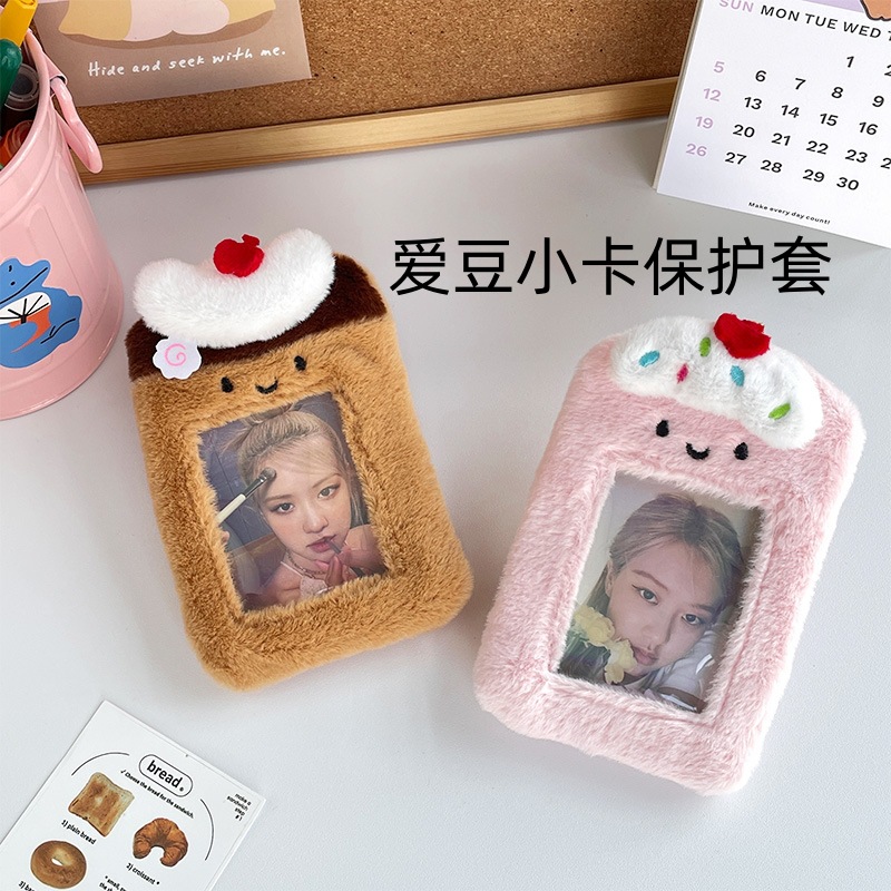 新品可爱毛绒甜品卡套透明饭卡公交卡收纳包爱豆小卡展示挂件批发
