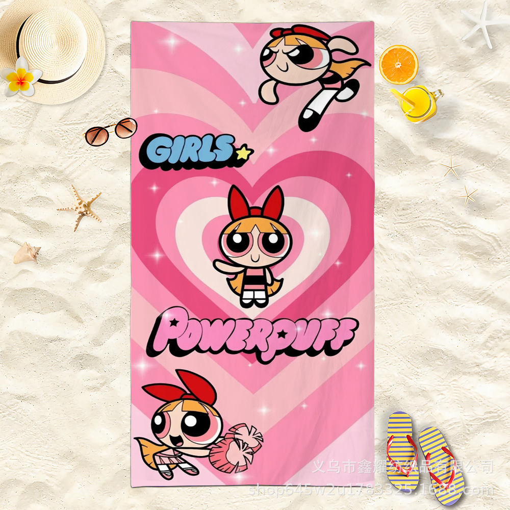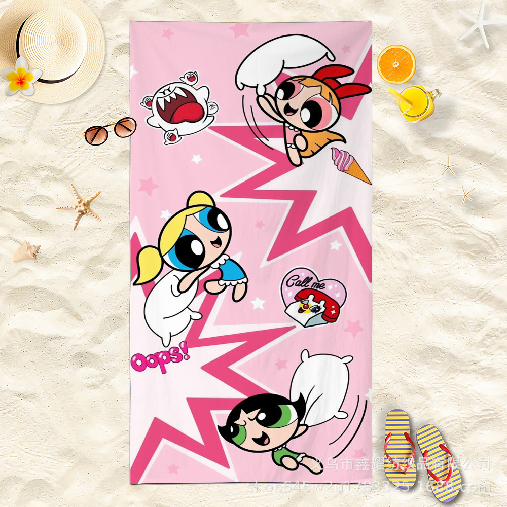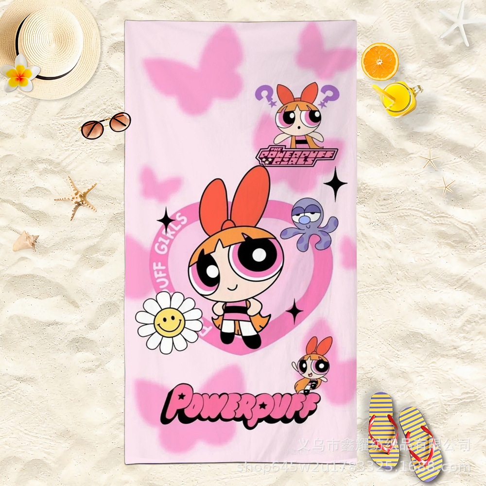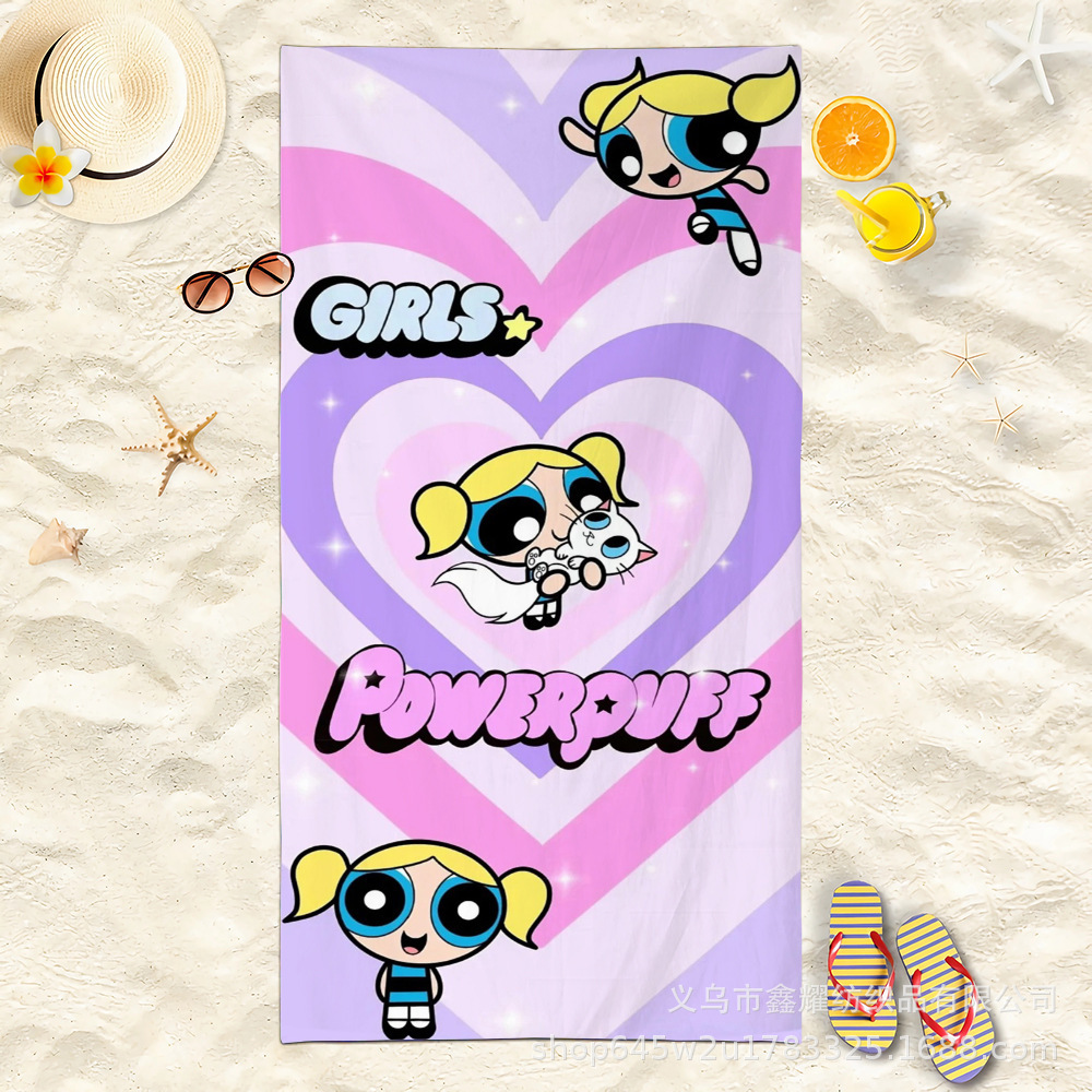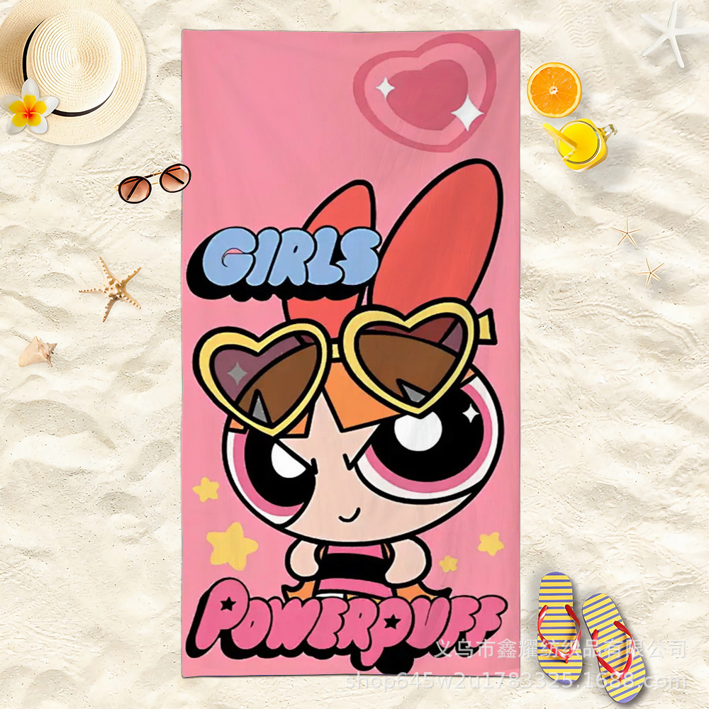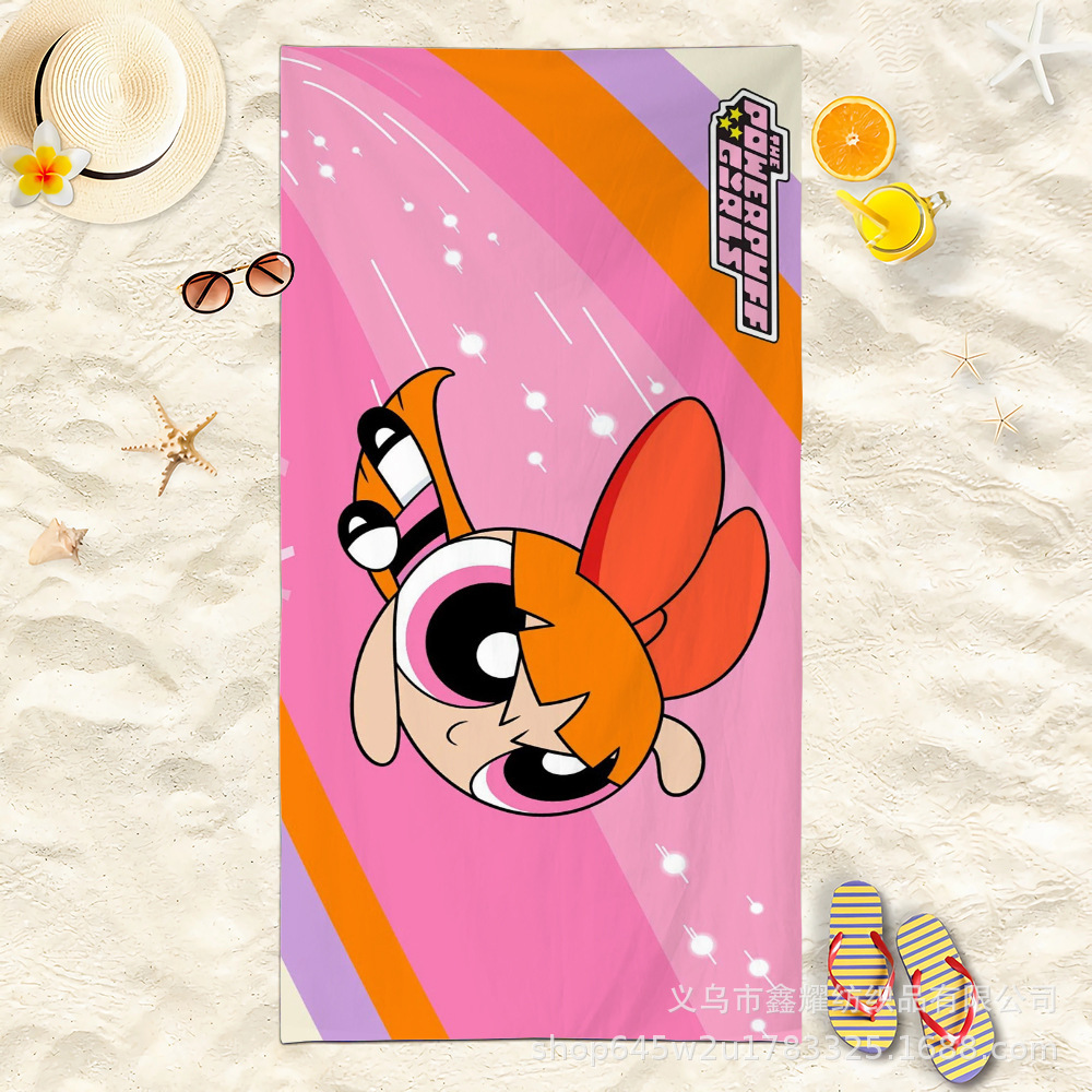双面毛圈卡通飞天小女警超细纤维沙滩巾可爱浴室旅行海滩吸收毛巾