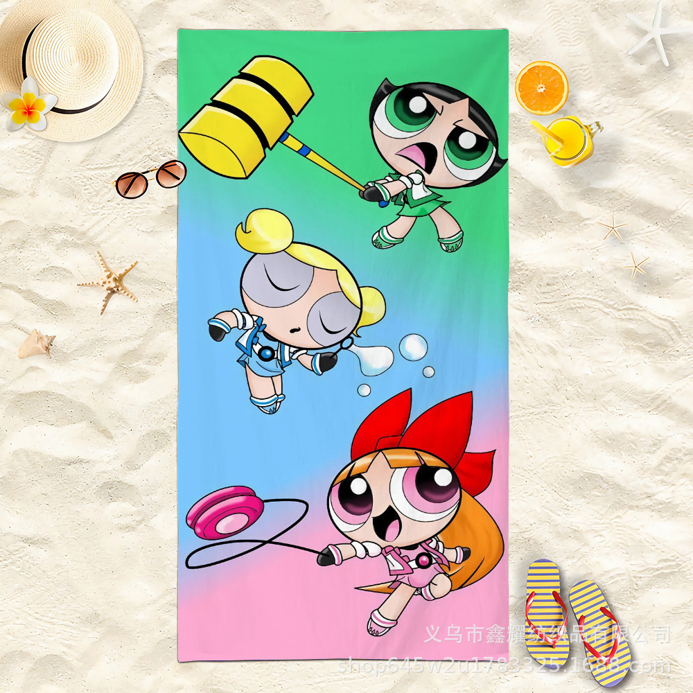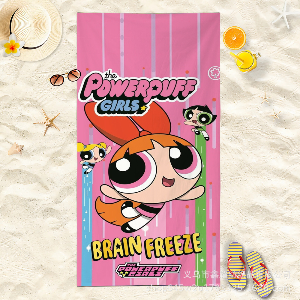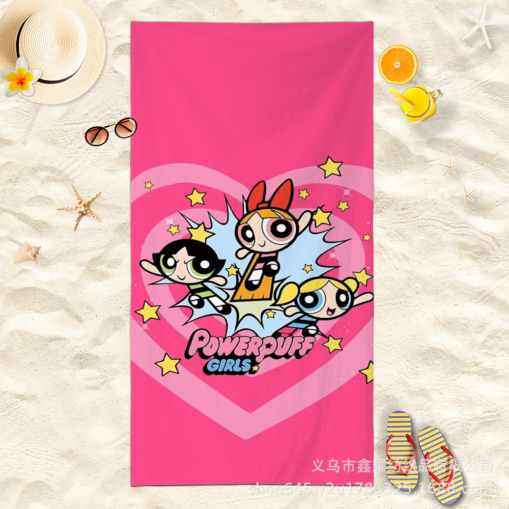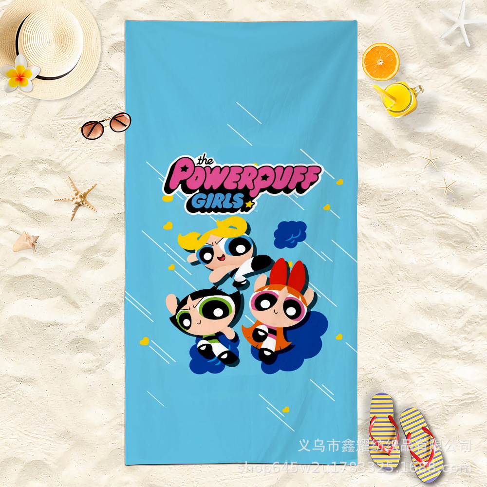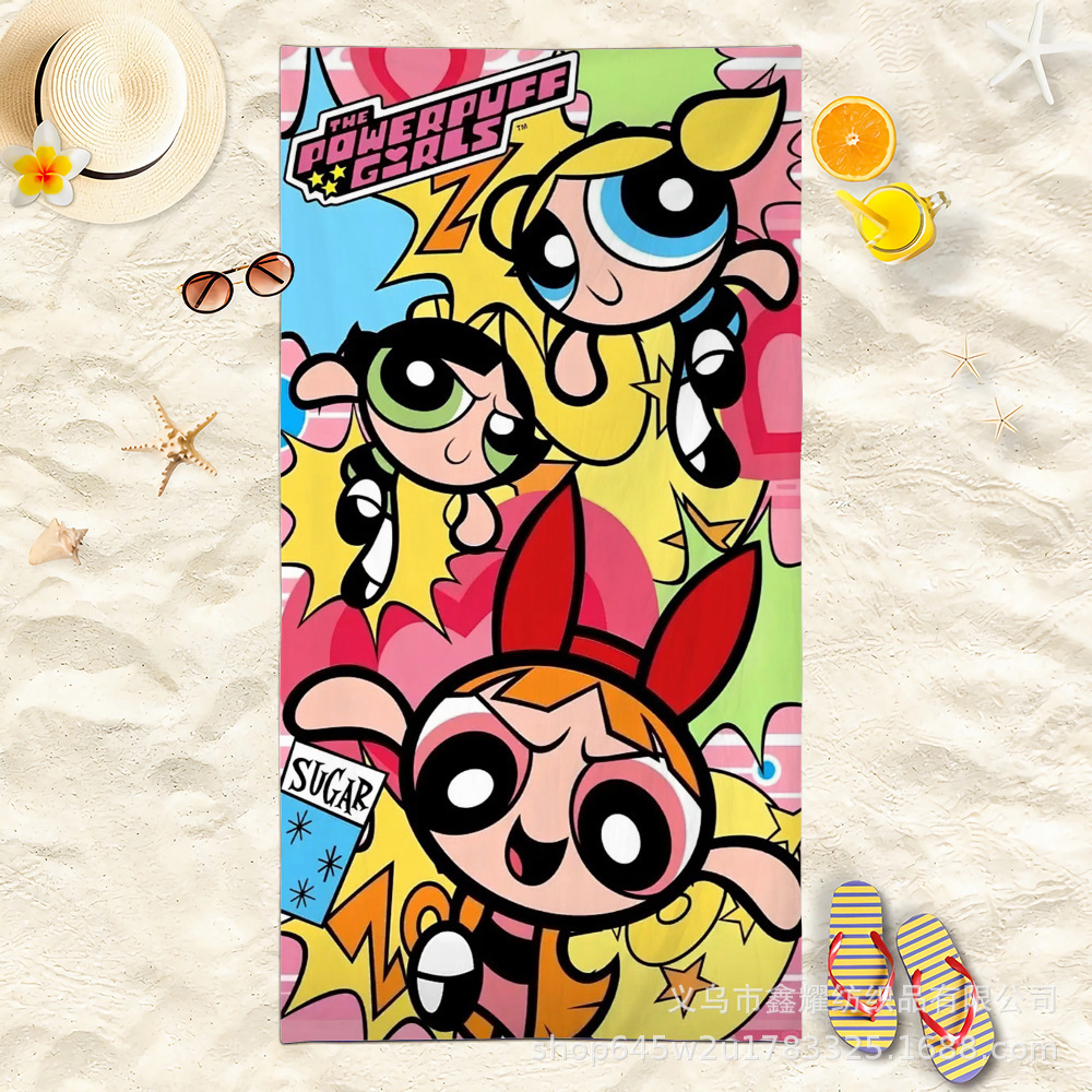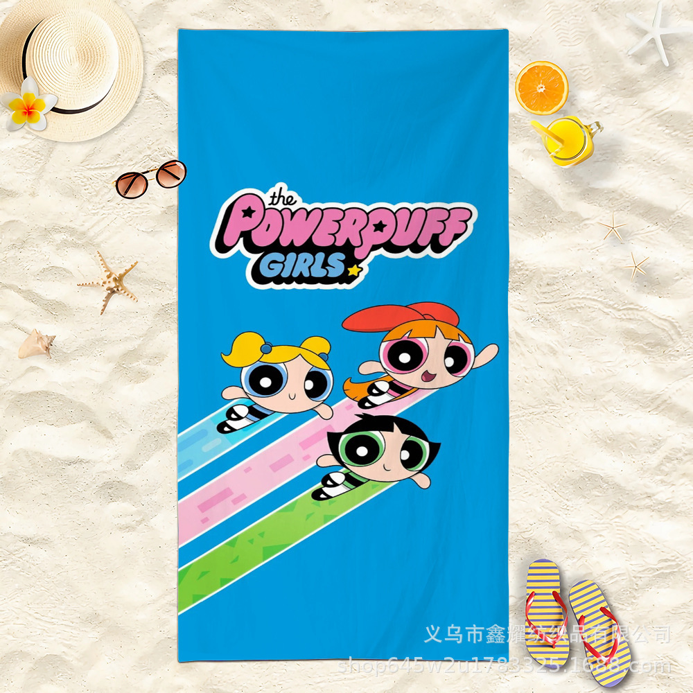 双面毛圈卡通飞天小女警超细纤维沙滩巾可爱浴室旅行海滩吸收毛巾