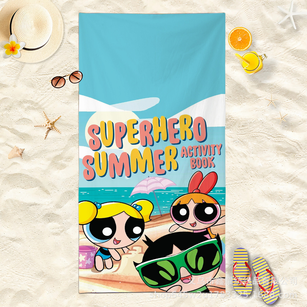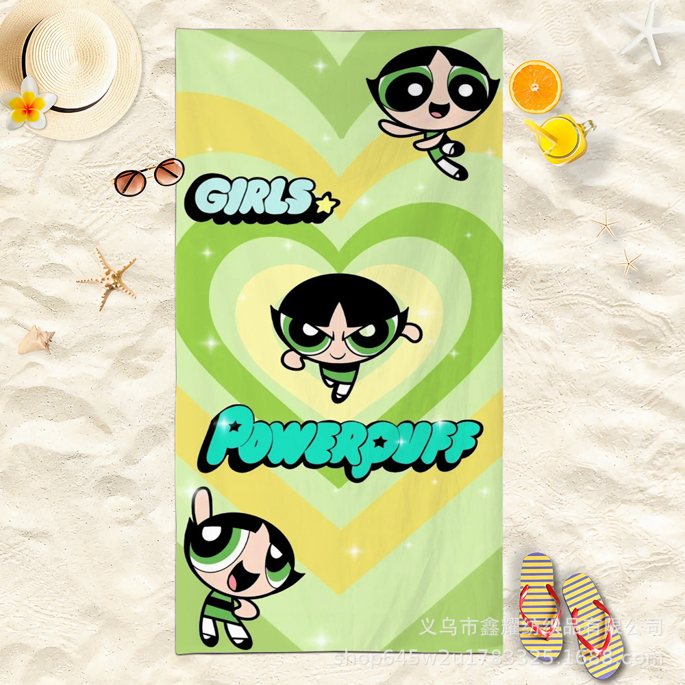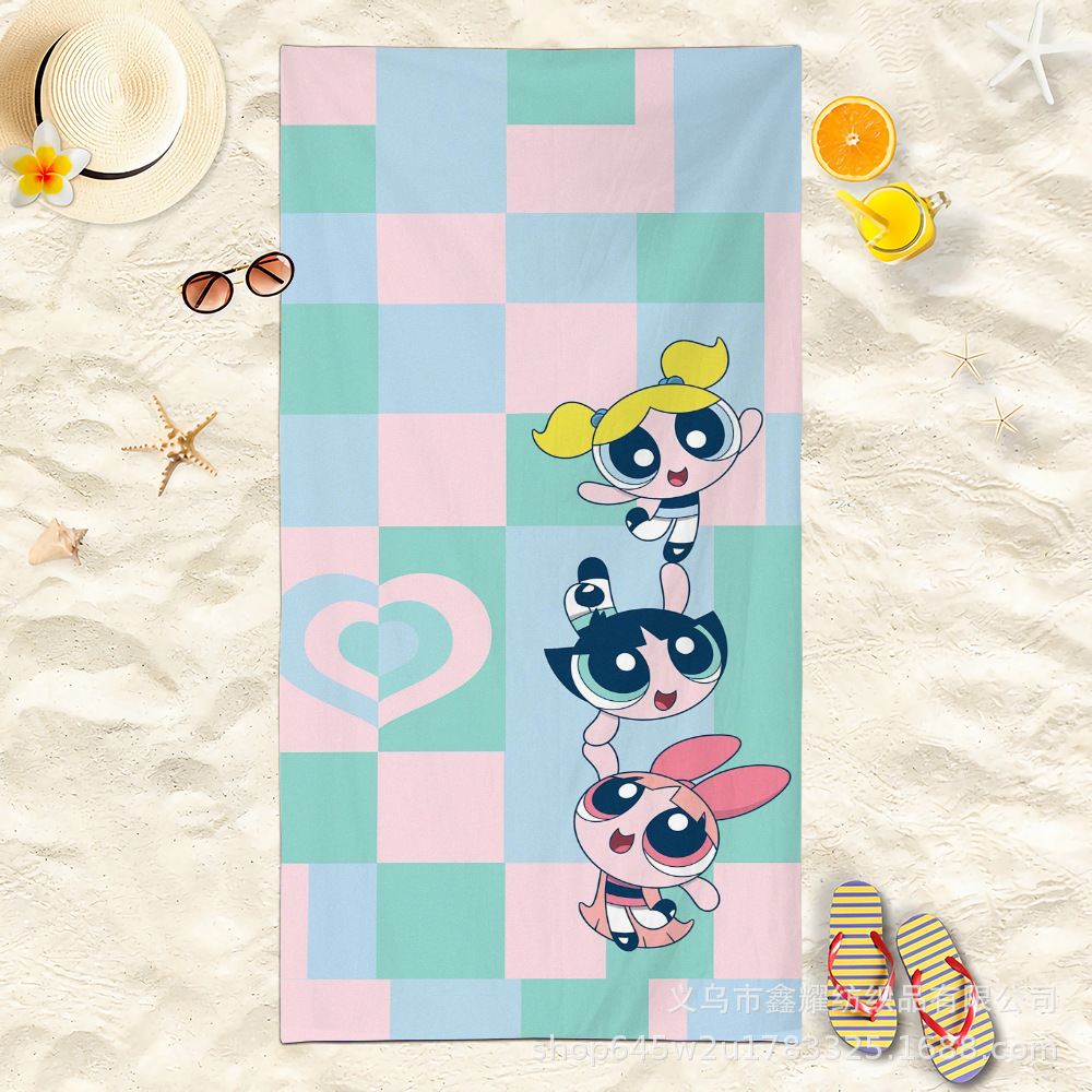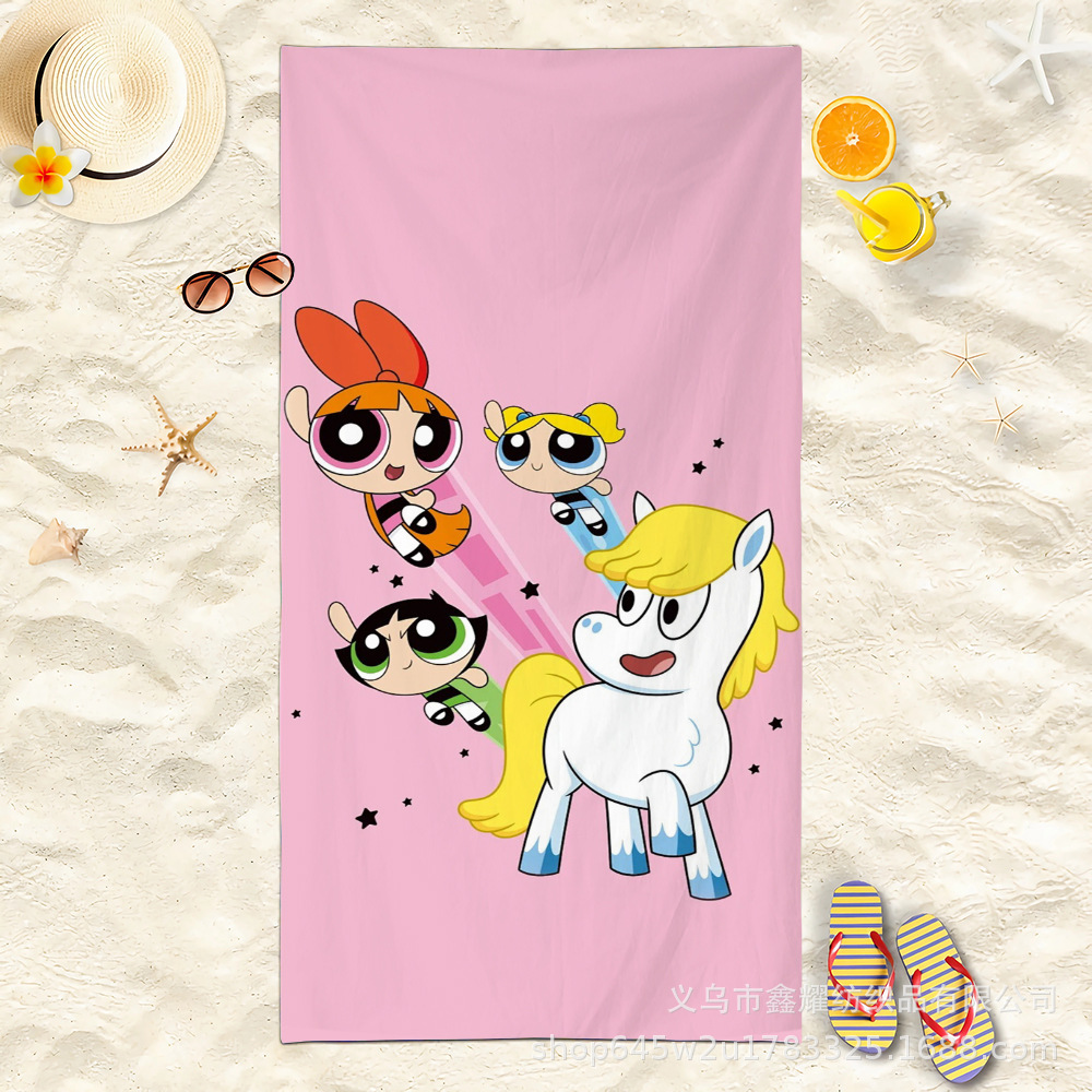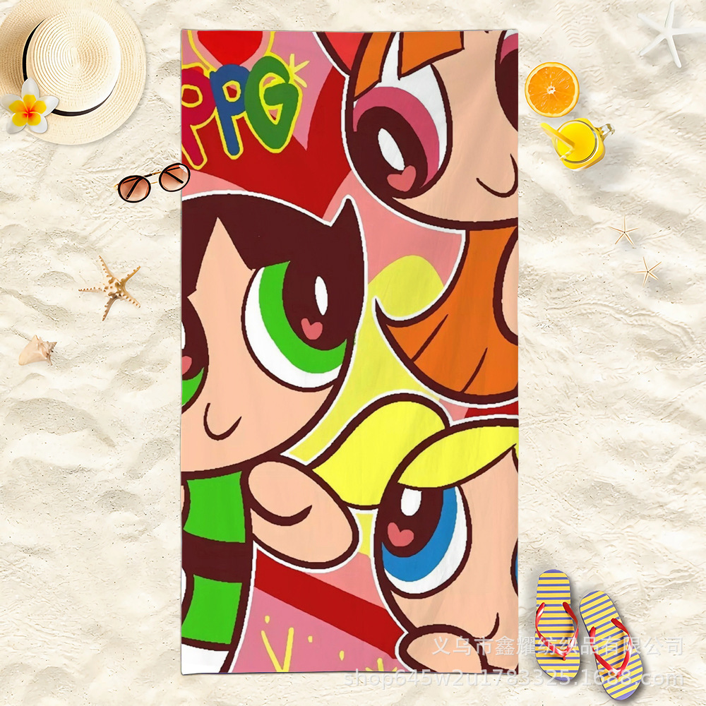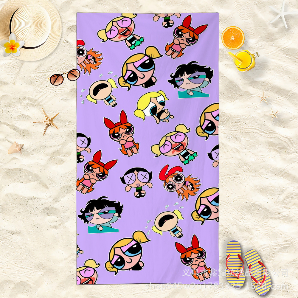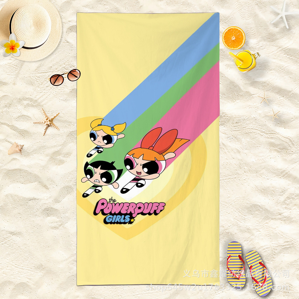双面毛圈卡通飞天小女警超细纤维沙滩巾可爱浴室旅行海滩吸收毛巾