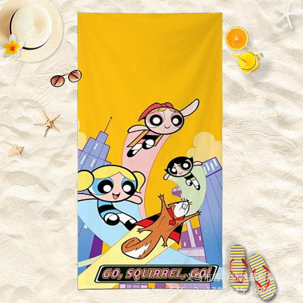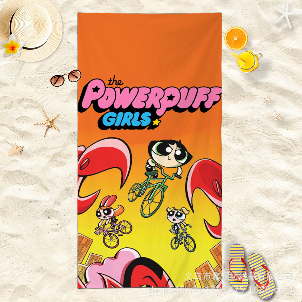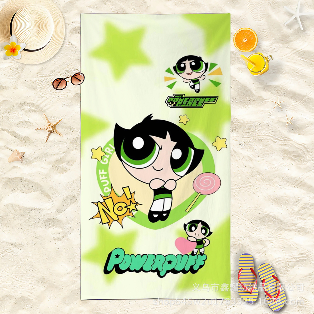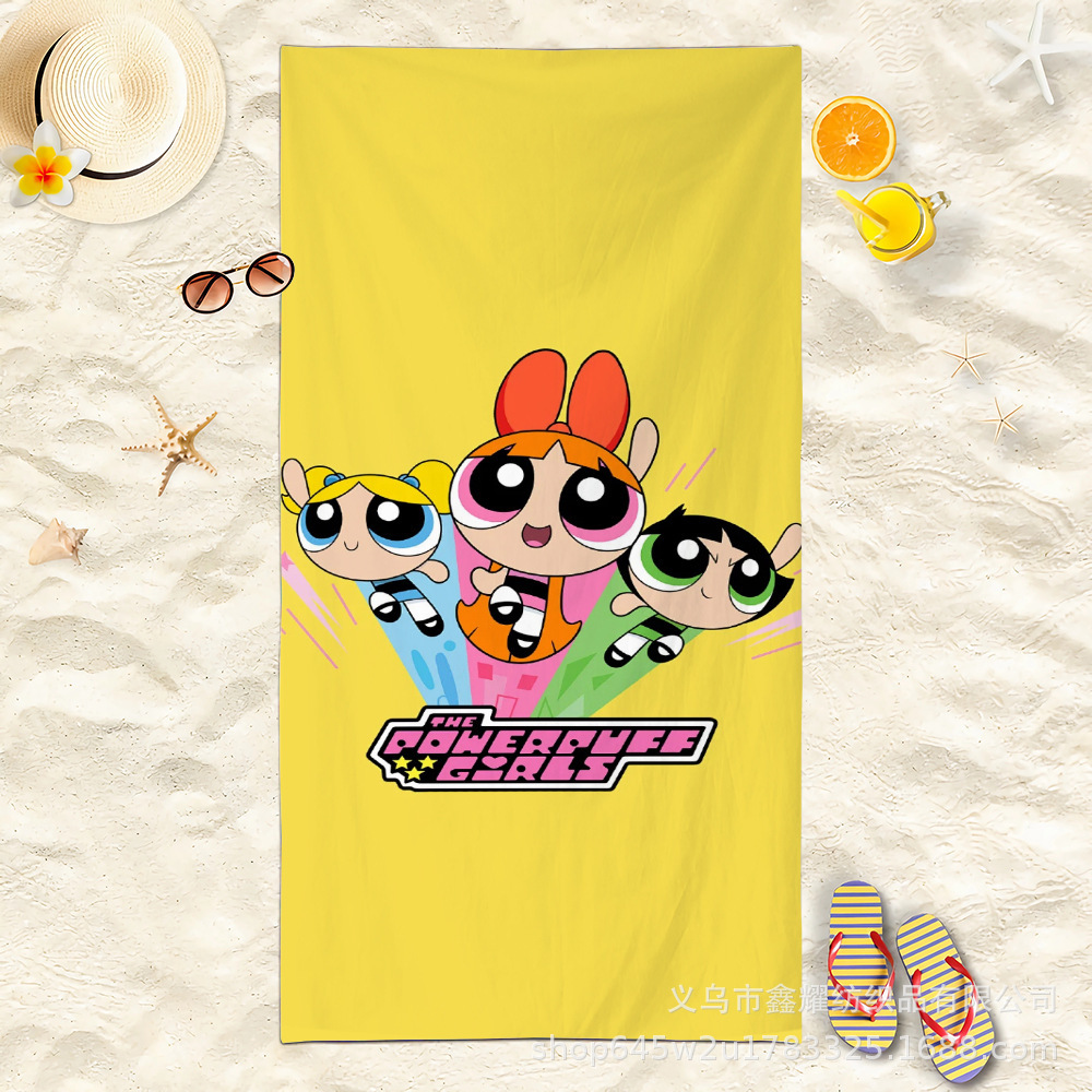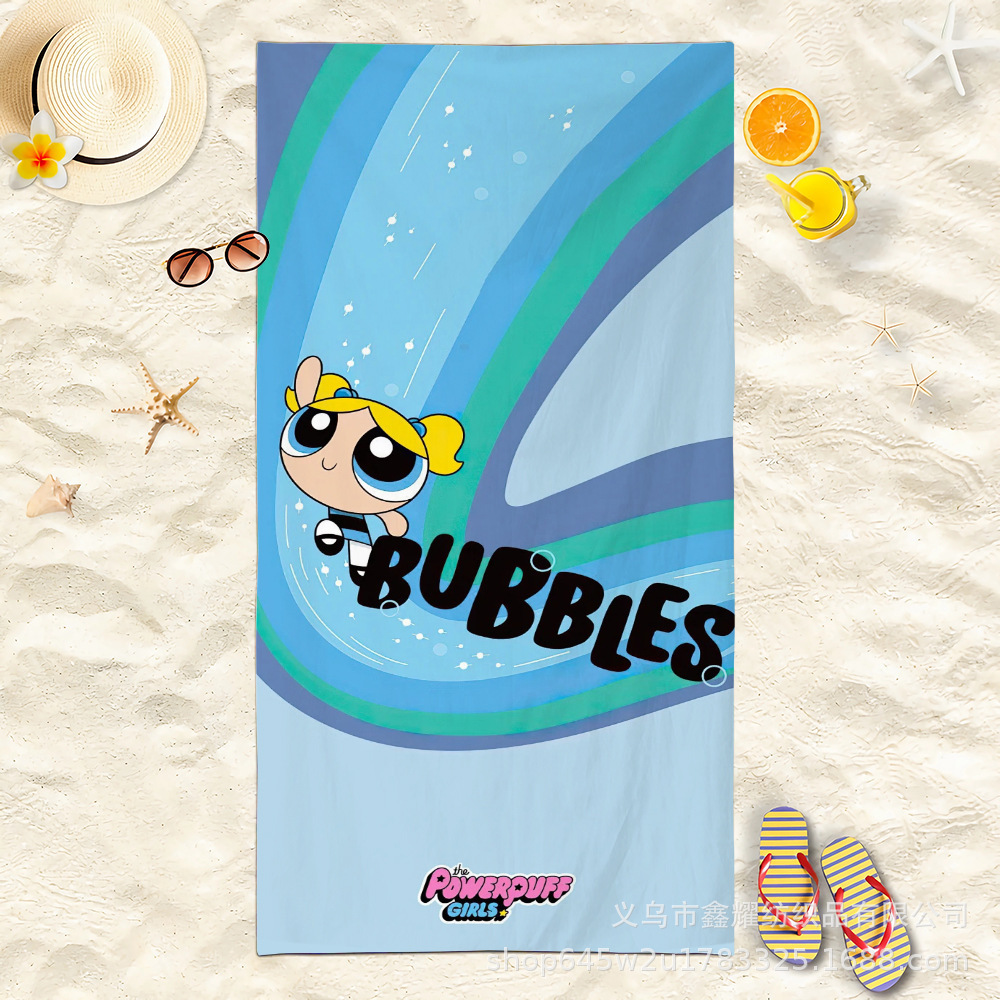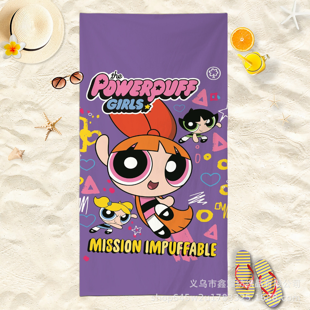 双面毛圈卡通飞天小女警超细纤维沙滩巾可爱浴室旅行海滩吸收毛巾