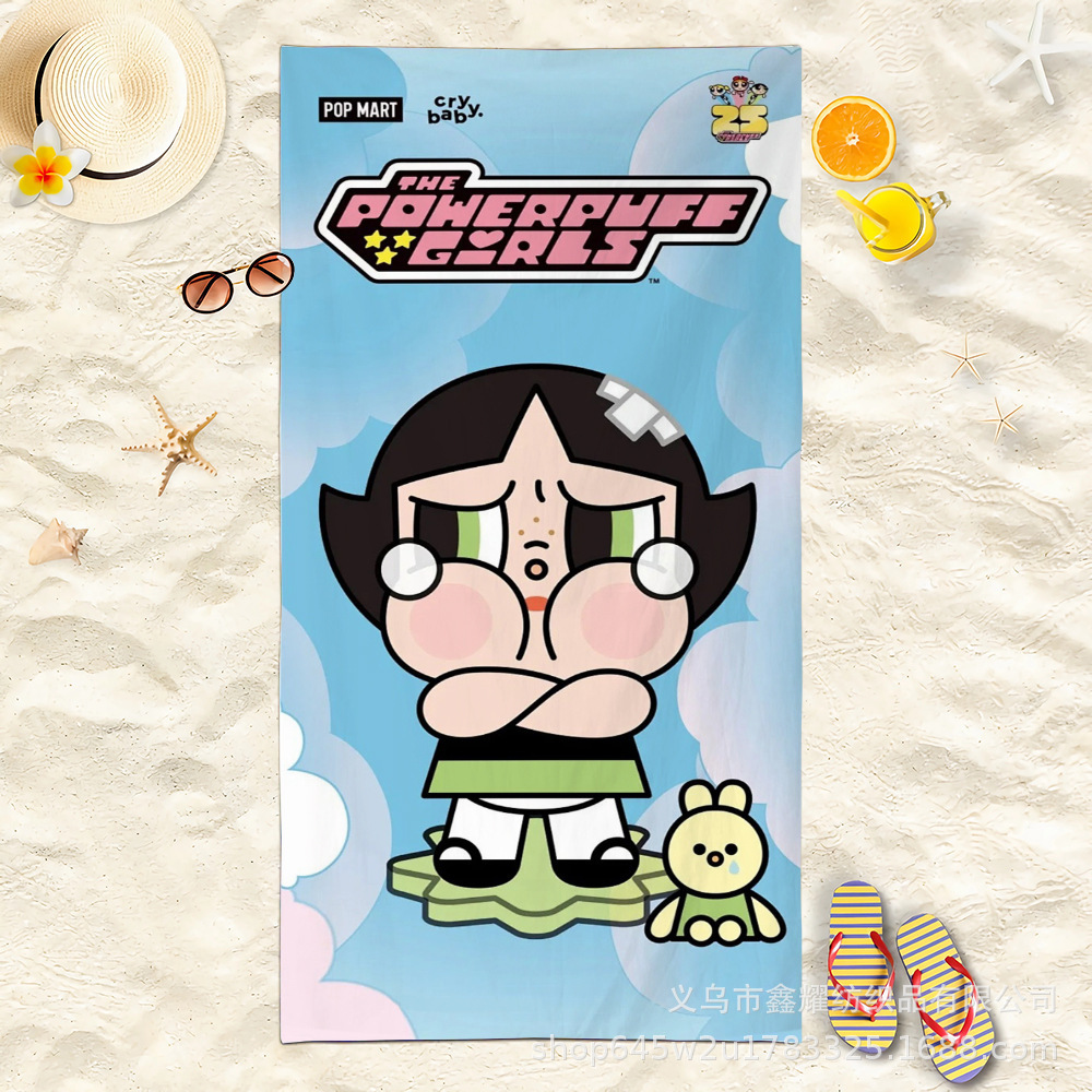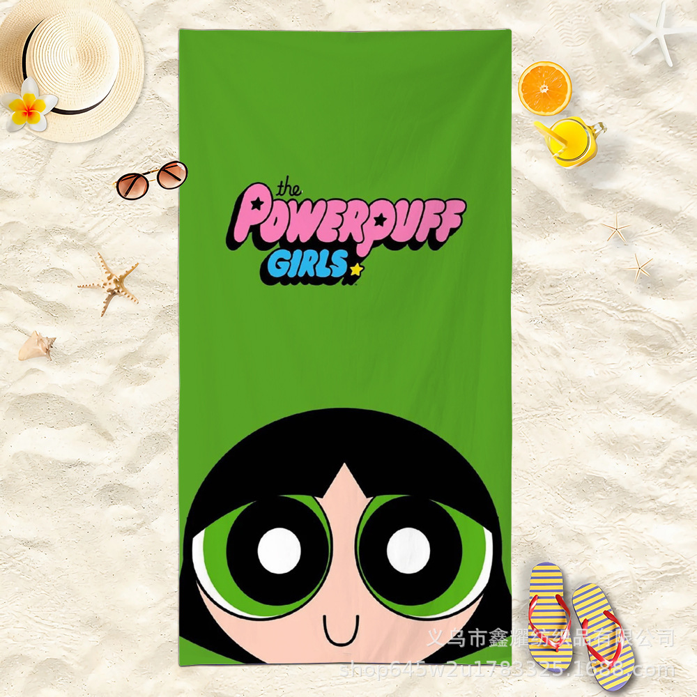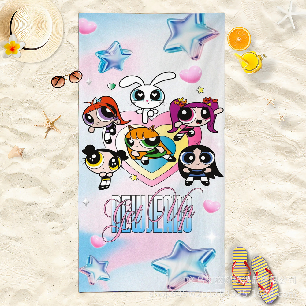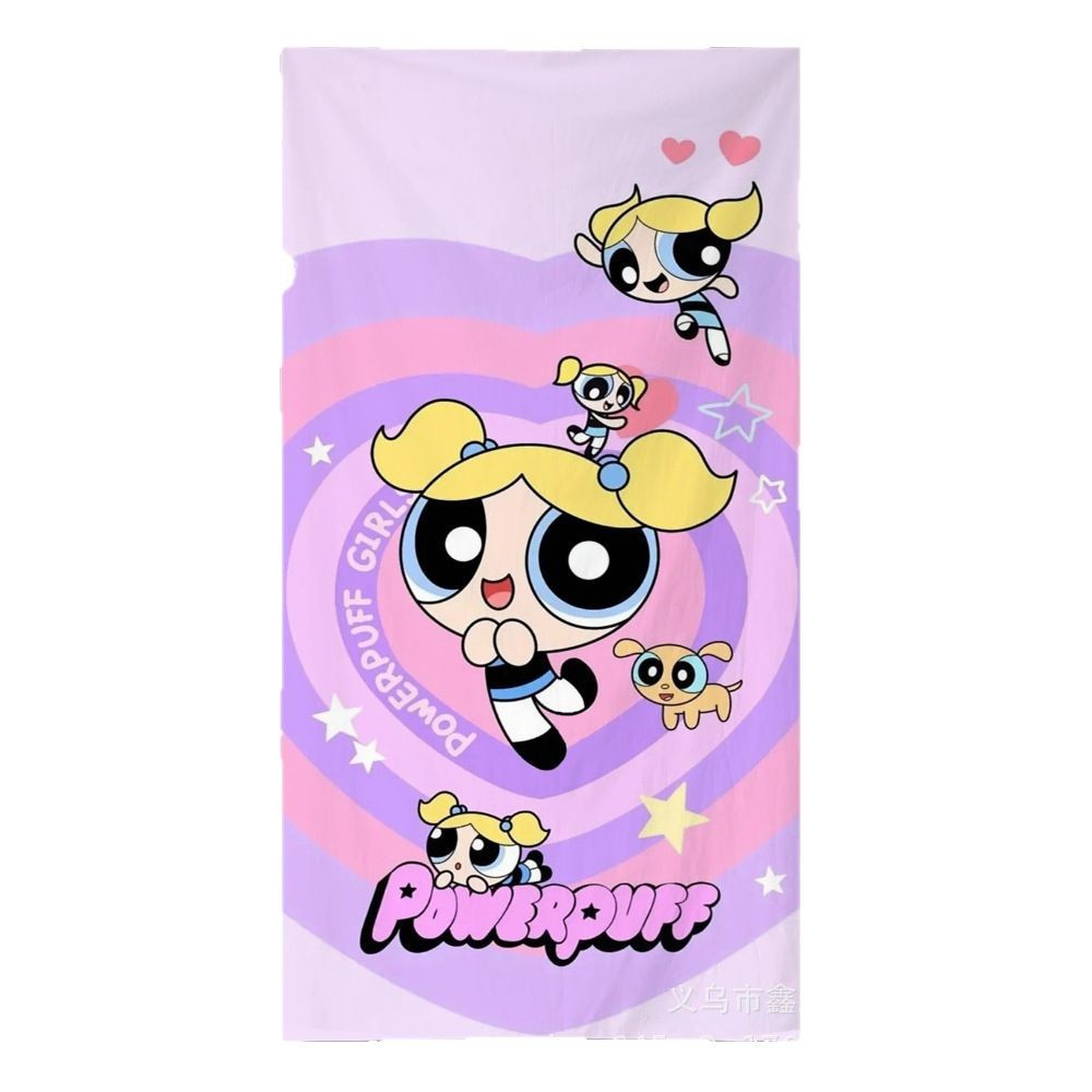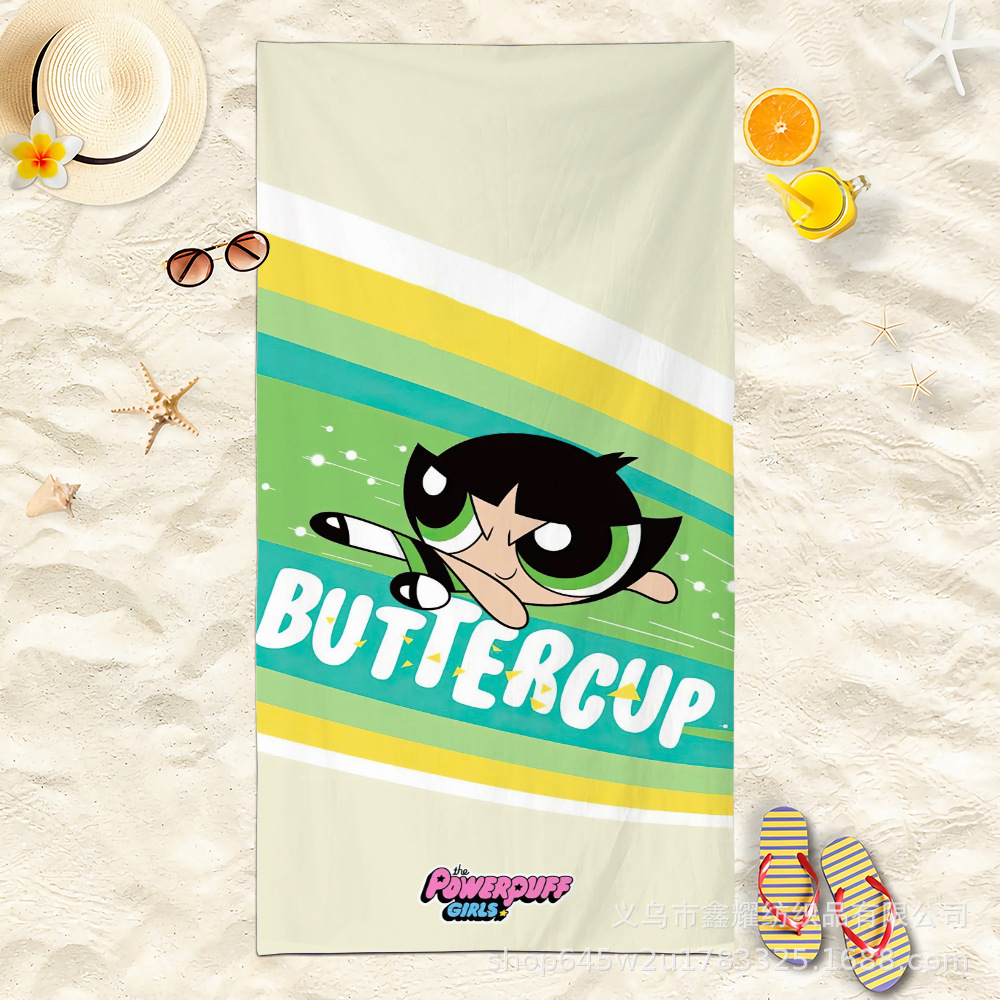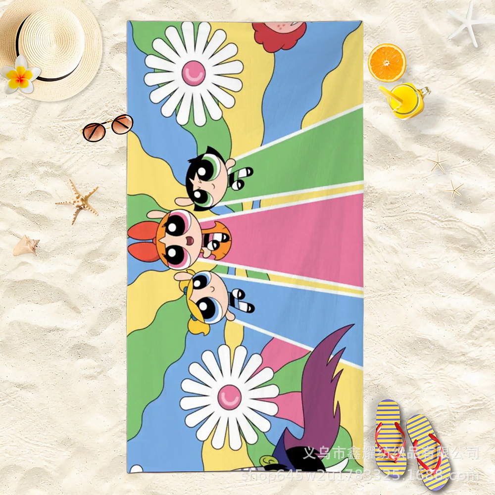 双面毛圈卡通飞天小女警超细纤维沙滩巾可爱浴室旅行海滩吸收毛巾