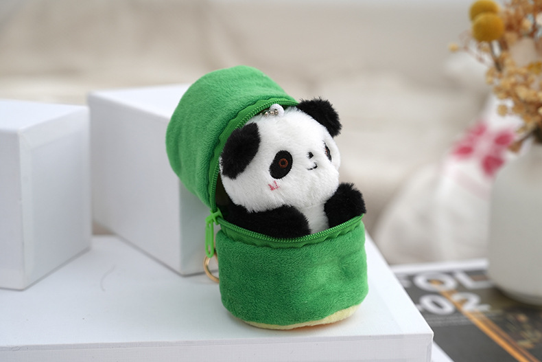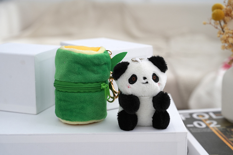 网红软萌竹筒熊猫挂饰创意动物书包钥匙扣抓机娃娃毛绒玩偶批发