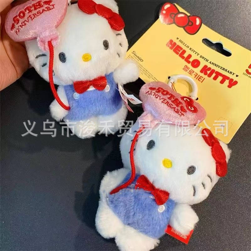 新款hellokitty50周年三三限定挂件玩偶公仔书包挂饰钥匙扣礼物