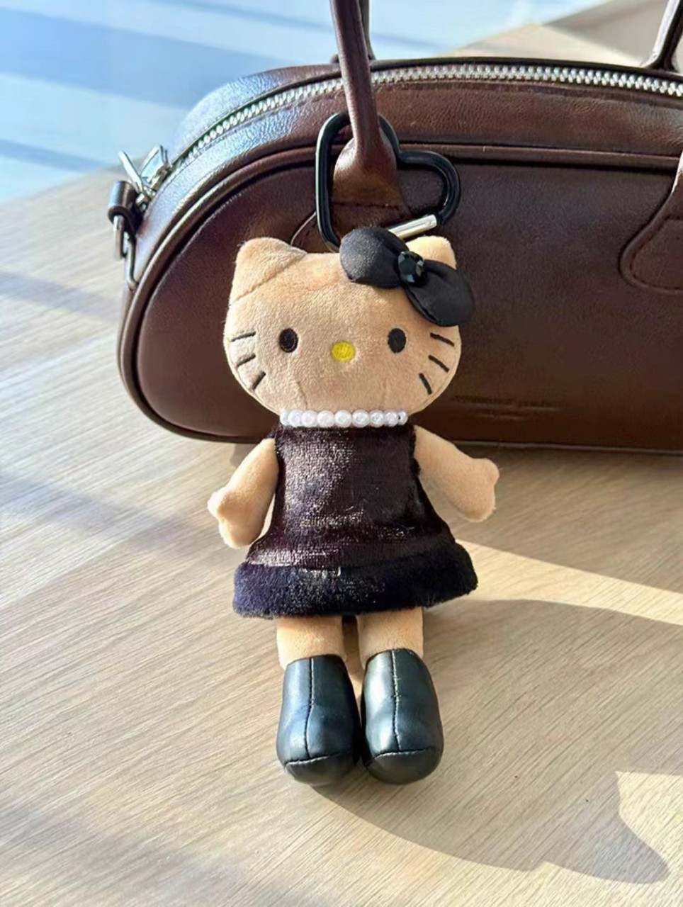4寸日系新款长腿黑色裙小猫毛绒玩具系列钥匙扣包包挂件