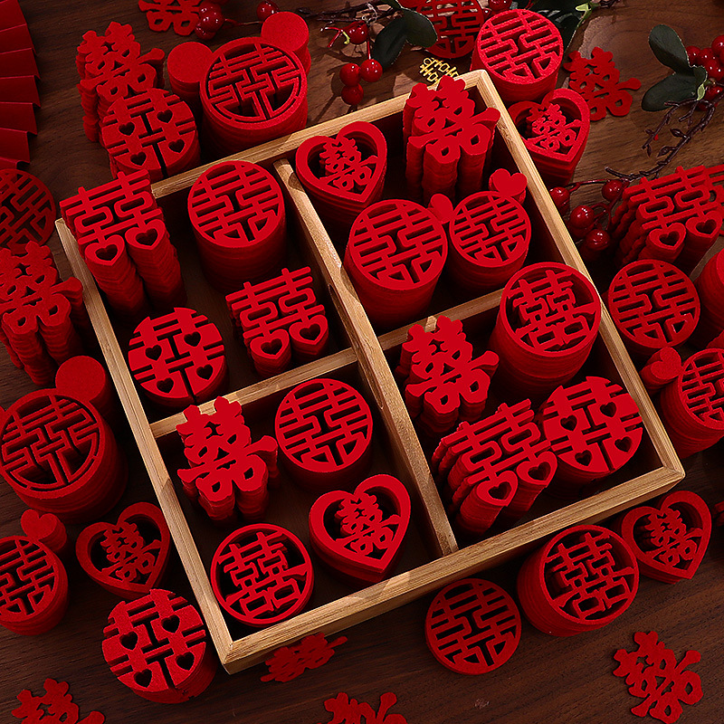 结婚装饰无纺布迷你小喜字果盘喜字婚房抛洒楼梯喜创意喜字