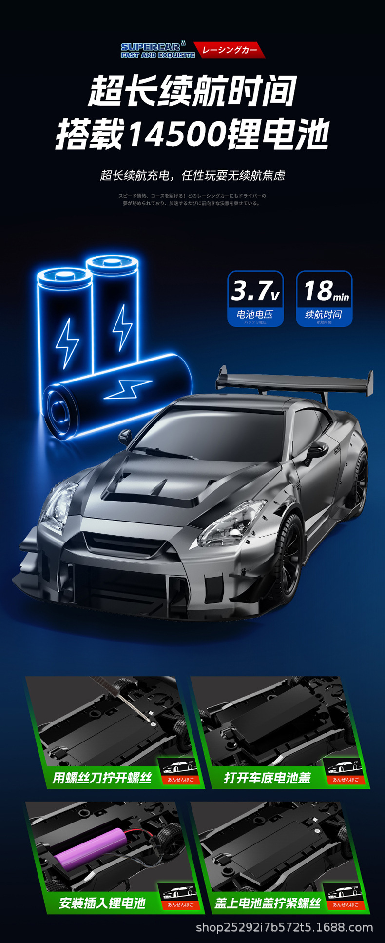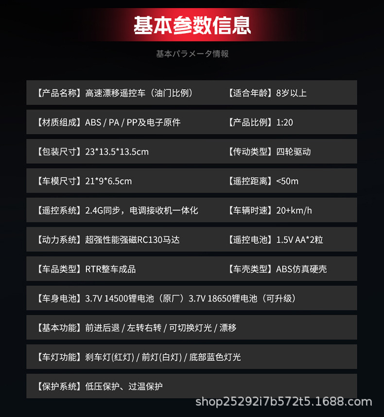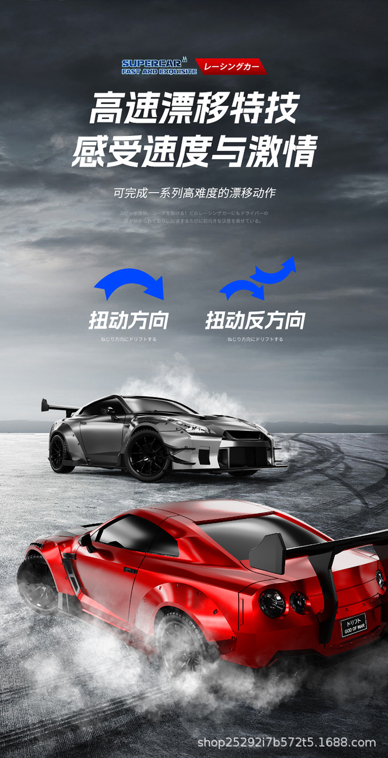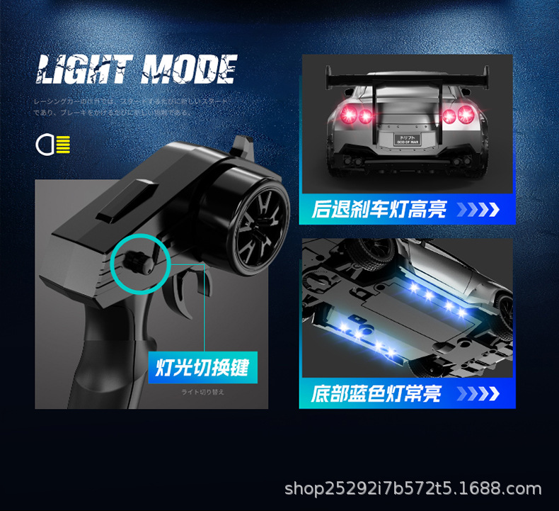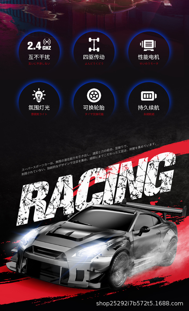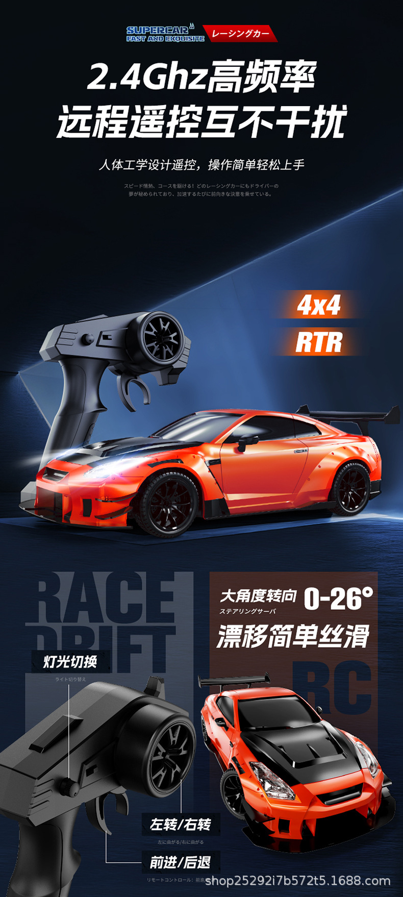 跨境1:20RC遥控车四驱漂移赛车带灯光男孩玩具批发电动越野车