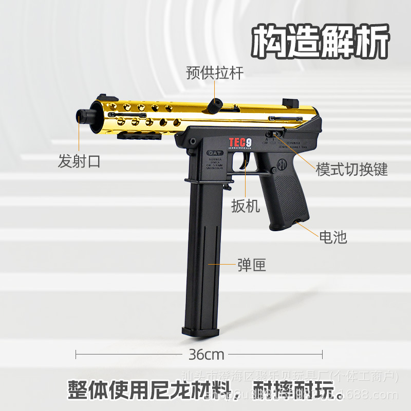 贝利格TEC-9超高速尼龙软弹电动对战男孩儿童水晶冲锋玩具枪模型