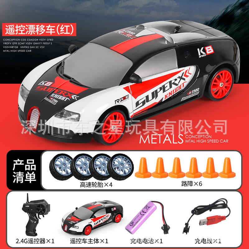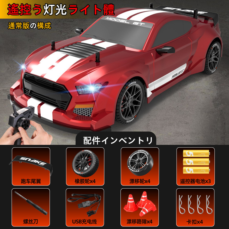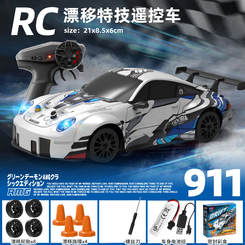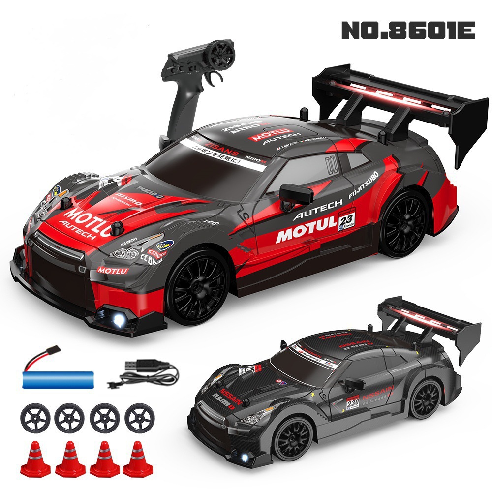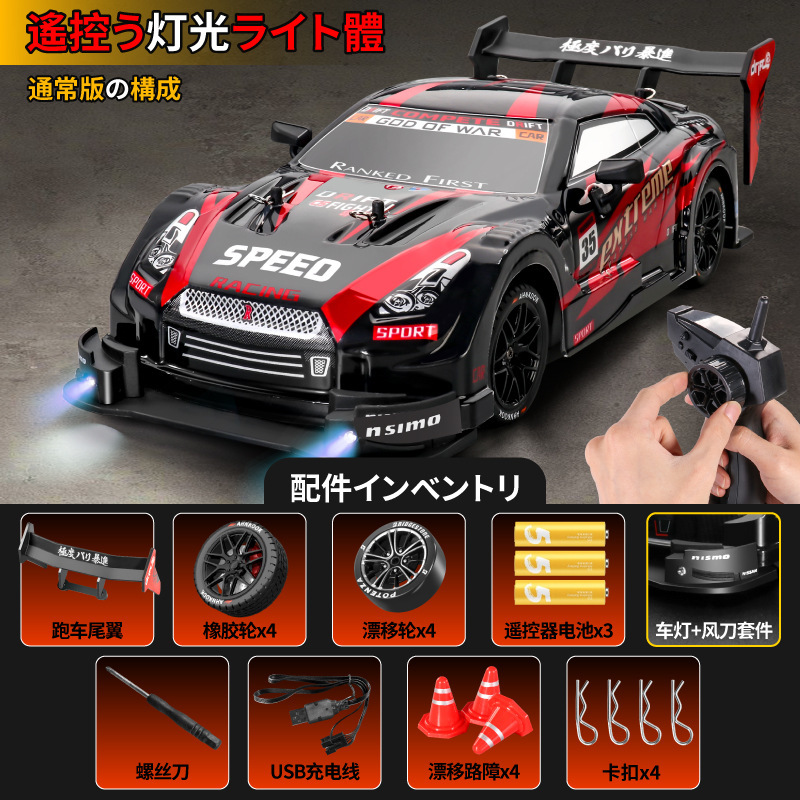 跨境爆款1:16高速甩尾漂移四驱遥控赛车可充电带灯光无极变速GTR