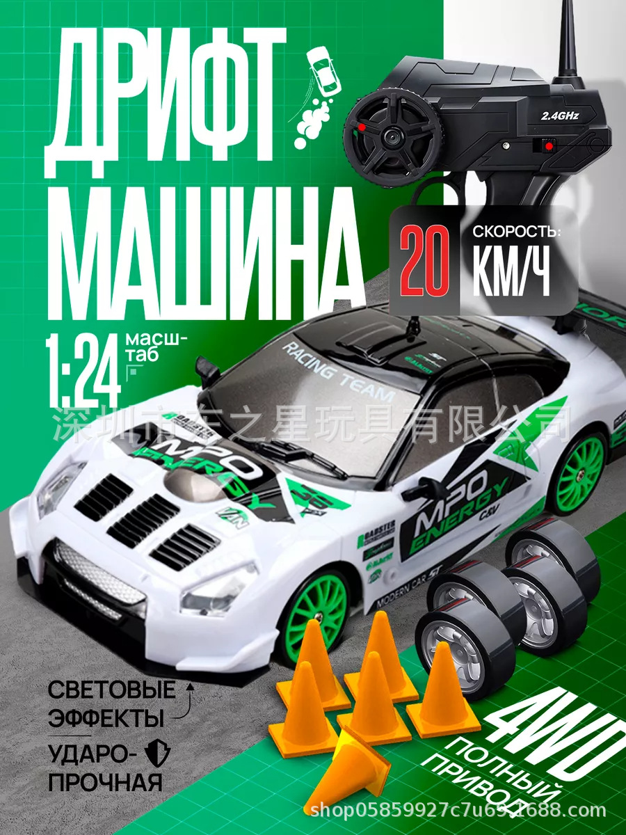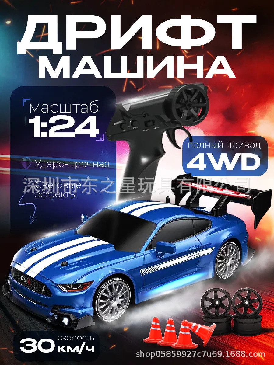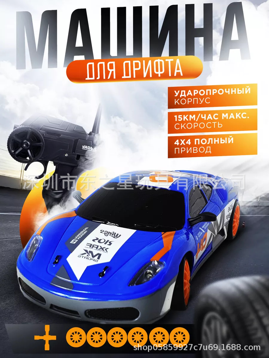 跨境爆款1:16高速甩尾漂移四驱遥控赛车可充电带灯光无极变速GTR