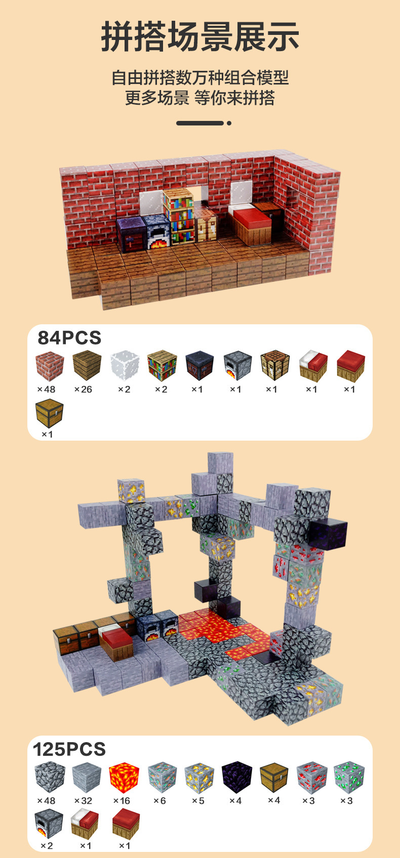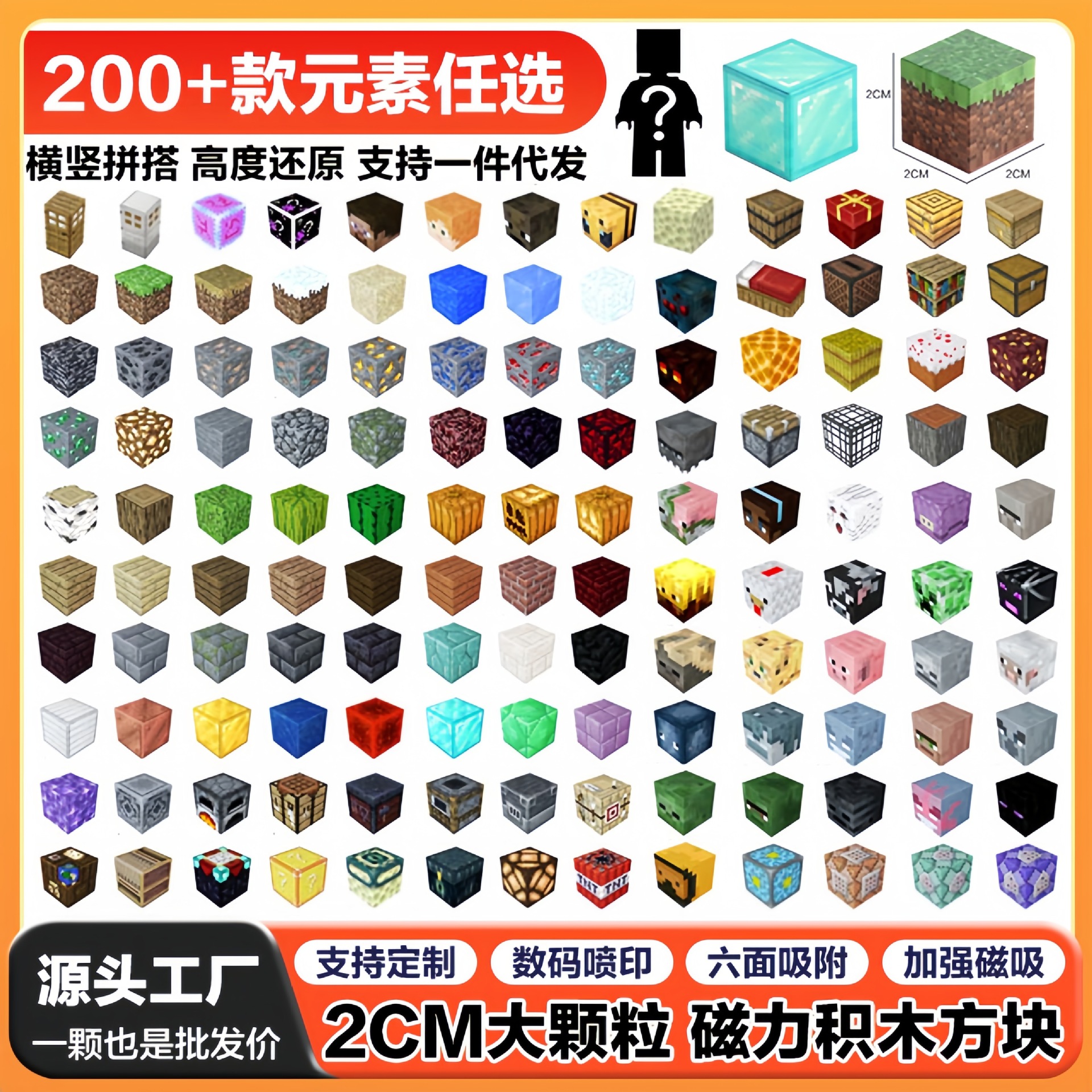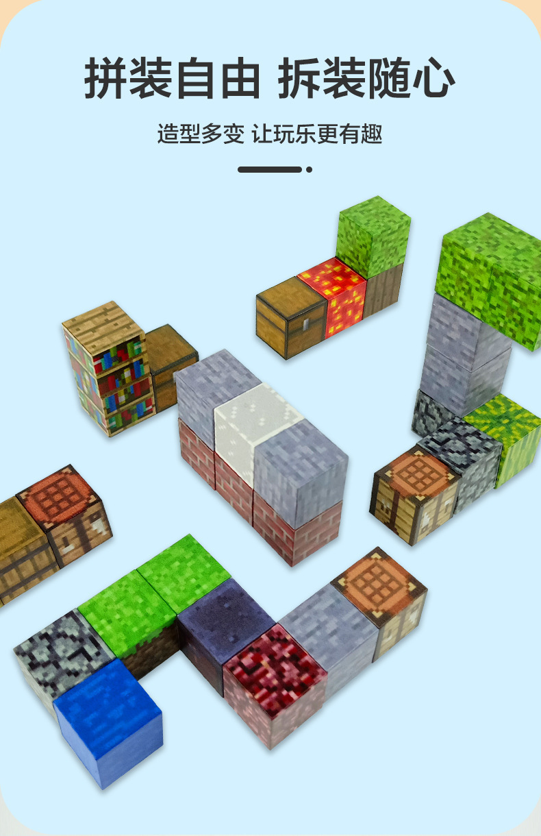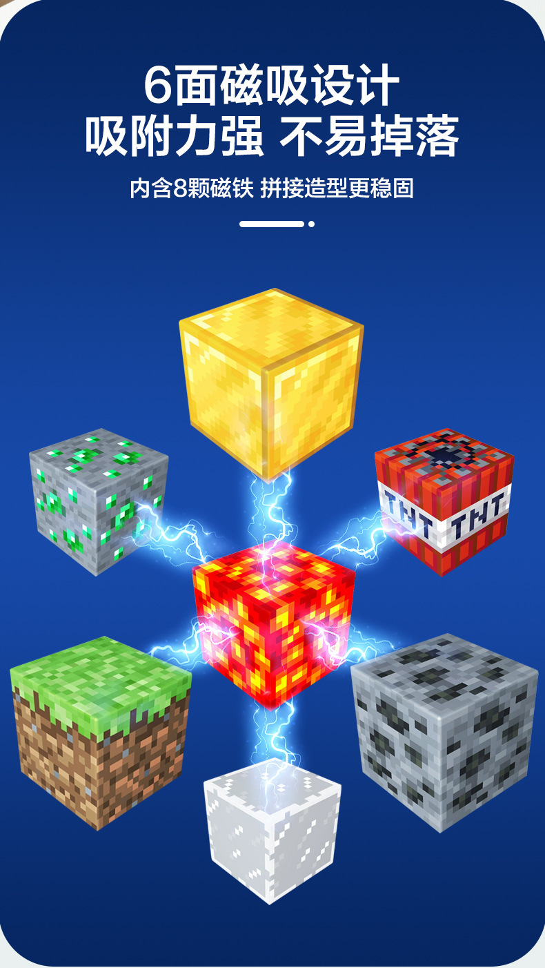 我的世界积木跨境新款MC磁铁吸铁石0儿童益智拼装玩具DIY磁力方块