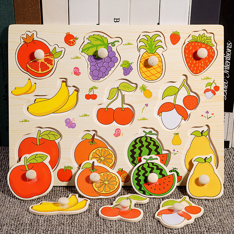 厂家直销宝宝幼儿童立体拼图木制早教智力拼板益智玩具木钉手抓板