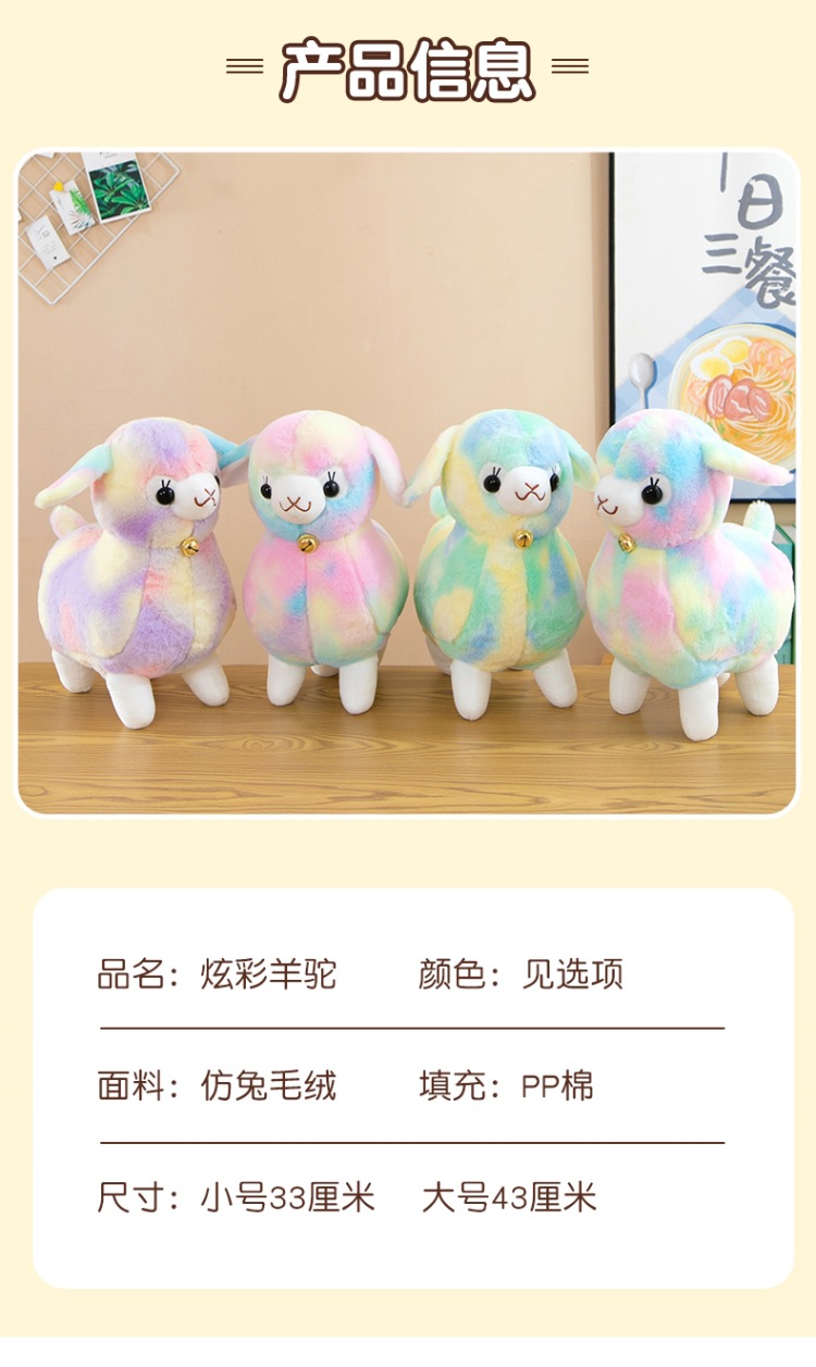 新款炫彩小羊公仔外贸羊驼毛绒玩偶儿童生日礼物抓娃娃机玩具礼品