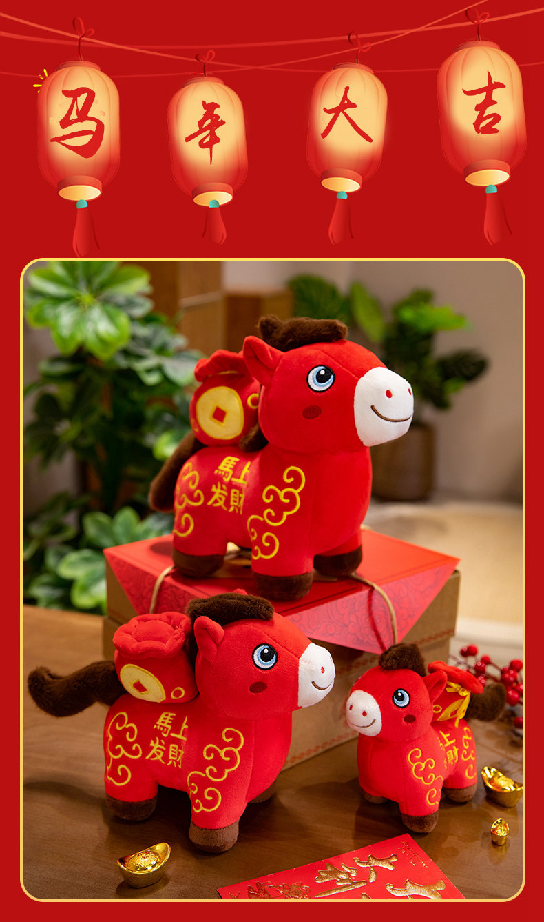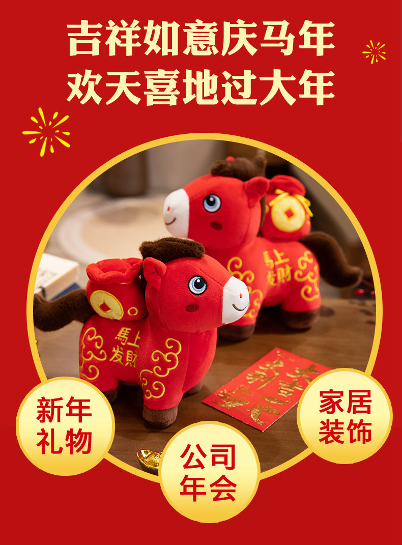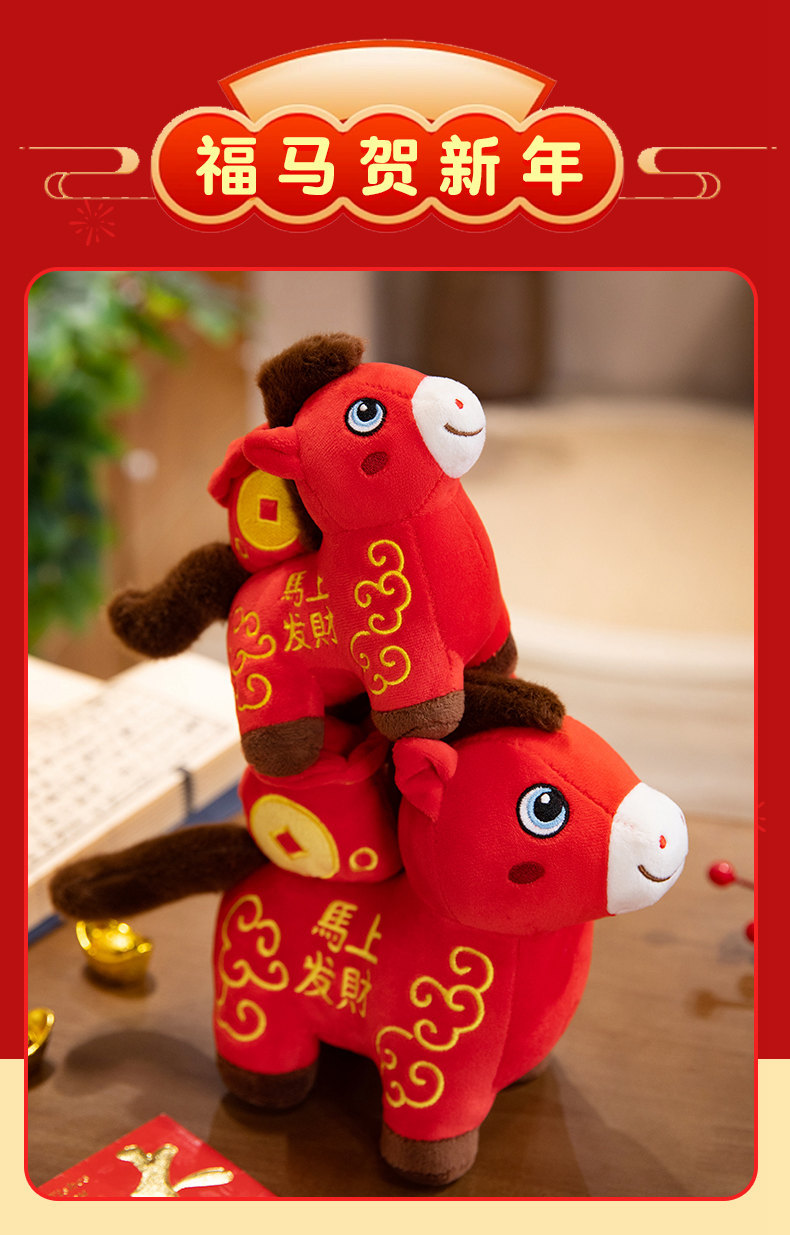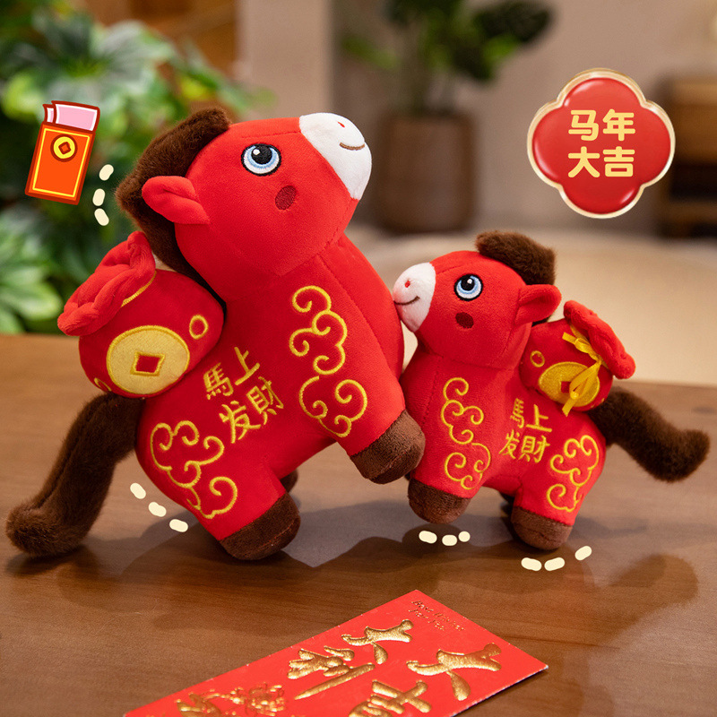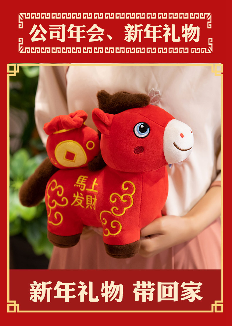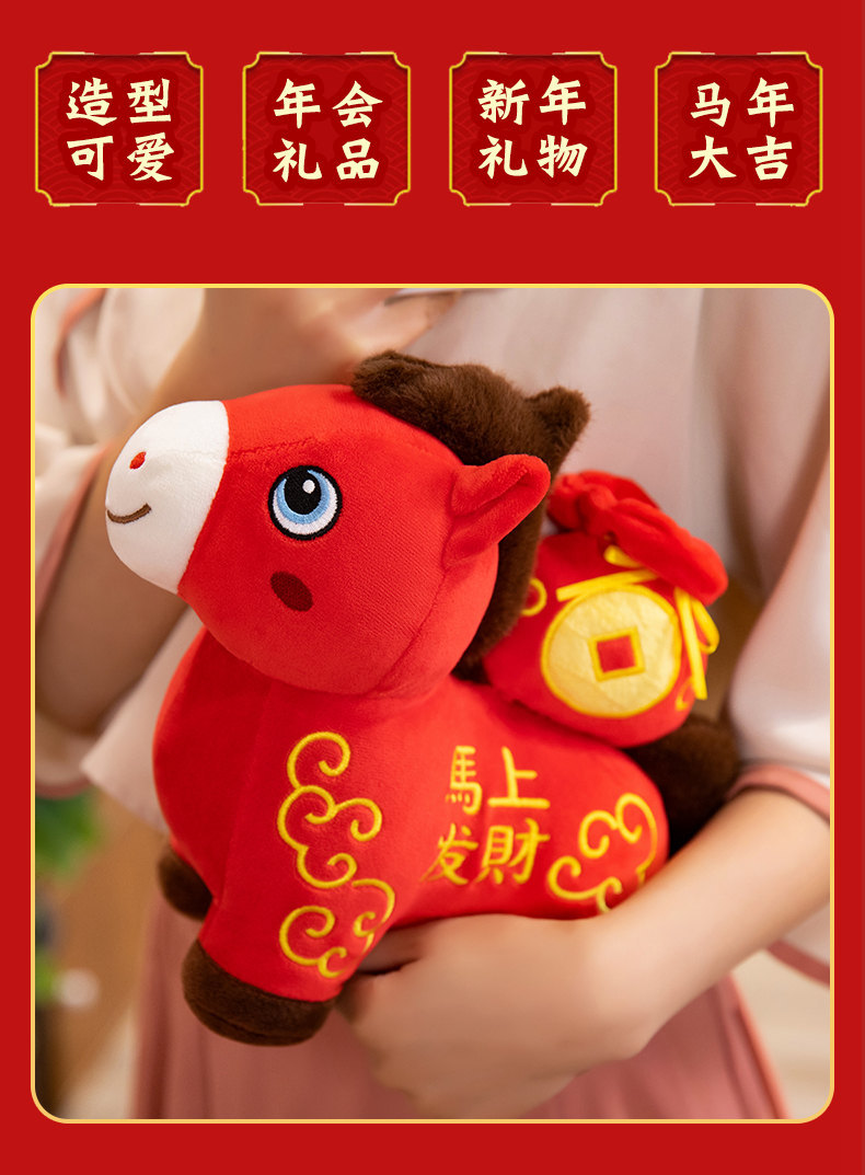 马上发财福袋马毛绒公仔马年吉祥物刺绣小马玩偶玩具生肖马娃娃