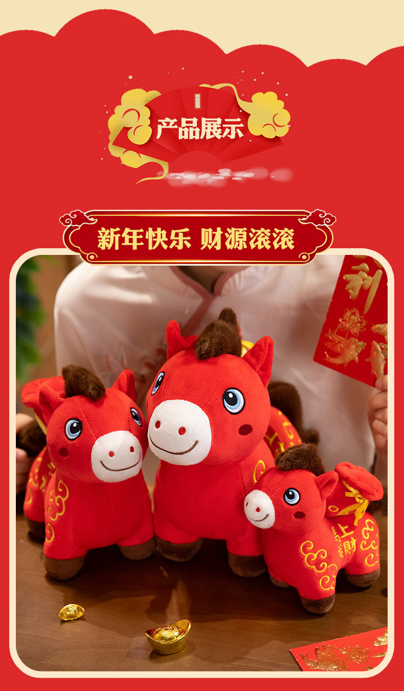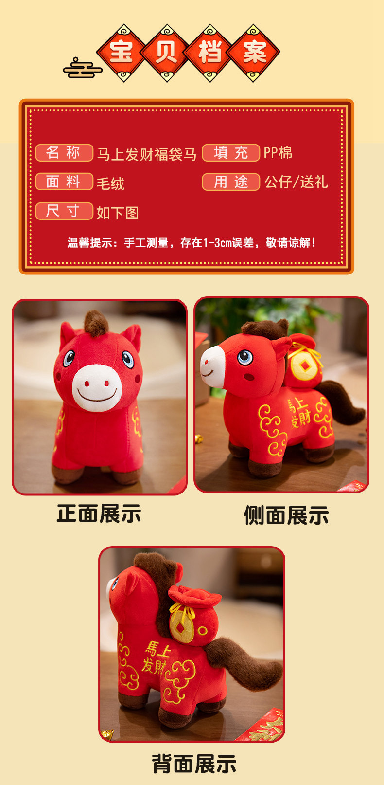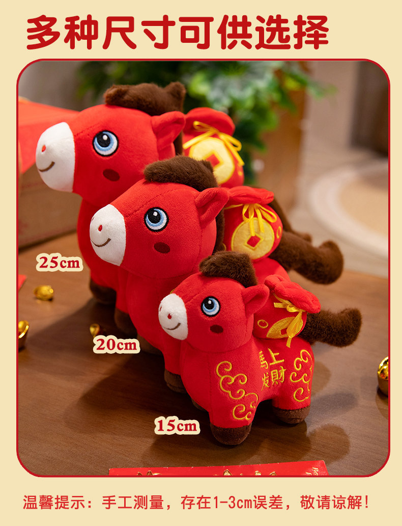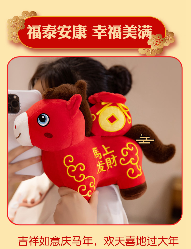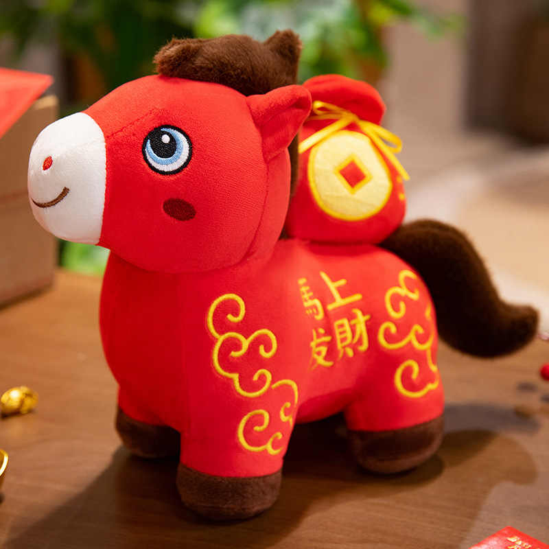 马上发财福袋马毛绒公仔马年吉祥物刺绣小马玩偶玩具生肖马娃娃