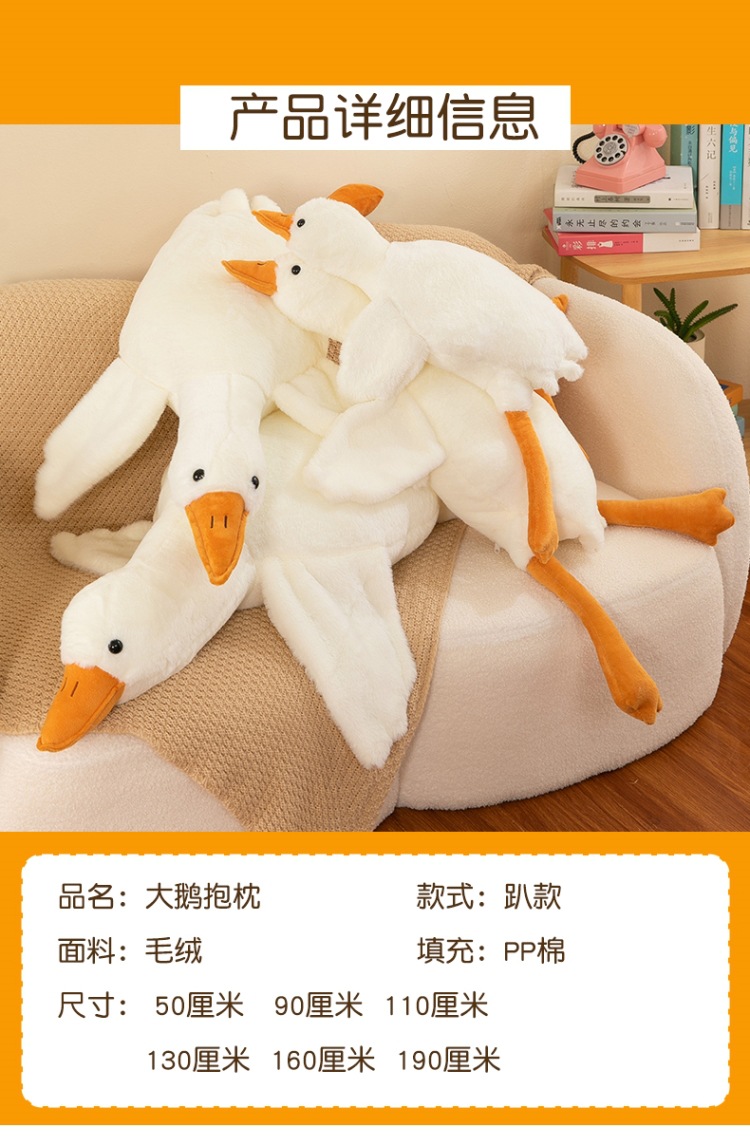 大白鹅抱枕毛绒玩具可爱趴款大鹅靠枕女生陪睡玩偶娃娃机公仔兑换