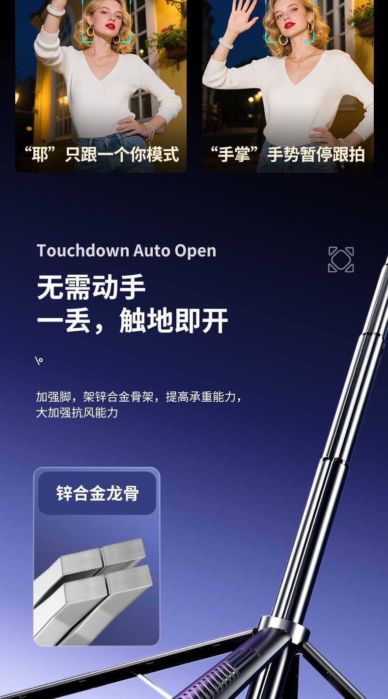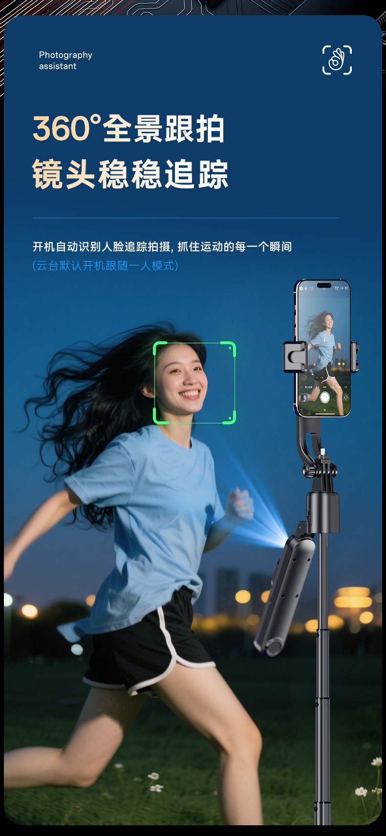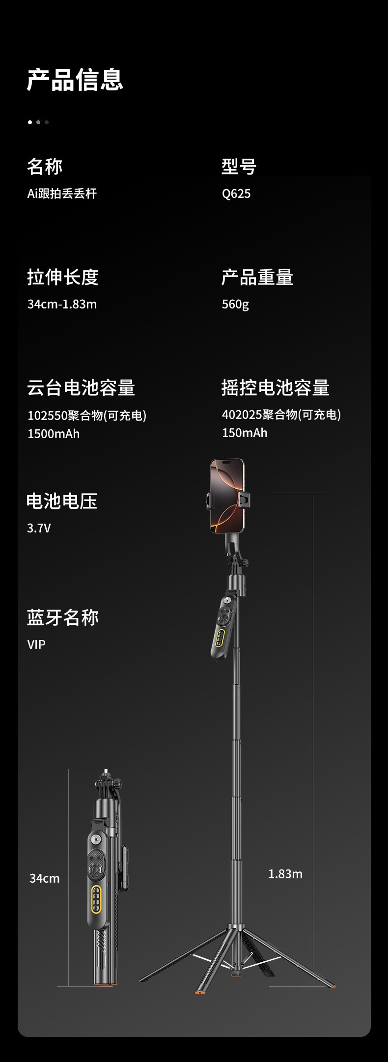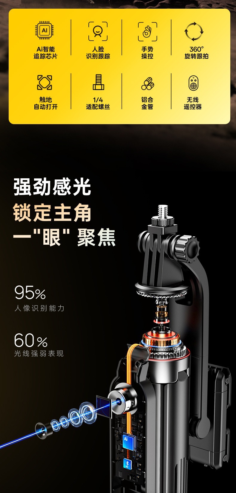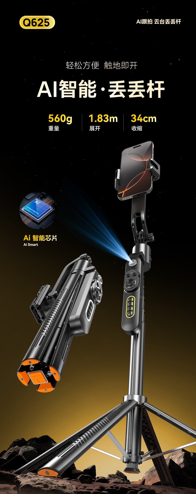 Q575人脸追踪AI丢丢杆底部自动弹开全自动跟拍神器防抖手机四脚架
