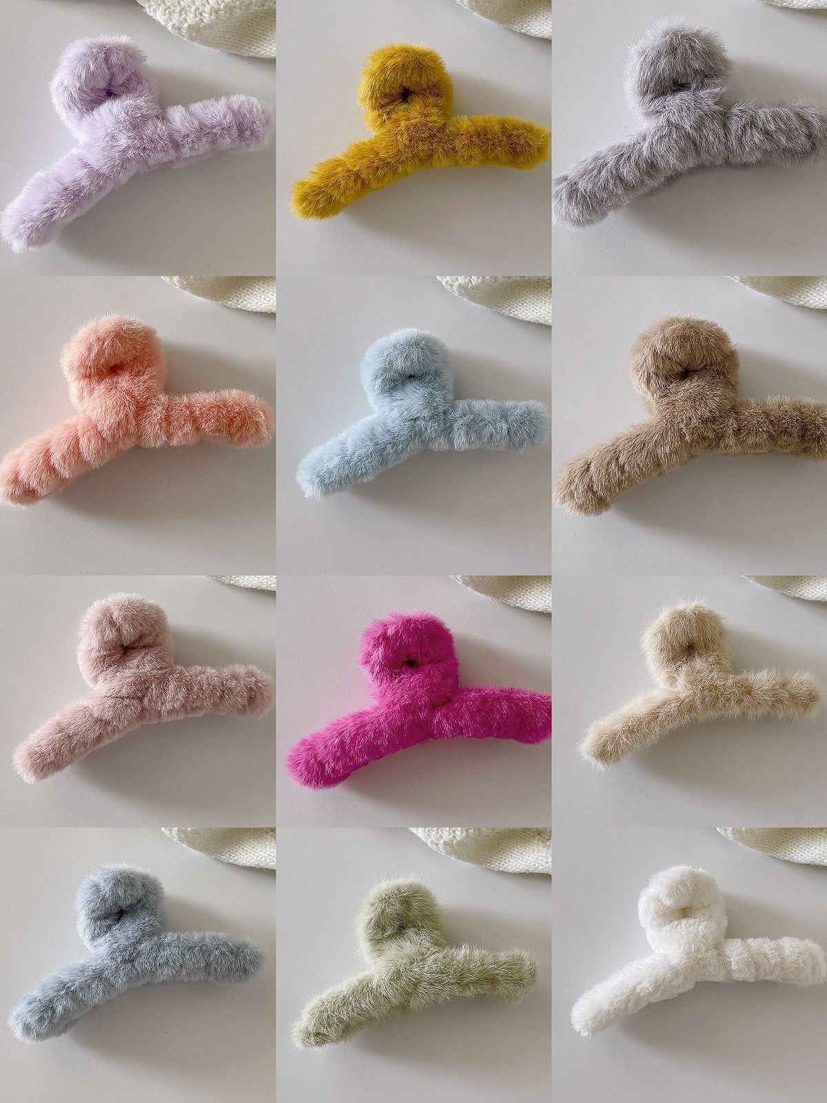仿兔毛毛绒抓夹韩国秋冬毛毛发夹后脑勺大号鲨鱼夹发饰批发头饰