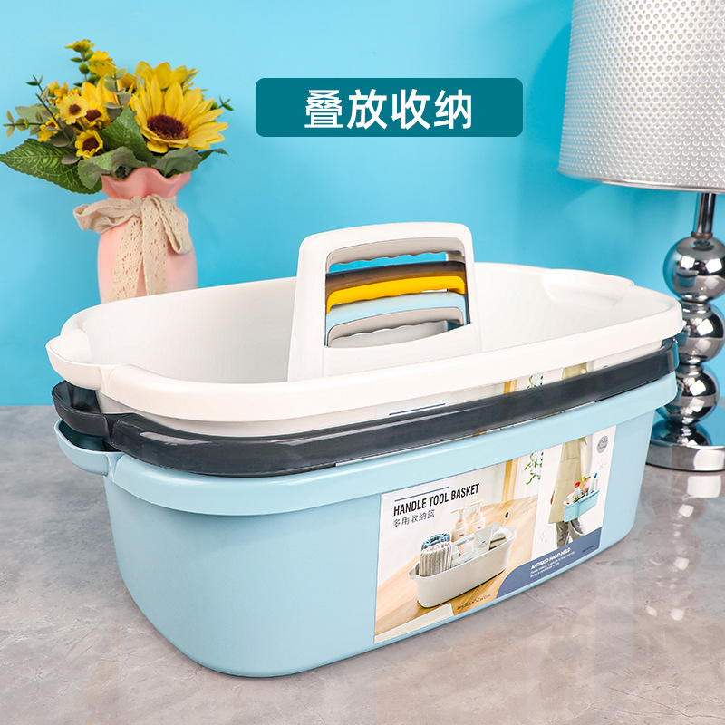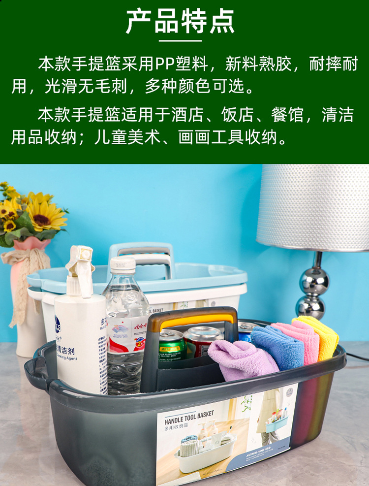 优买彩色塑料手提篮酒店餐厅客房保洁工具储物篮饭店保洁杂物篮子