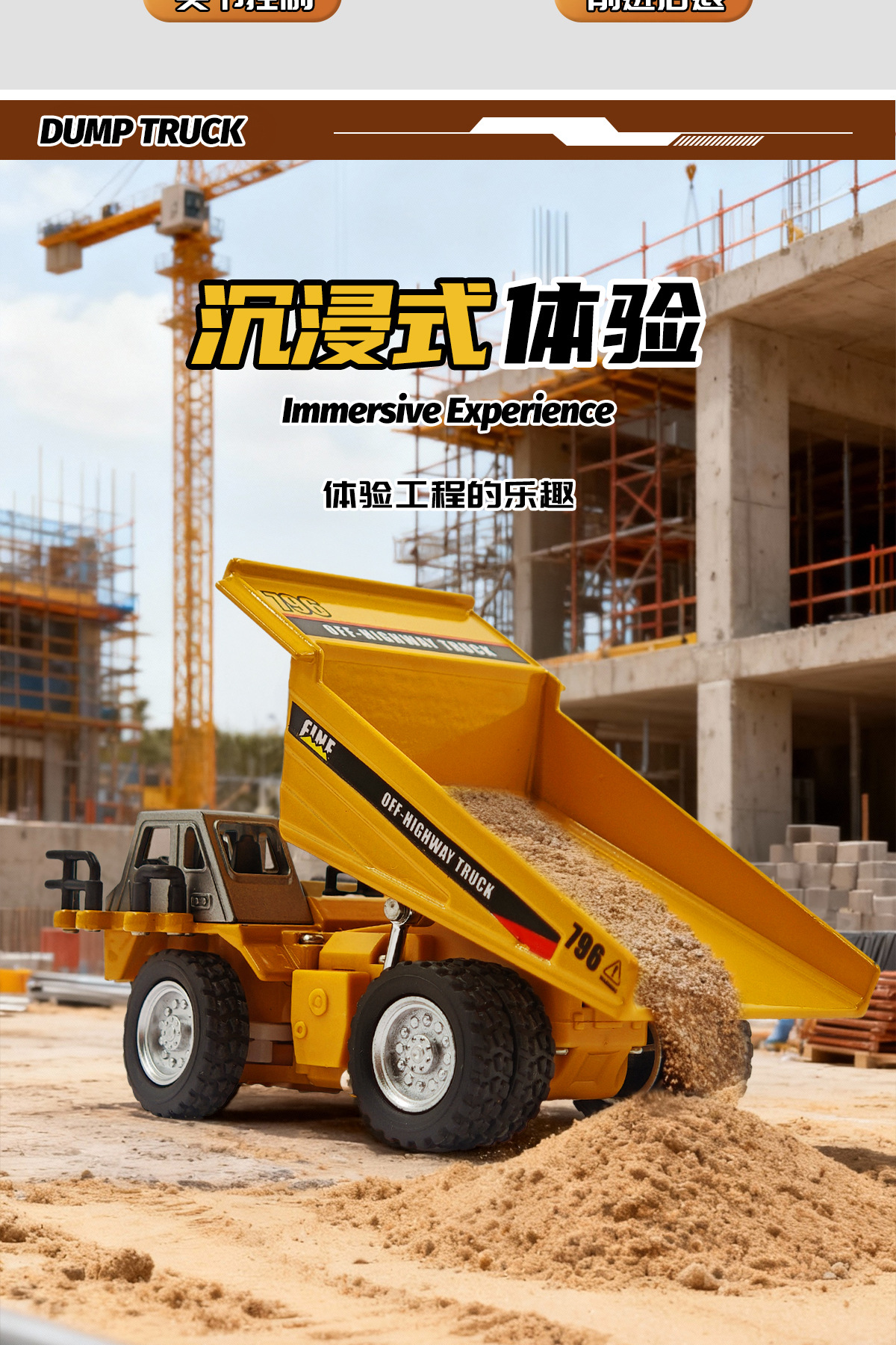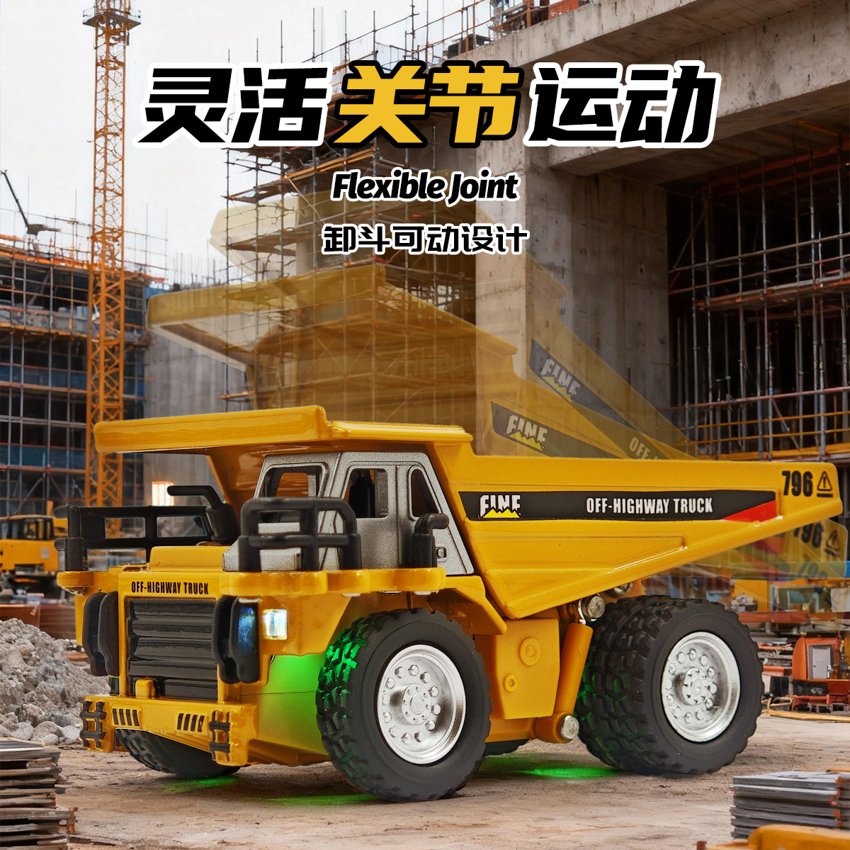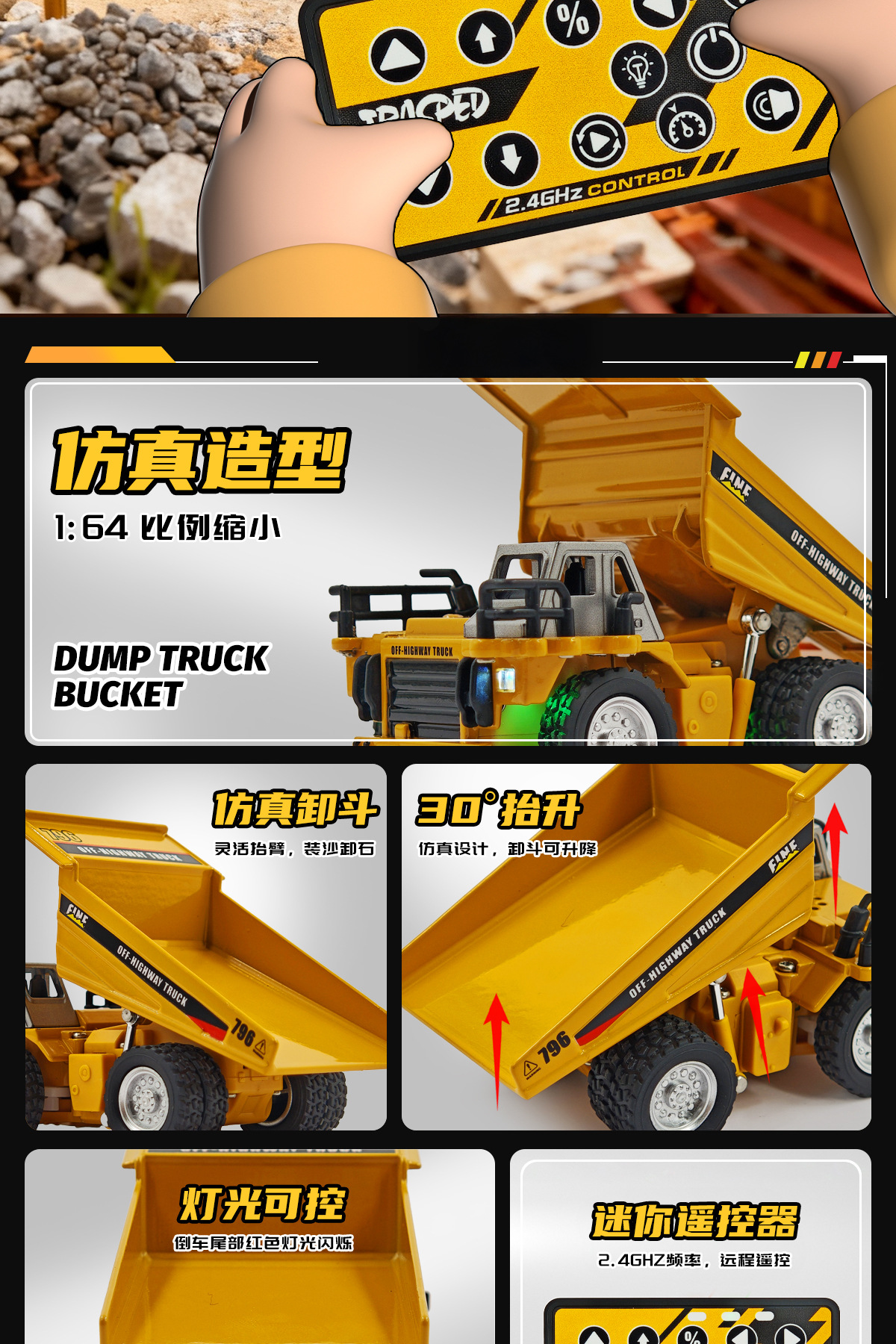 恒冠新品迷你遥控工程合金自卸车多功能跨境热销1:64灯光音效玩具