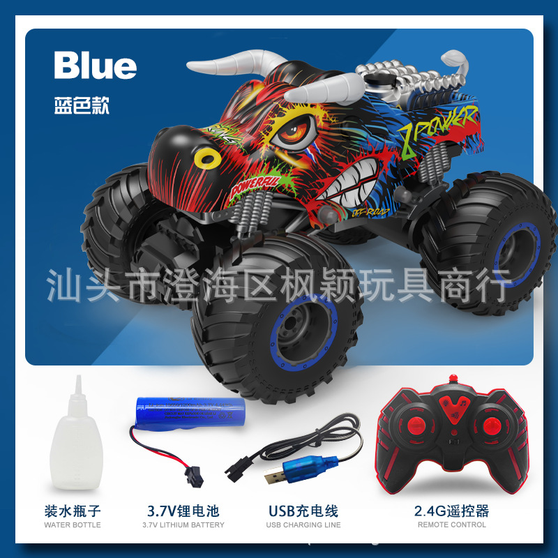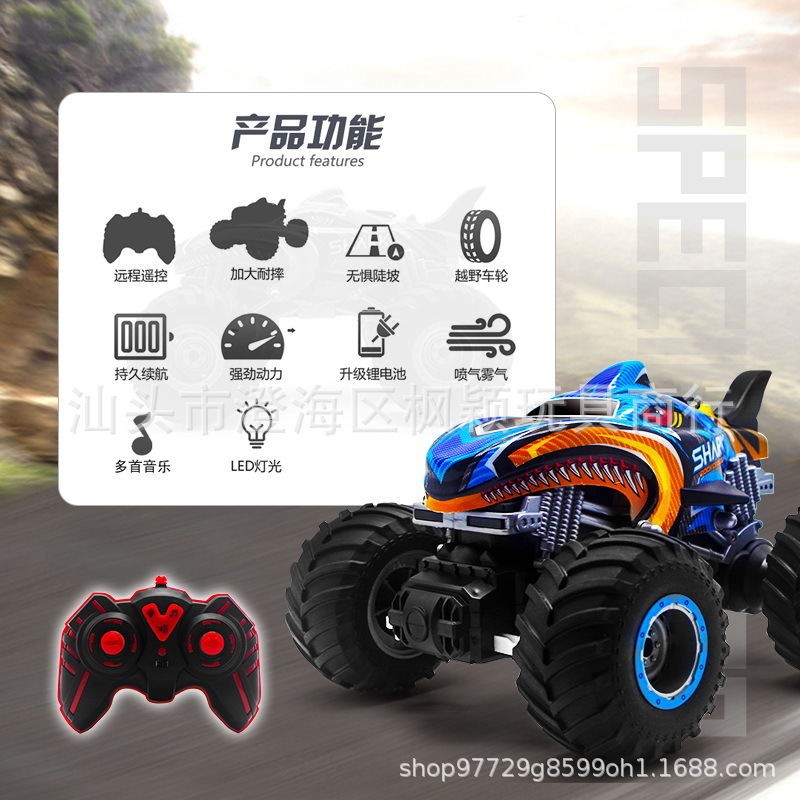 跨境遥控车充电遥控喷雾越野车灯光音乐玩具男孩大脚怪兽攀爬车