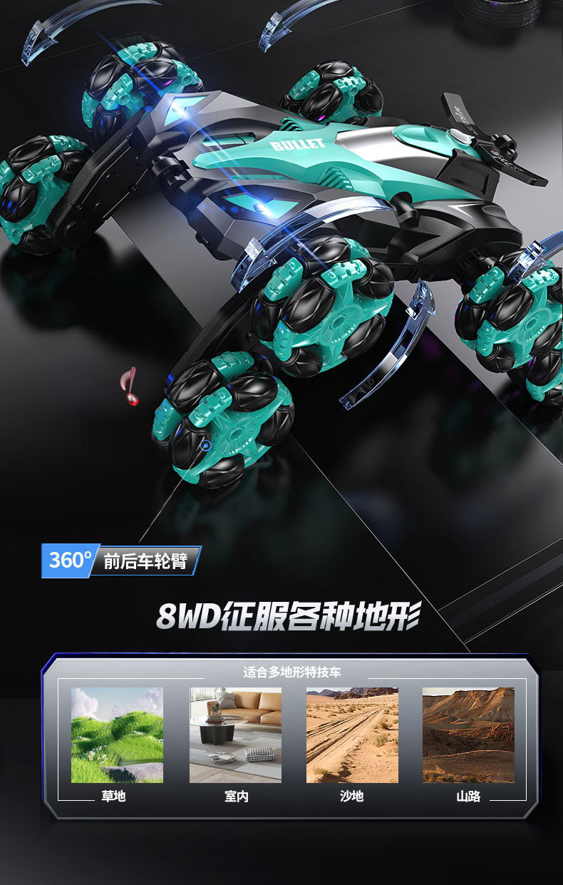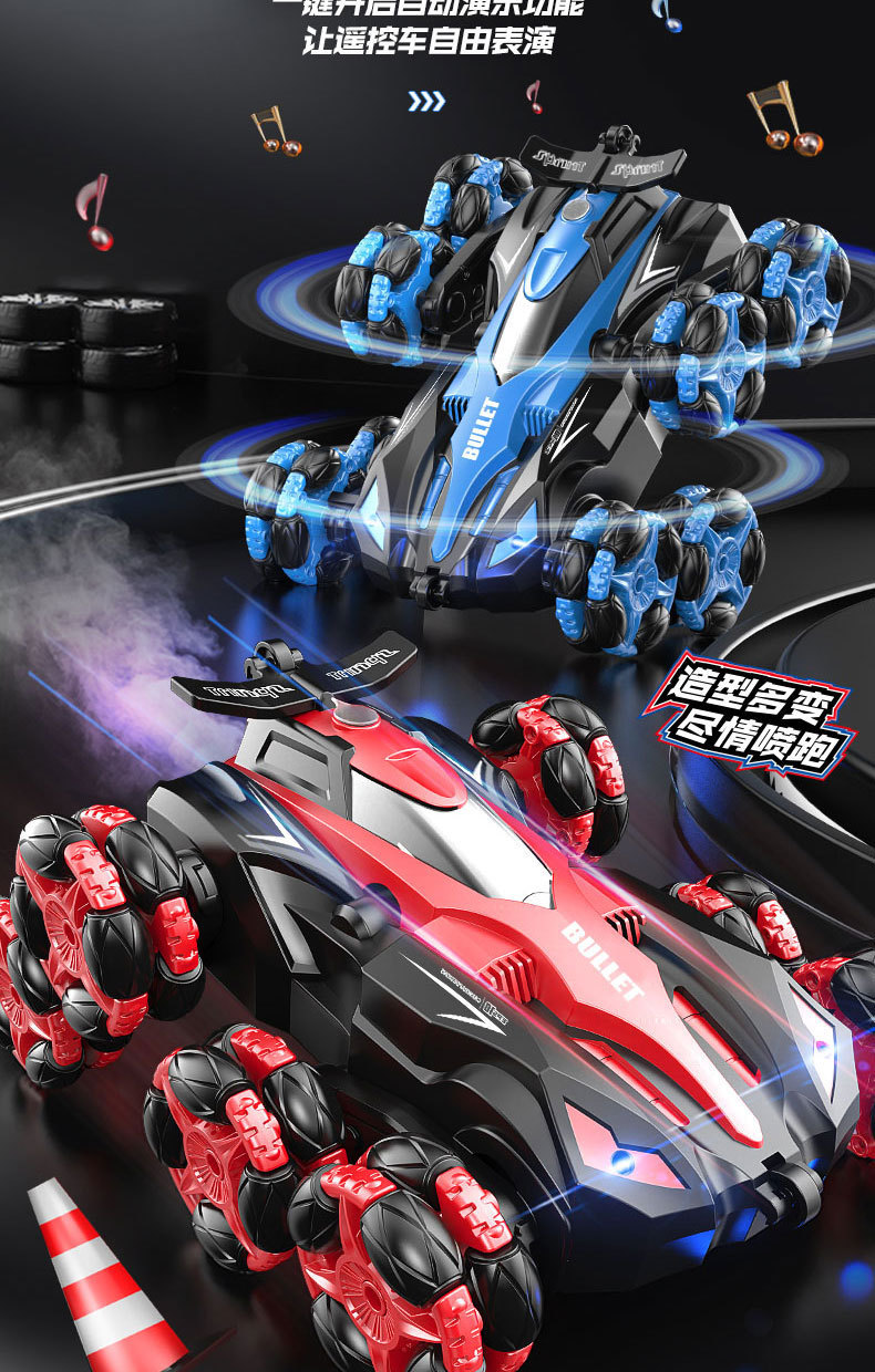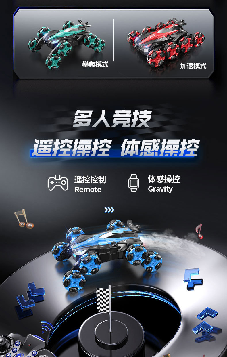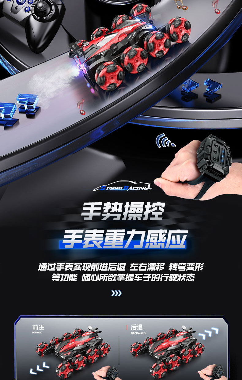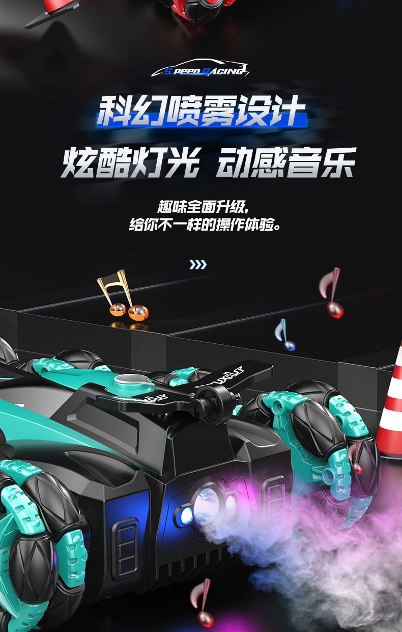 跨境八轮摆臂漂移特技手势感应遥控车音乐喷雾翻滚攀爬越野车玩具