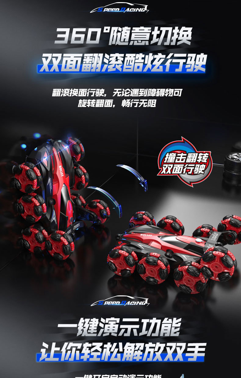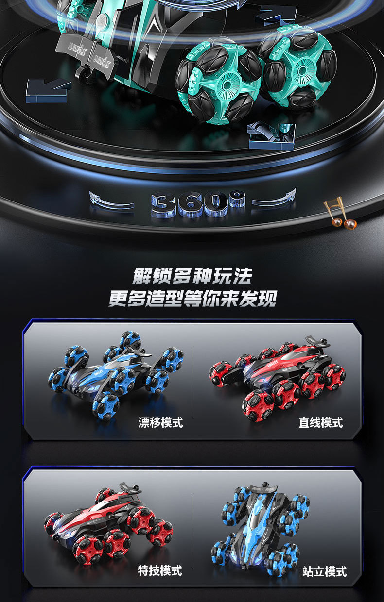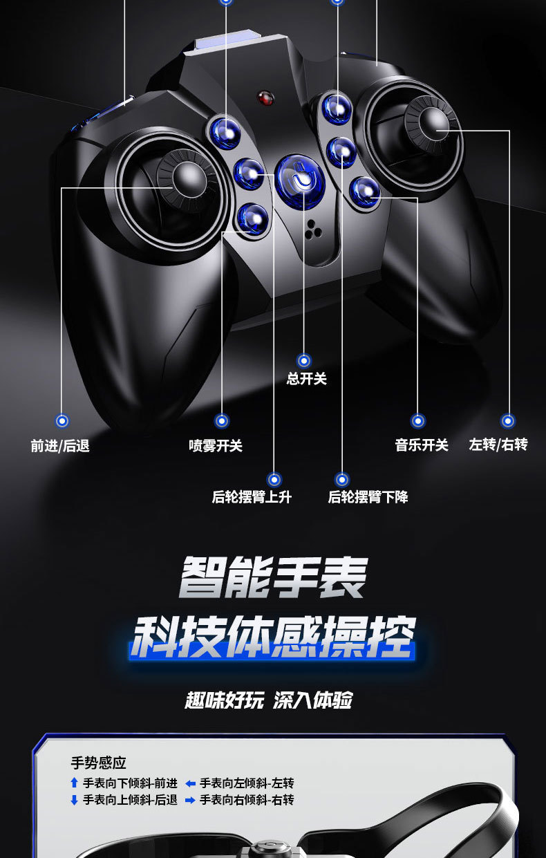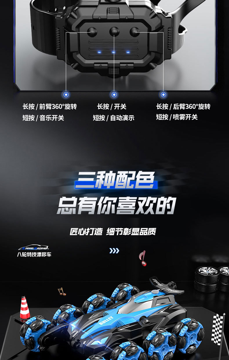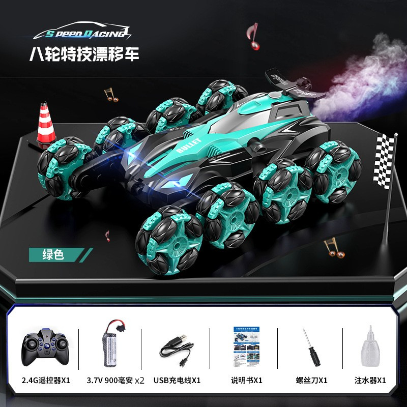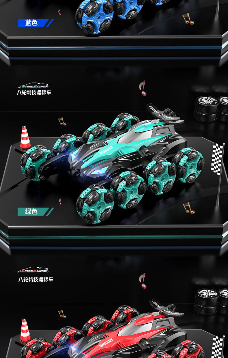 跨境八轮摆臂漂移特技手势感应遥控车音乐喷雾翻滚攀爬越野车玩具