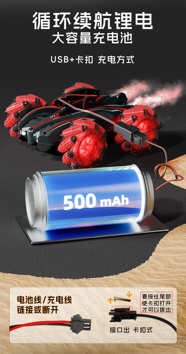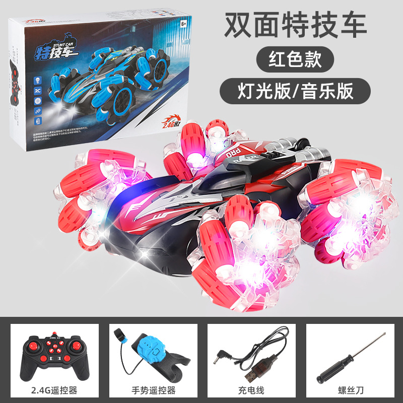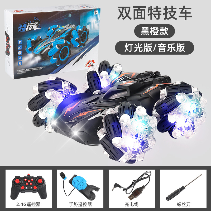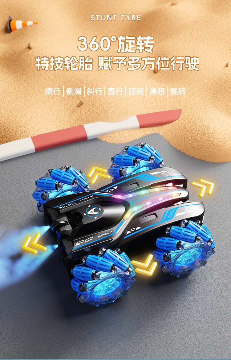 跨境灯光音乐双喷雾四驱特技遥控车手控感应儿童漂移特技高速玩具