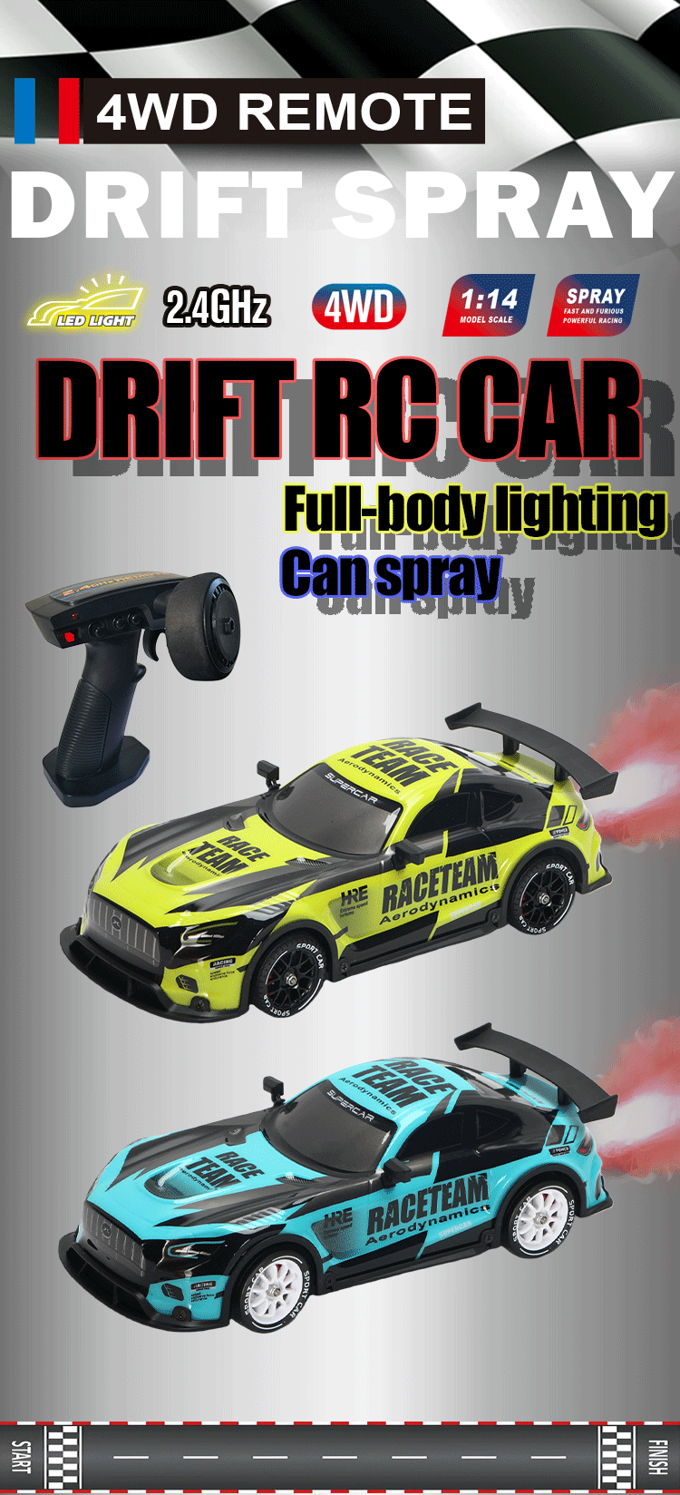 功能:灯光(三种灯光模式、左转、右转、前进、后退。喷雾,比例油门。单款两色混装