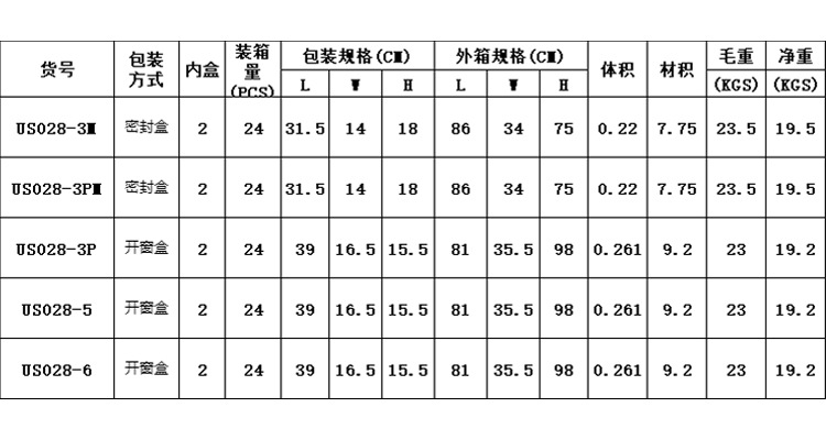 型号:US028-5/US028-6/US028-3P/US028-3PM/US028-3M