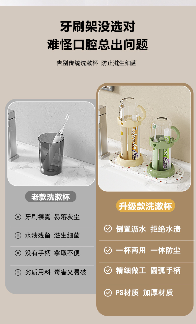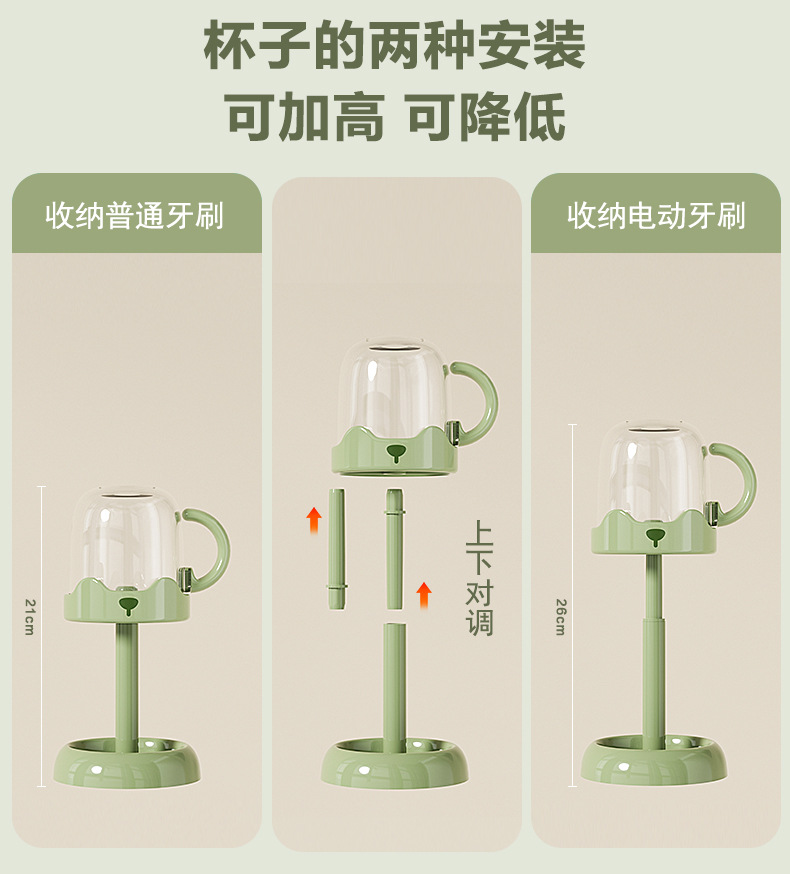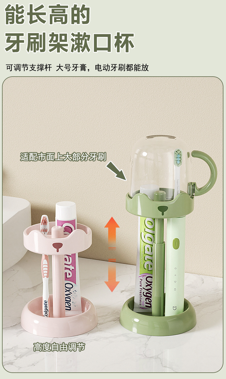 【原创】可调节电动牙刷杯架家用简约洗漱套装学生宿舍用品漱口杯