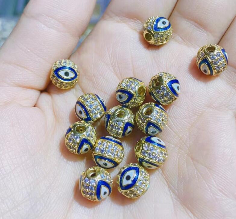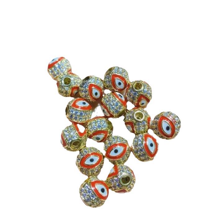 8 10mm微镶14k包金保色铜微镶锆石滴胶款之恶魔之眼圆球滴油珠子