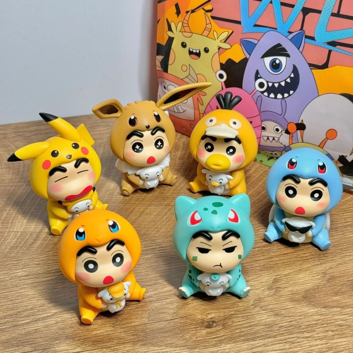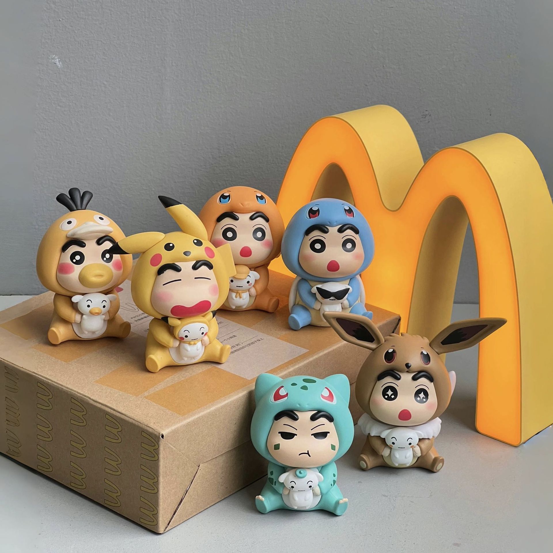 蜡笔小新cos皮卡丘变装盲盒卡通潮玩公仔桌面摆件扭蛋机盲盒手办