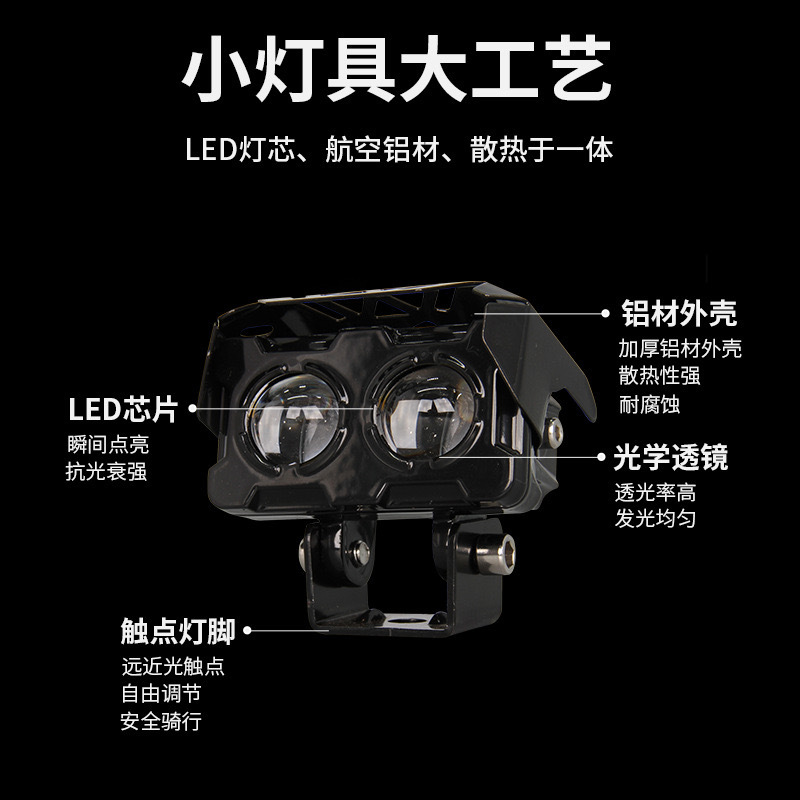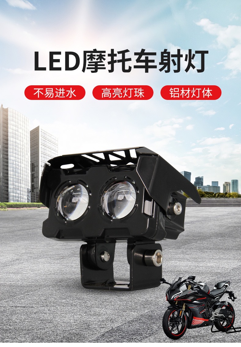 摩托车射灯小黄人大灯高亮远近改装外置led大灯前照灯防水爆闪