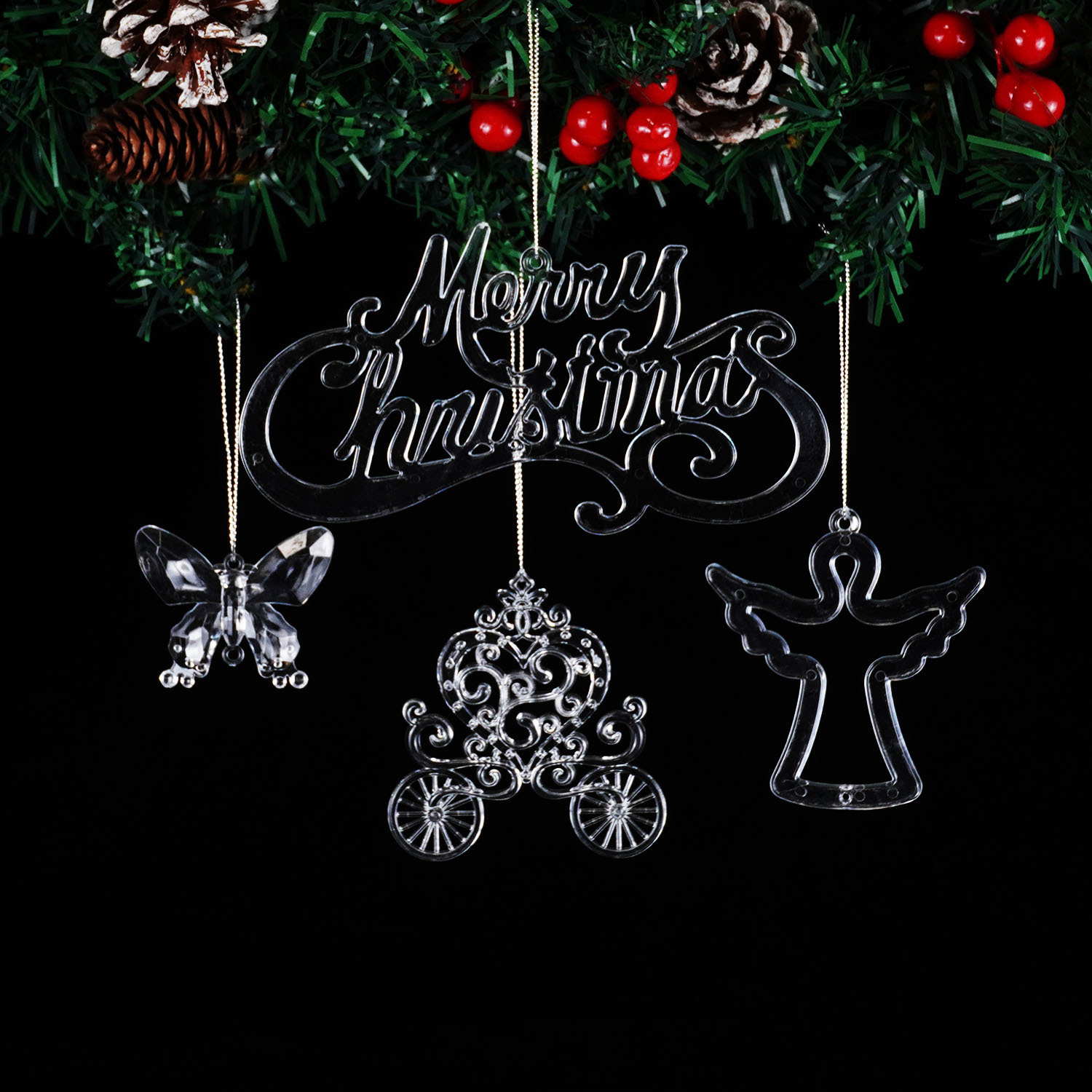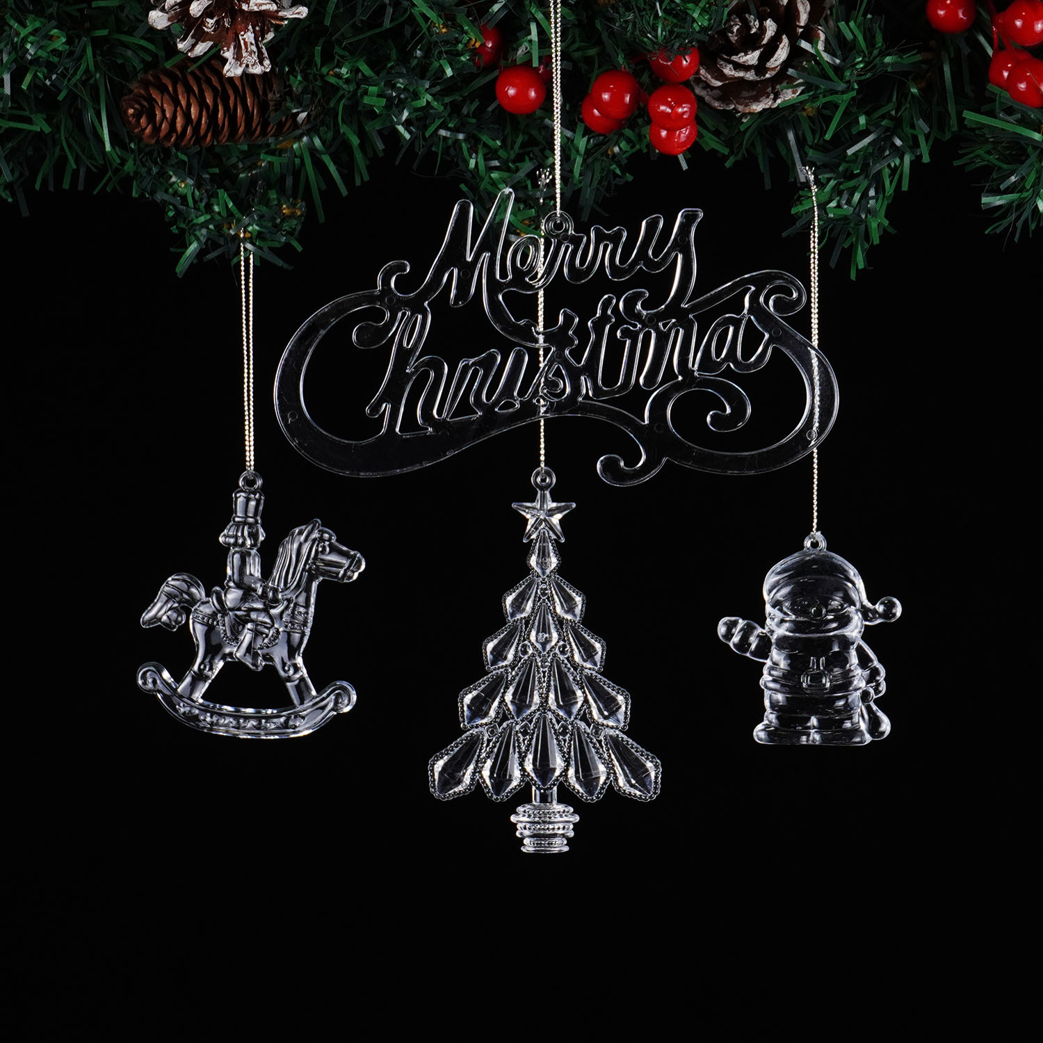 跨境圣诞节装饰品高透水晶亚克力圣诞树挂件创意圣诞装饰创意配件