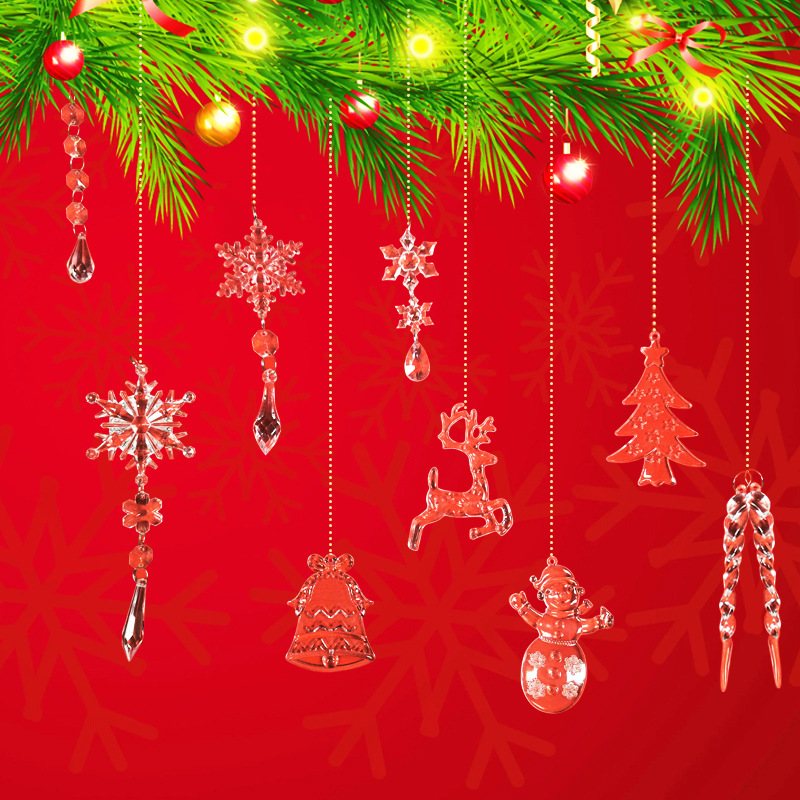 圣诞节装扮挂件水晶圣诞树麋鹿圣诞老人雪花搭配套装雪人装饰材料