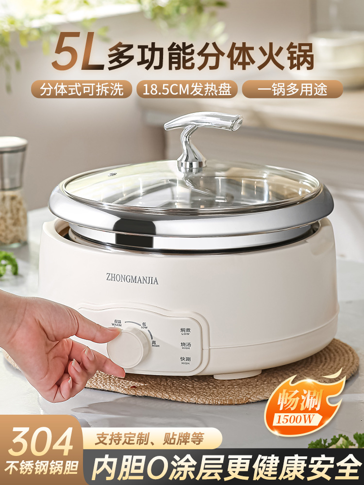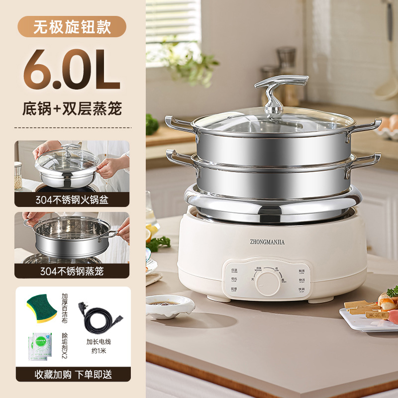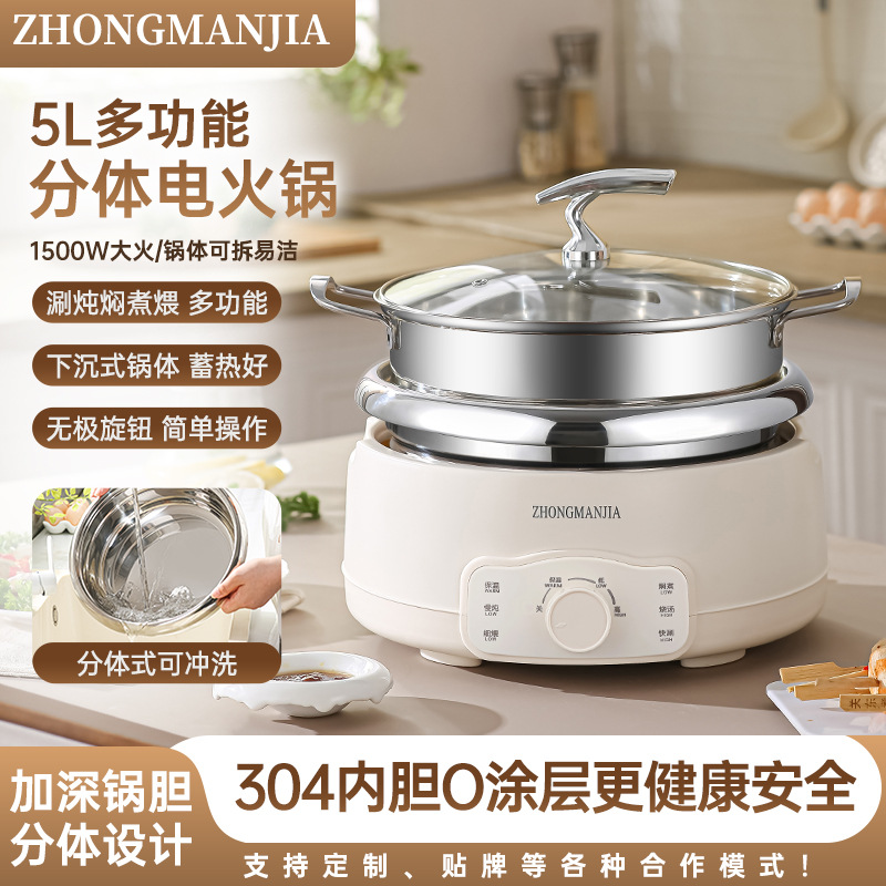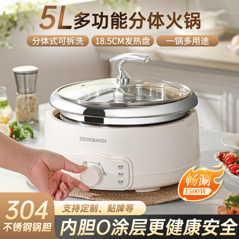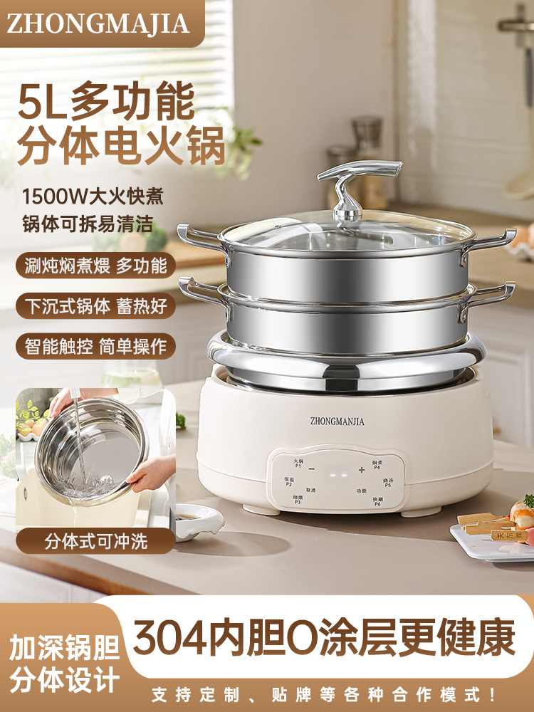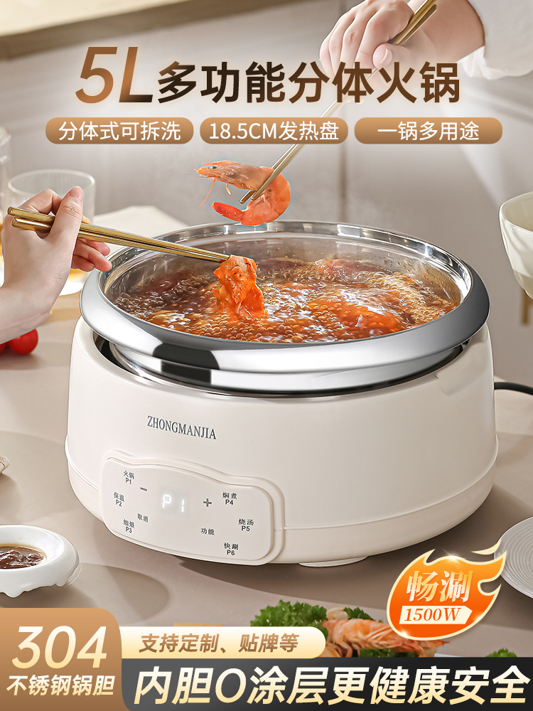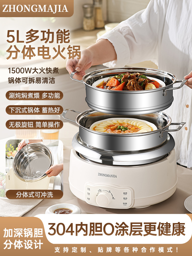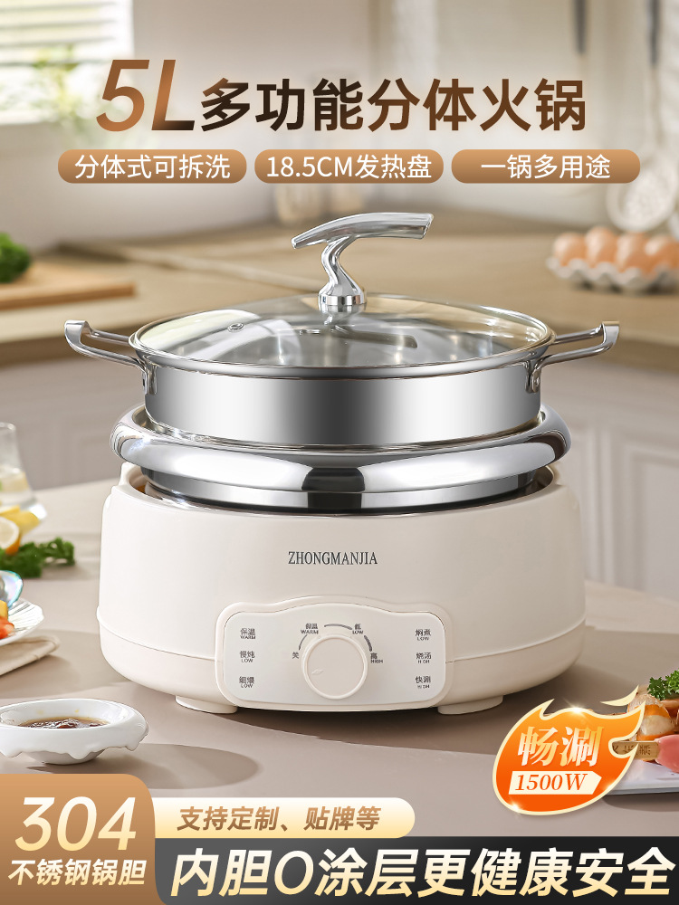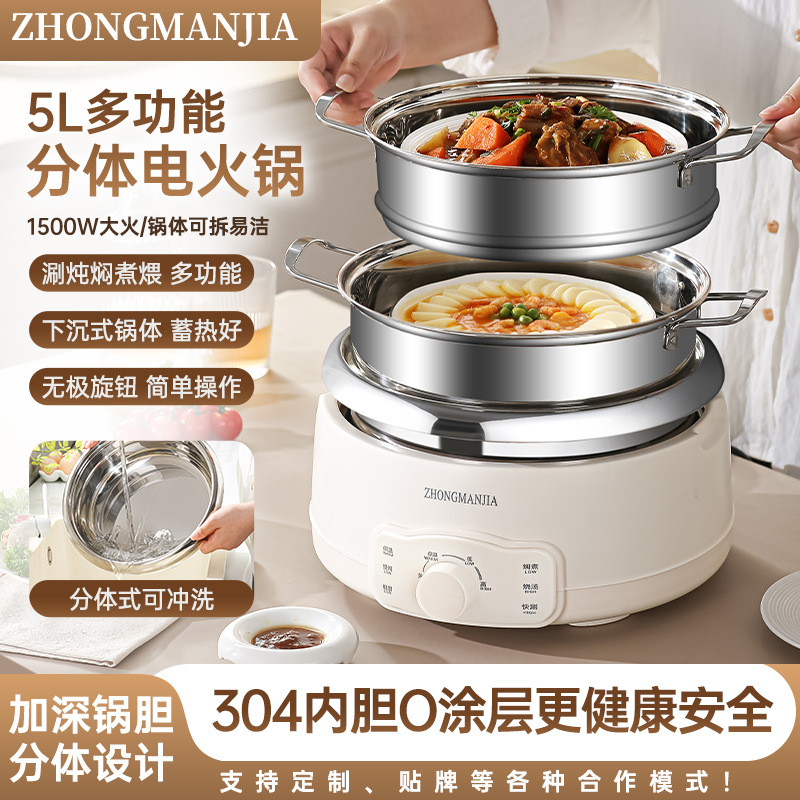 多功能分体式电火锅304不锈钢家用火锅大容量带蒸笼无涂层火锅