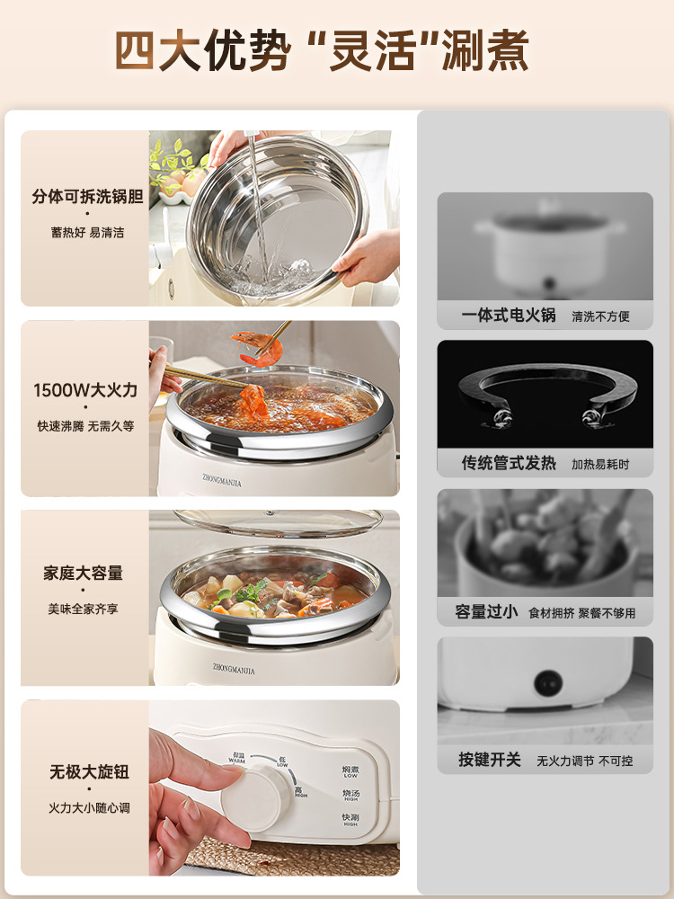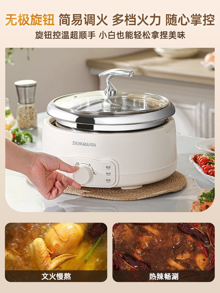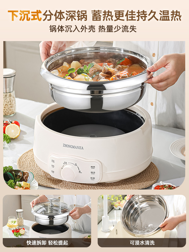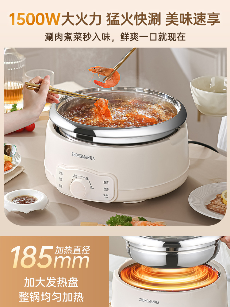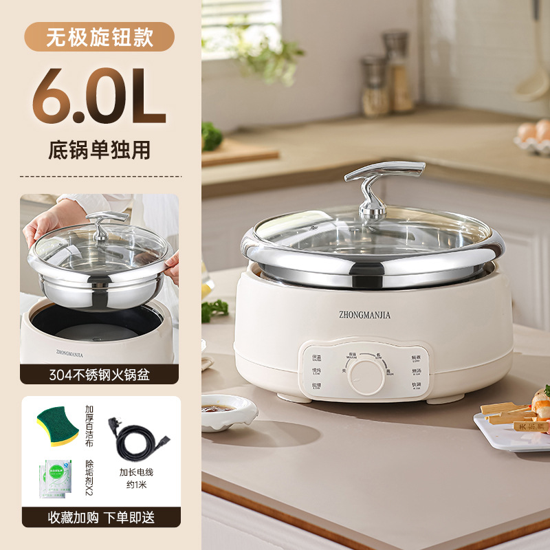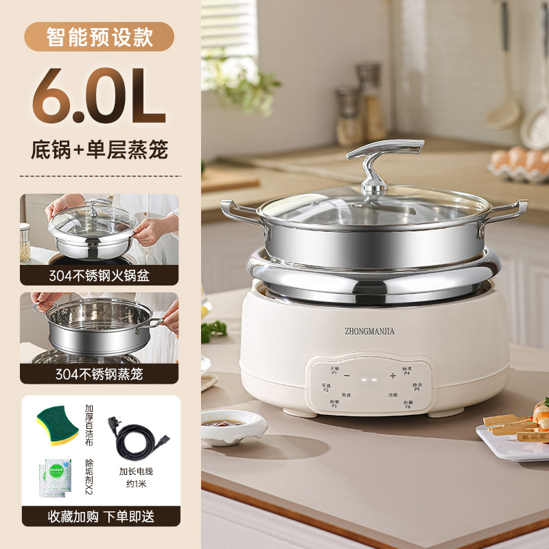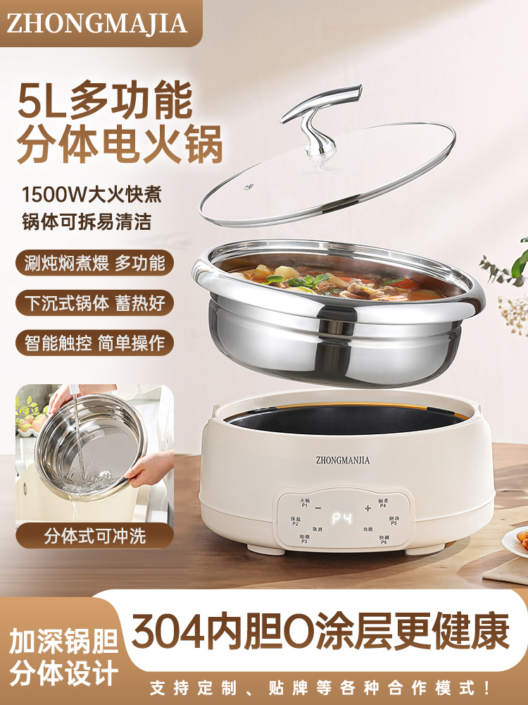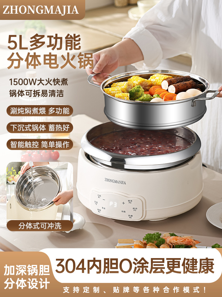 多功能分体式电火锅304不锈钢家用火锅大容量带蒸笼无涂层火锅