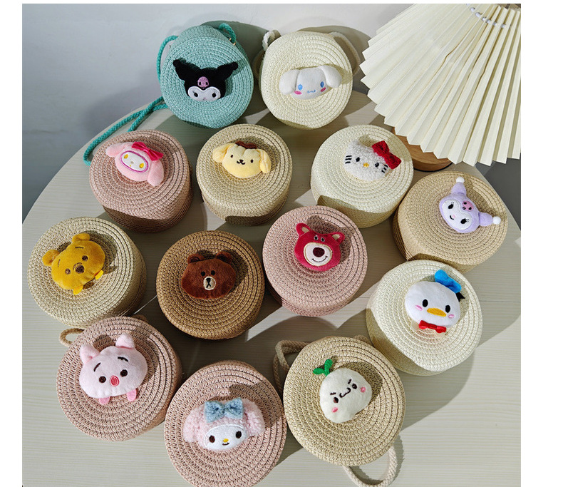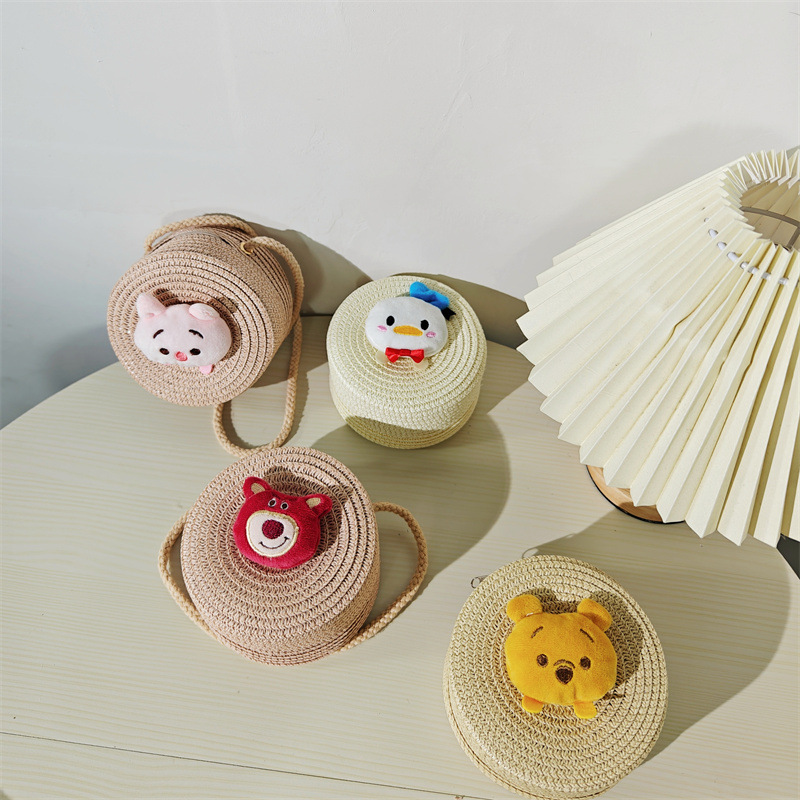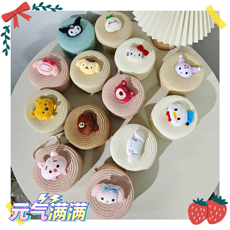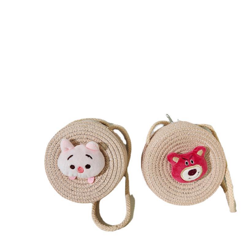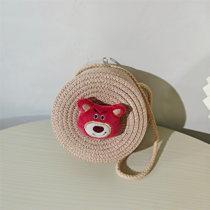 儿童包包批发卡通大混合小号圆形草编包包草莓小熊女童男童小包包